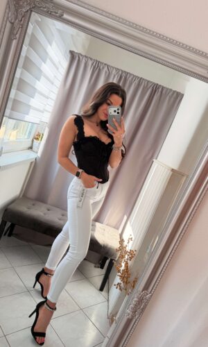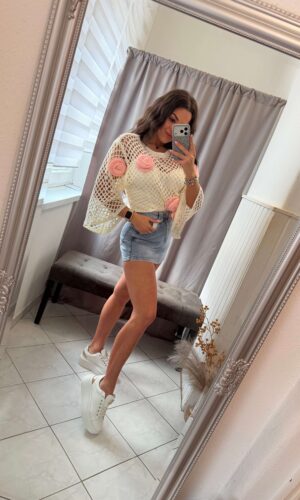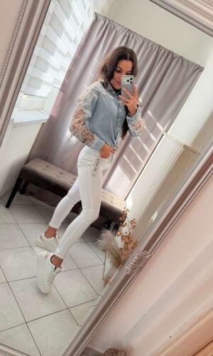 Dessa csipkés gyöngyökkel diszitett farmer ing