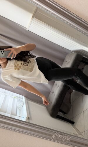 Zera rövid ujjú fehér mintás felső
