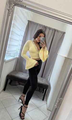 Zilen trapéz ujjú csipkés sárga felső