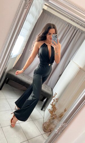Fella fekete ezüst kövezett overál