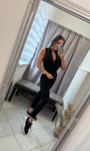 Bessi ujjatlan cipzáras alakformáló fekete overál