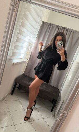 Nera szatén szoknya nadrágos fekete overál