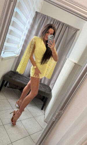 Roxi csipke nyitott ujjú sárga overál