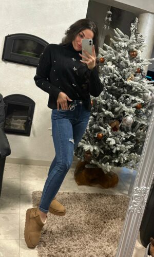 Aria köves kötött fekete pulóver