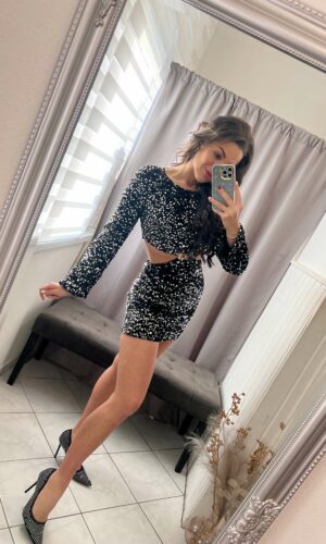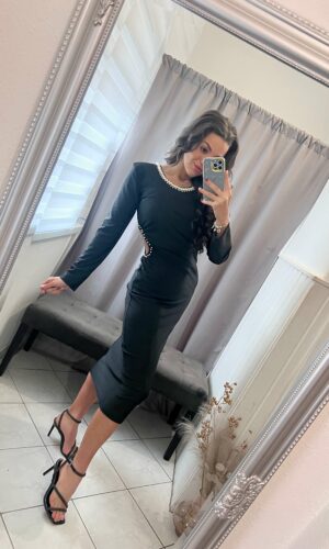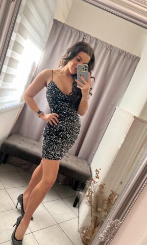 Ezel ezüst flitteres fekete vékony pántos ruha