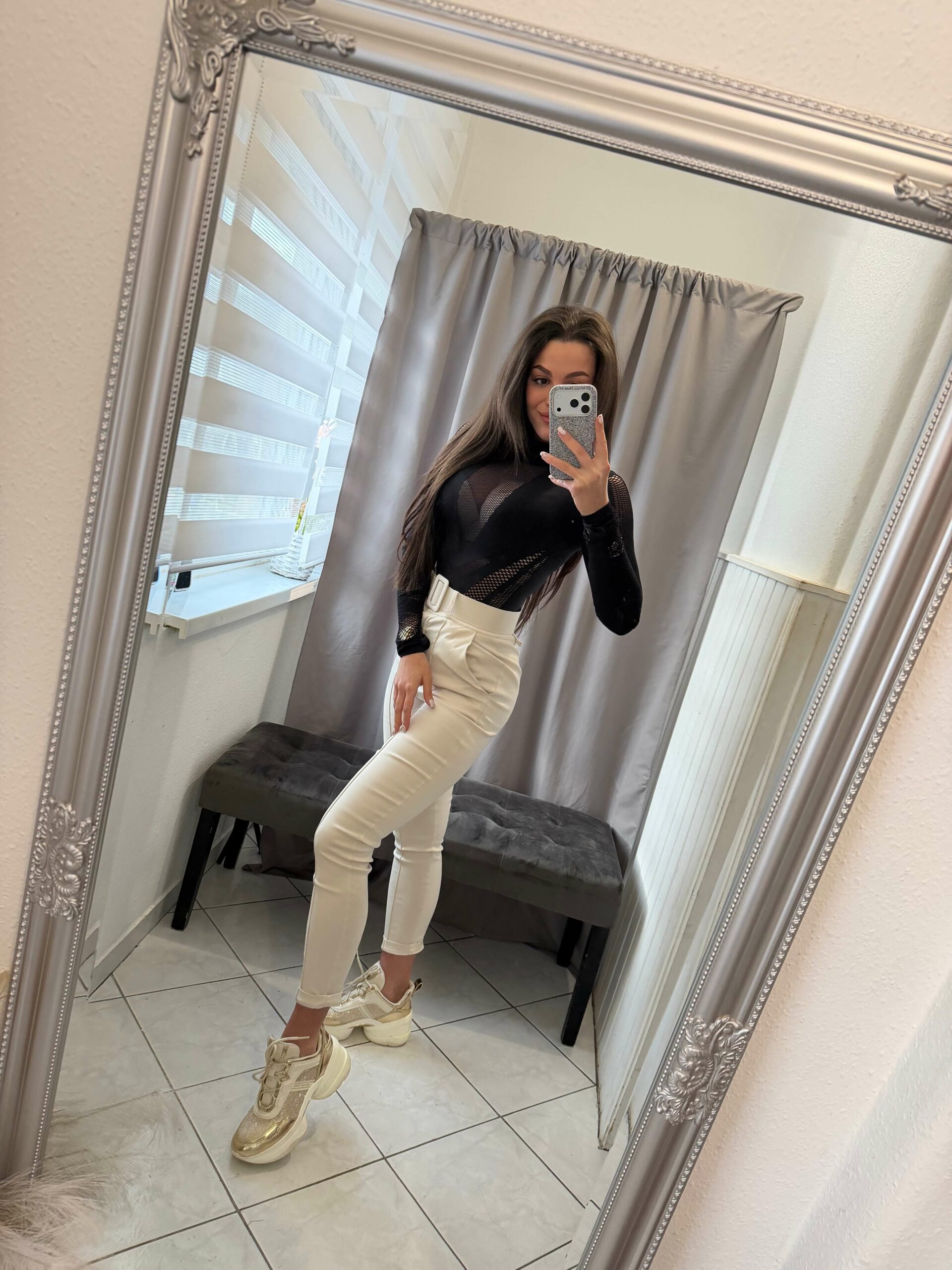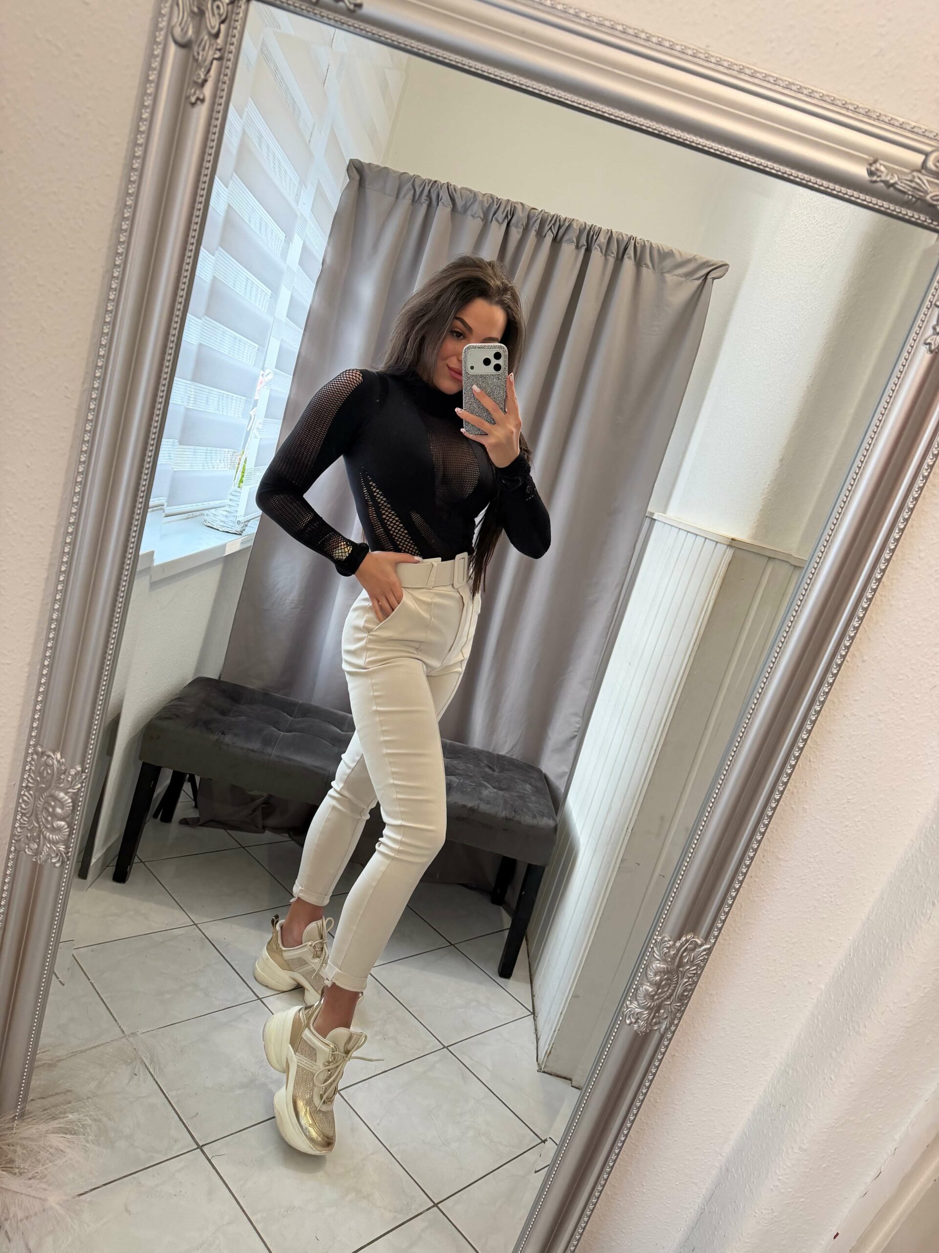 Felli garbós fekete alakformáló hálós body.