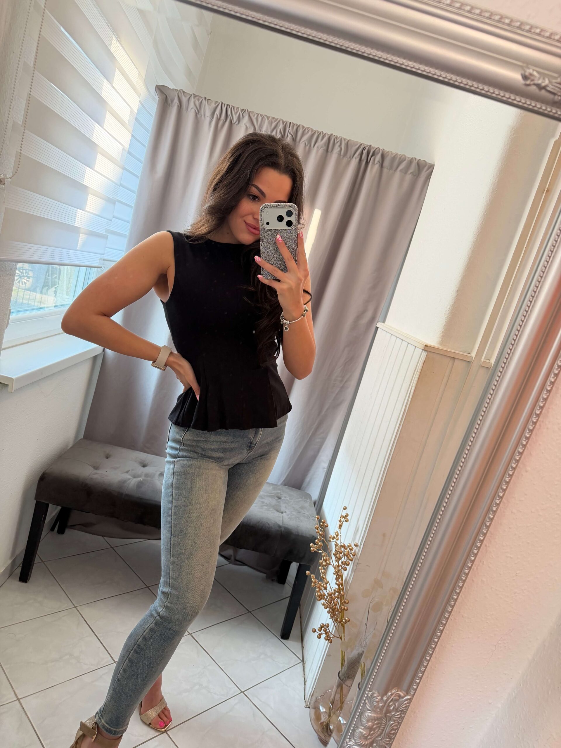 Enyhén elasztikus anyag, hátán cipzáras fazon. Felső alján enyhén fodros kialakitás.
