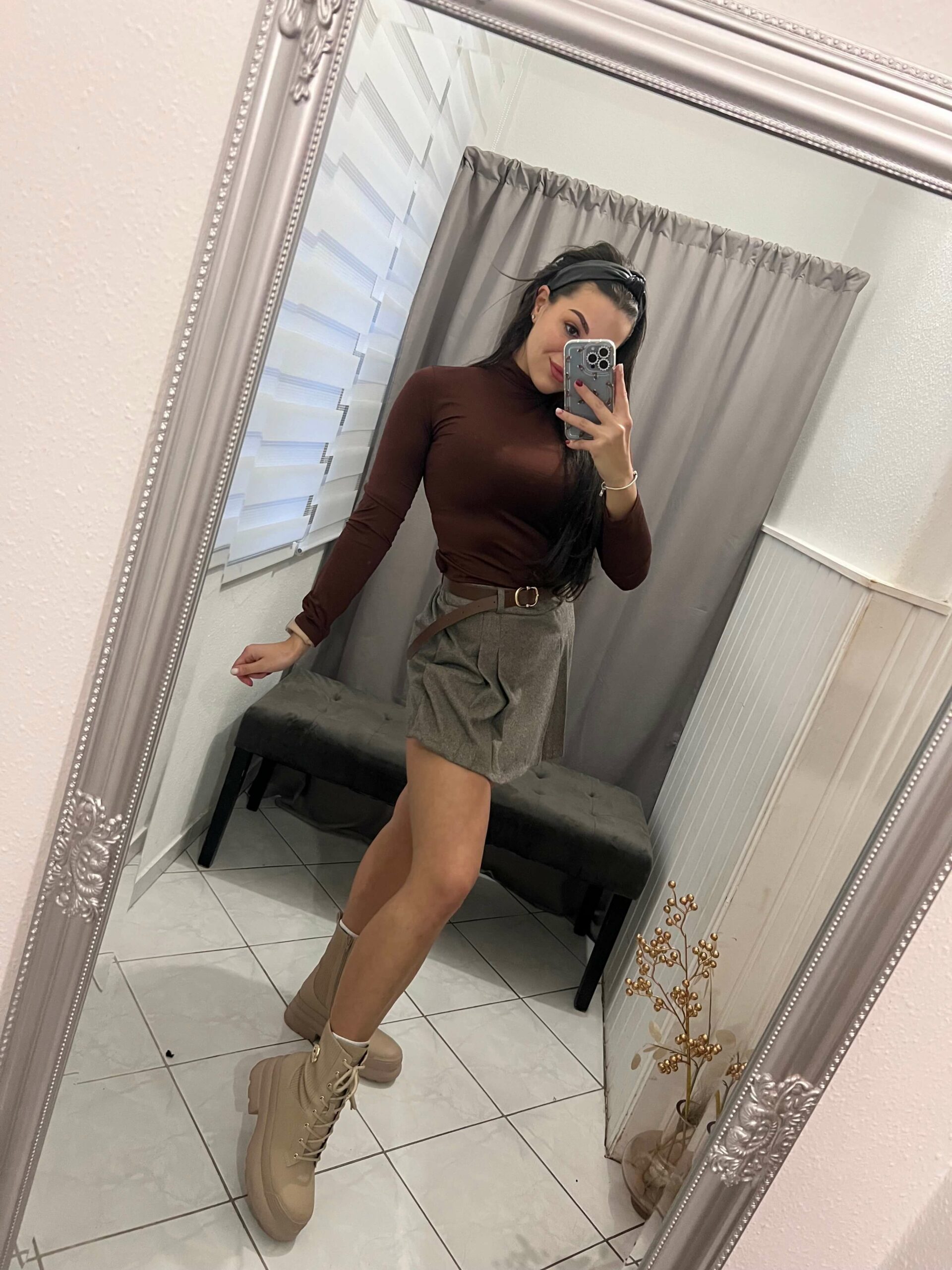 Killa félgarbós csoki barna hosszú ujjú felső.