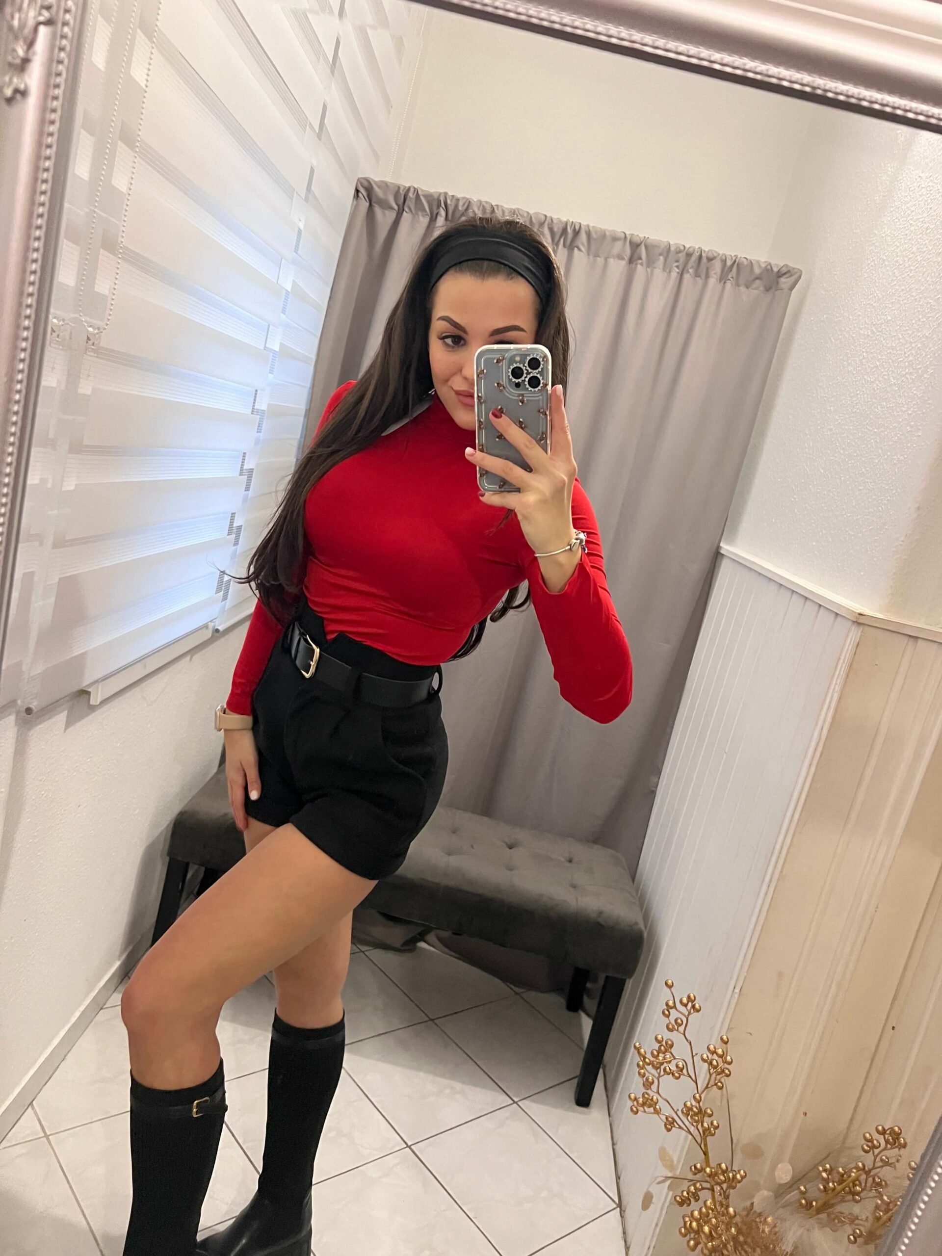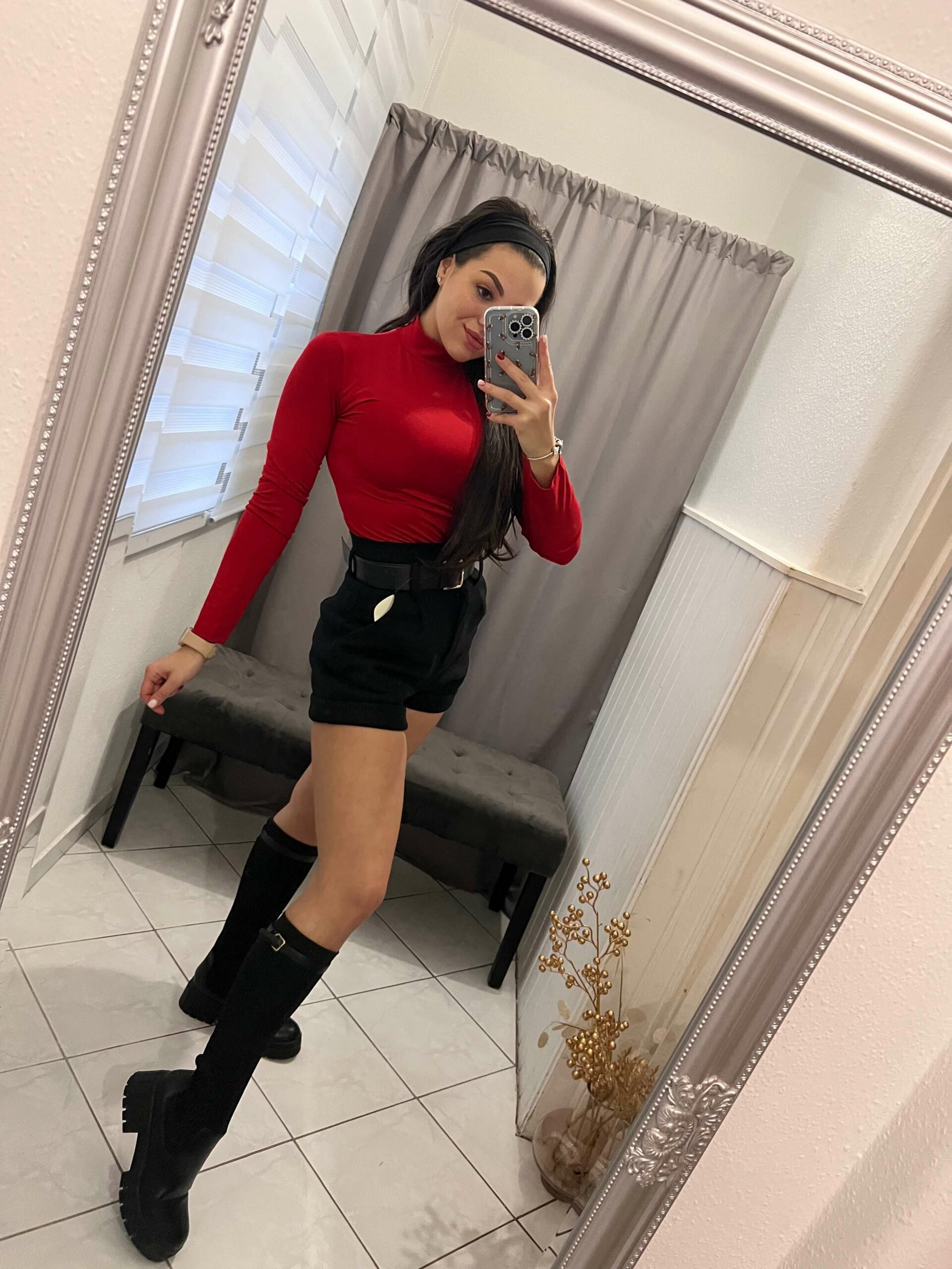 Killa félgarbós piros hosszú ujjú felső.