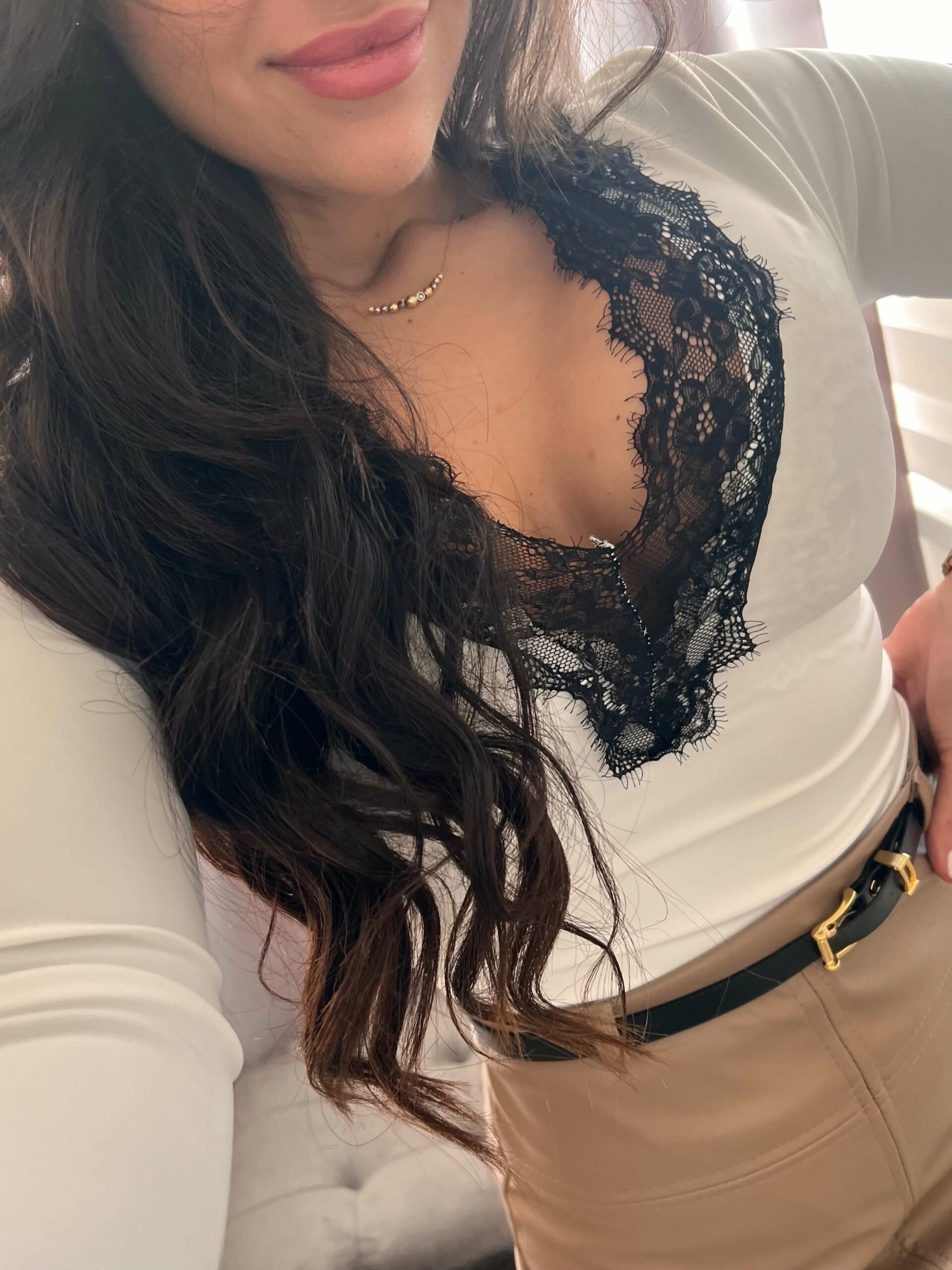 Kolen v kivágott fehér body, fekete csipke diszitéssel.