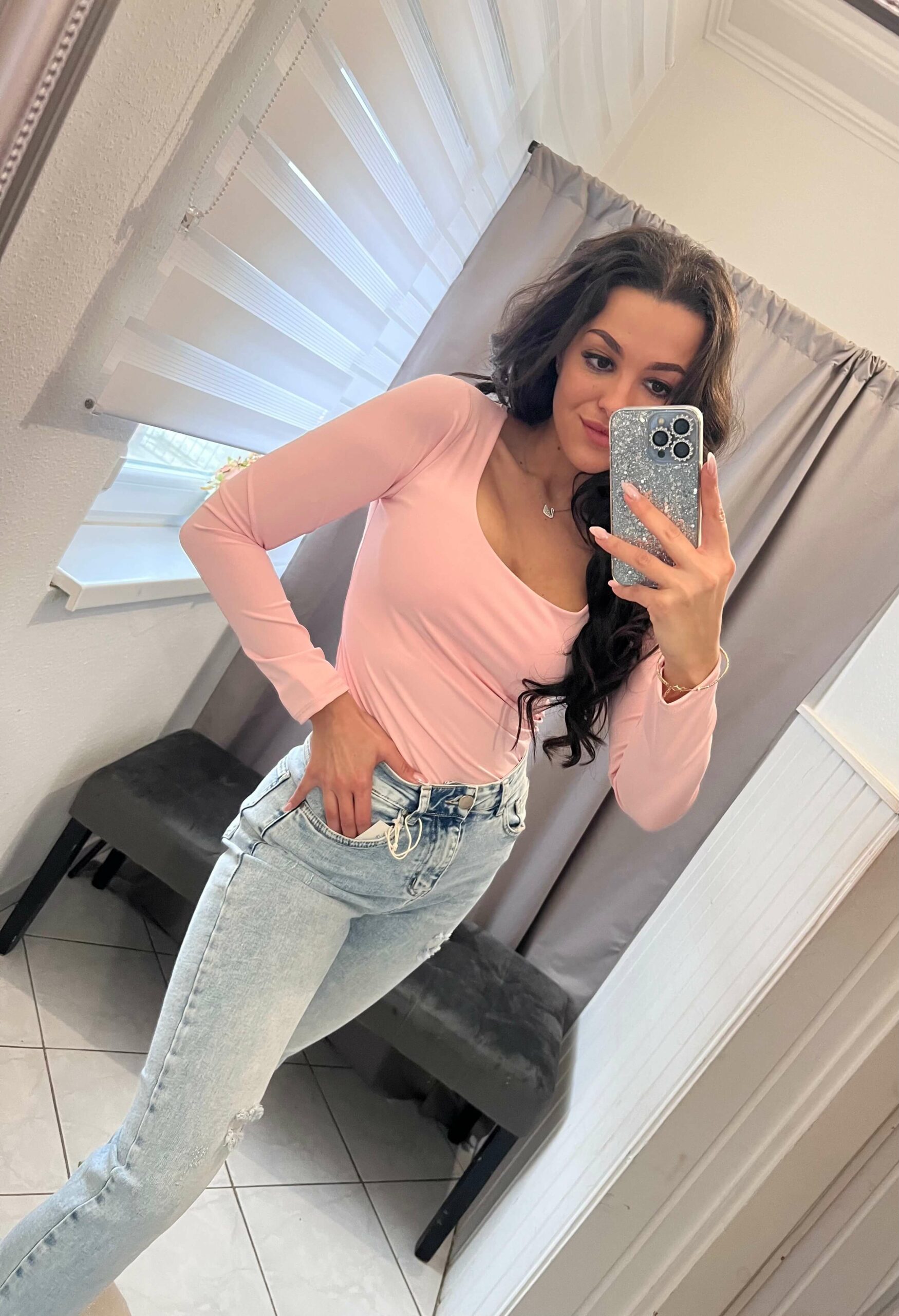 Lara kerek nyakú basic világos rózsaszin felső.