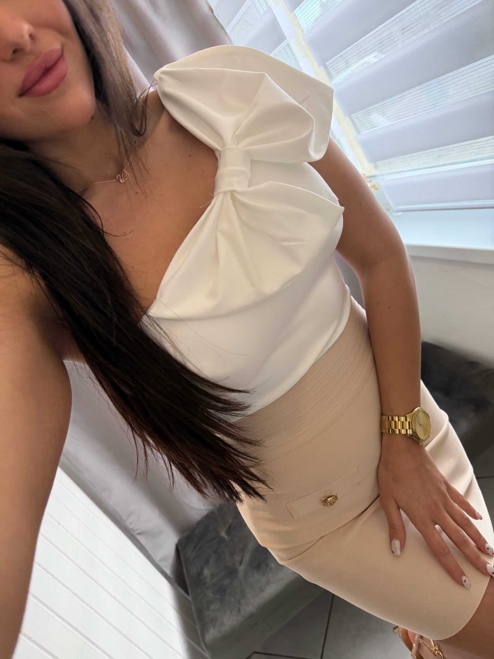 Leta fehér félvállas masnis body