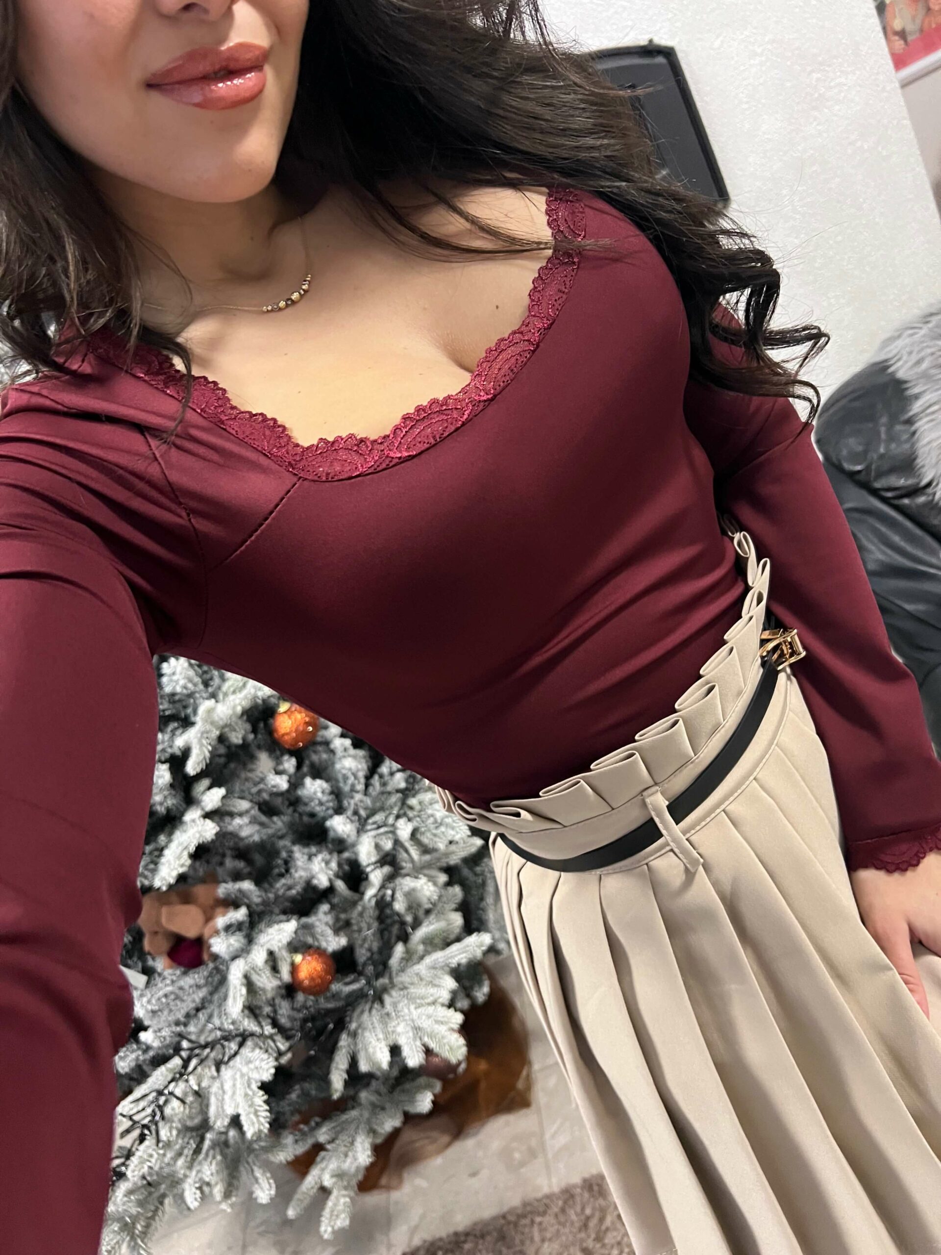 Hosszú ujjú kialakitás, dekoltázs résznél illetve ujj részén csipkével diszitett.