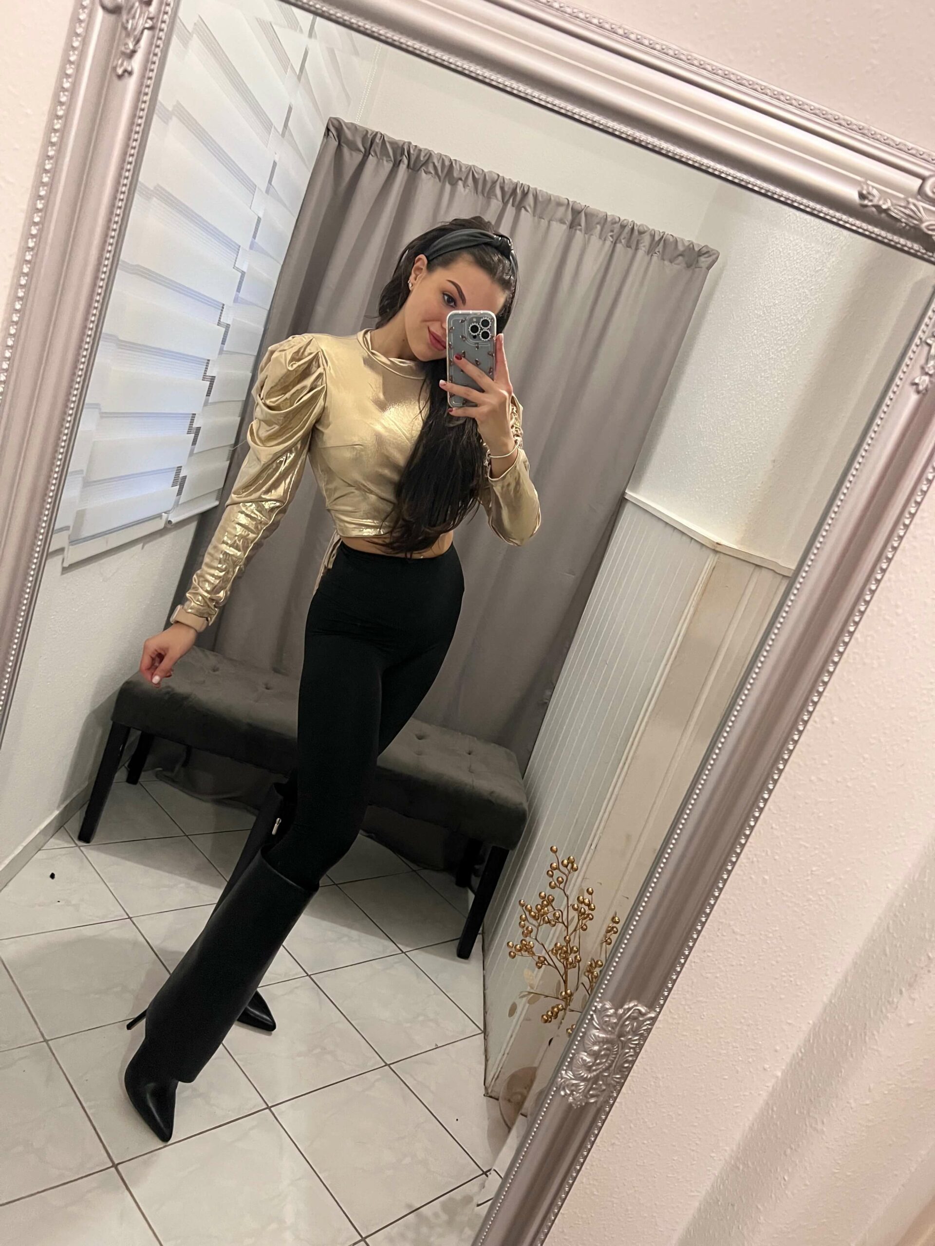 Váll részén húzott kialakitás. Rövidebb kialakitású felső.