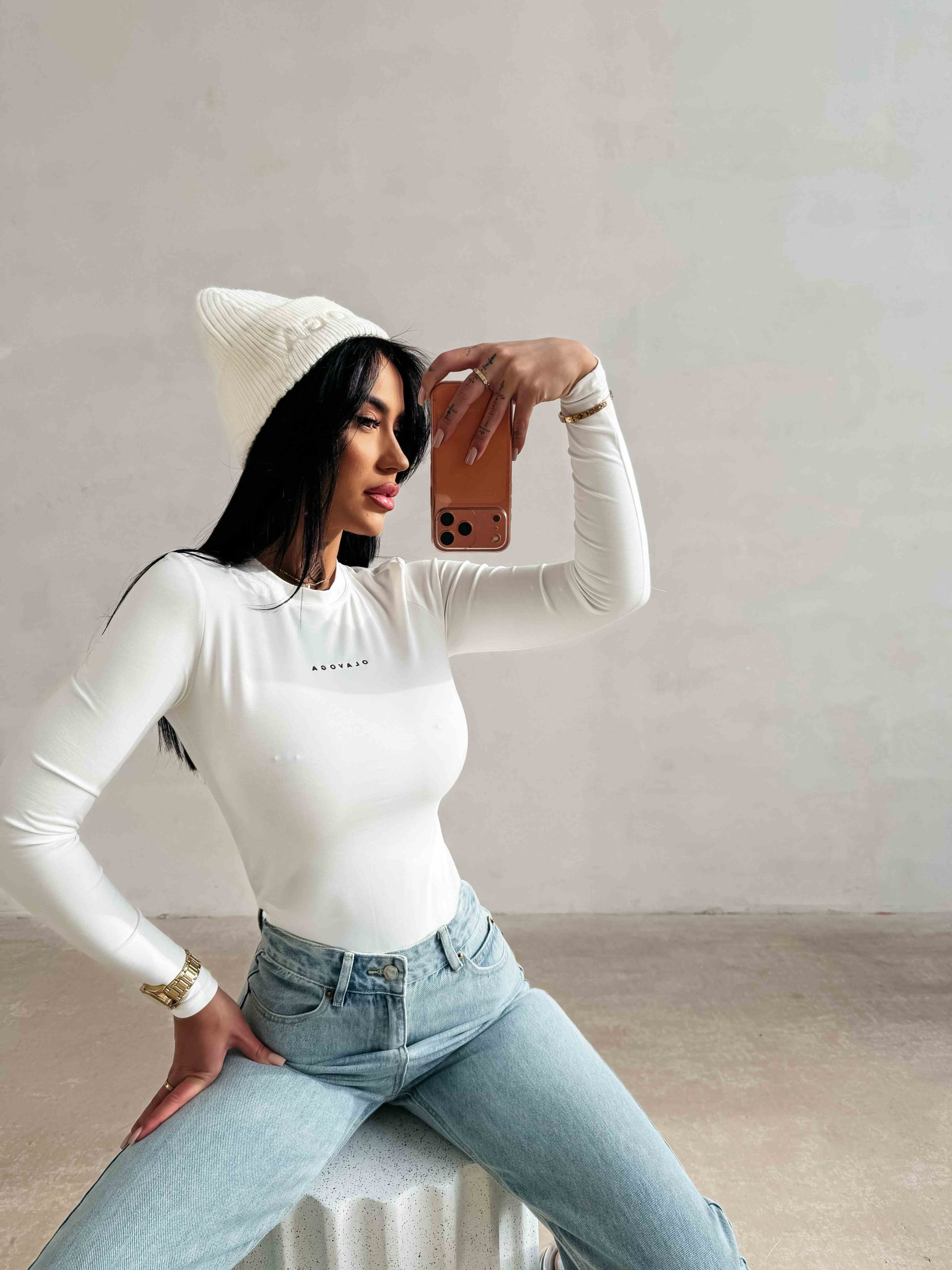 Ola Voga Feron felső fehér szinben.