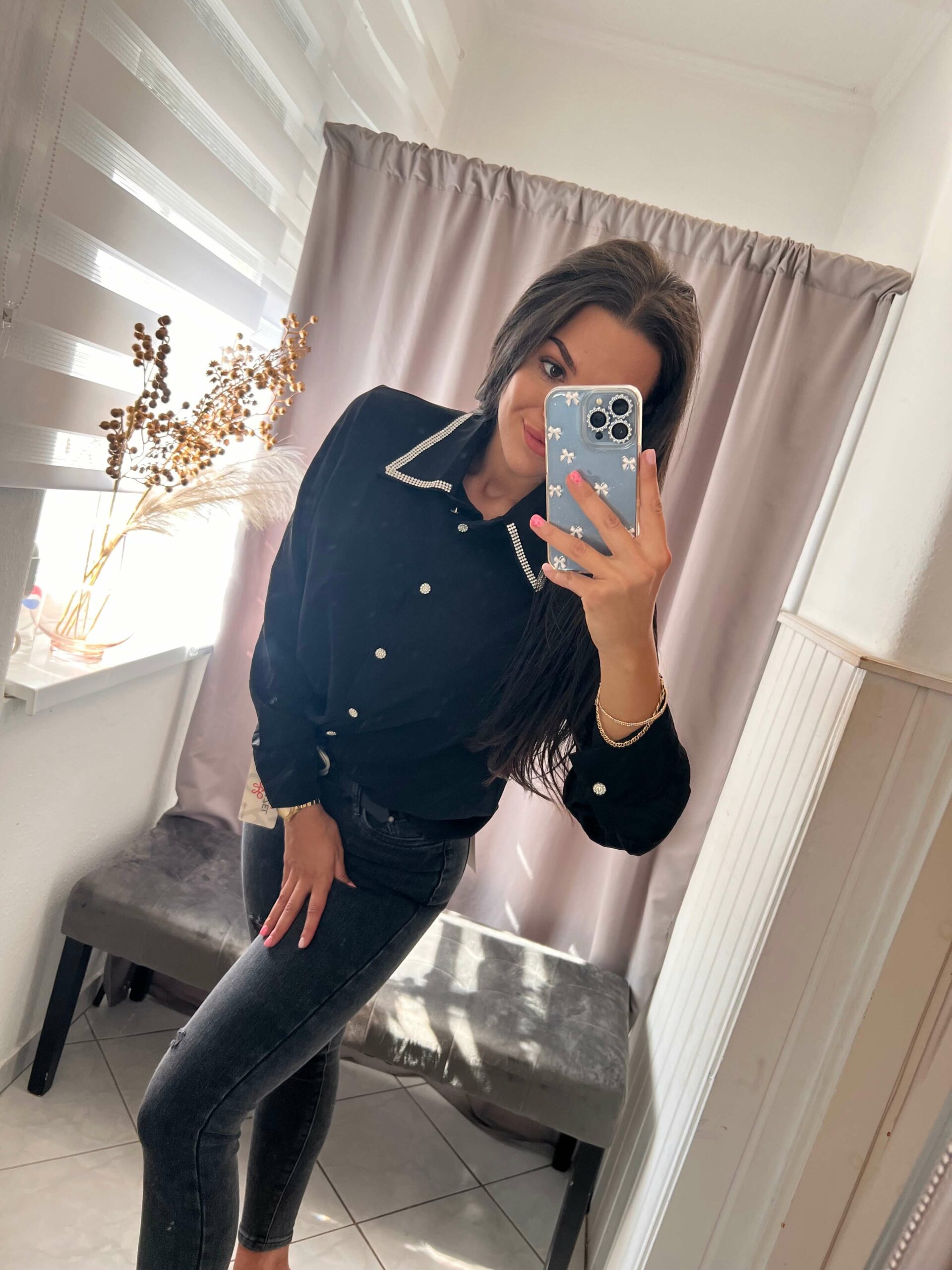 Kövekkel diszitett kialakitás, bő fazon. Végig gombos fazon.