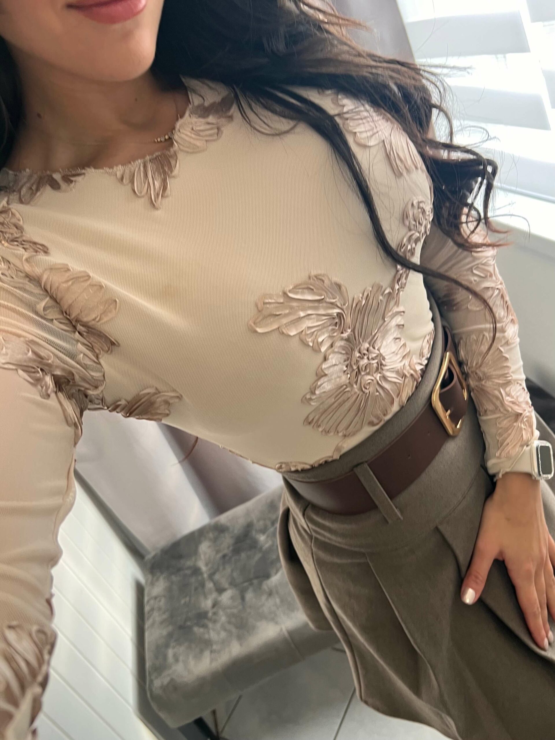 Hosszú ujjú kialakitású. Elegáns fazonú felső.