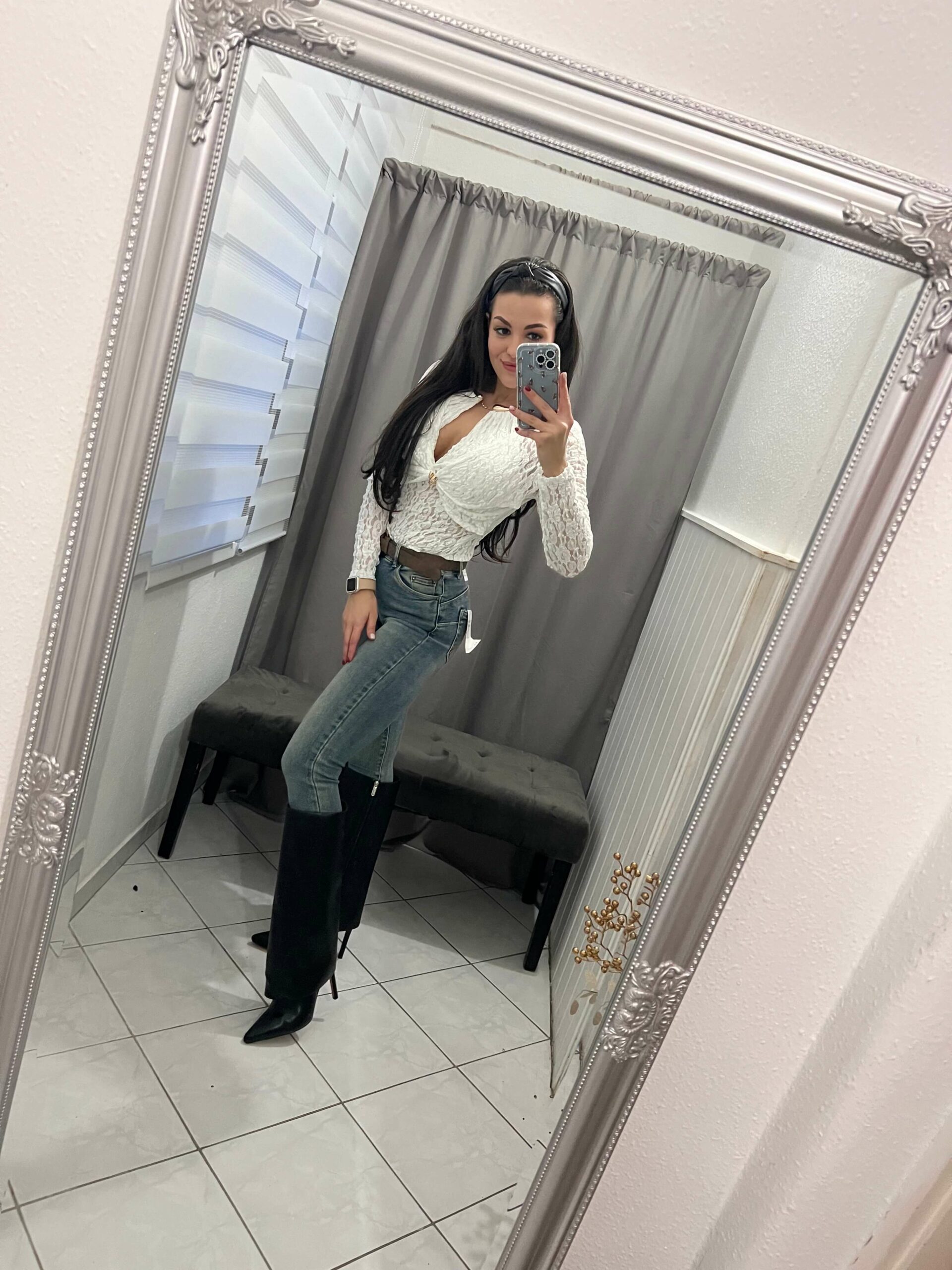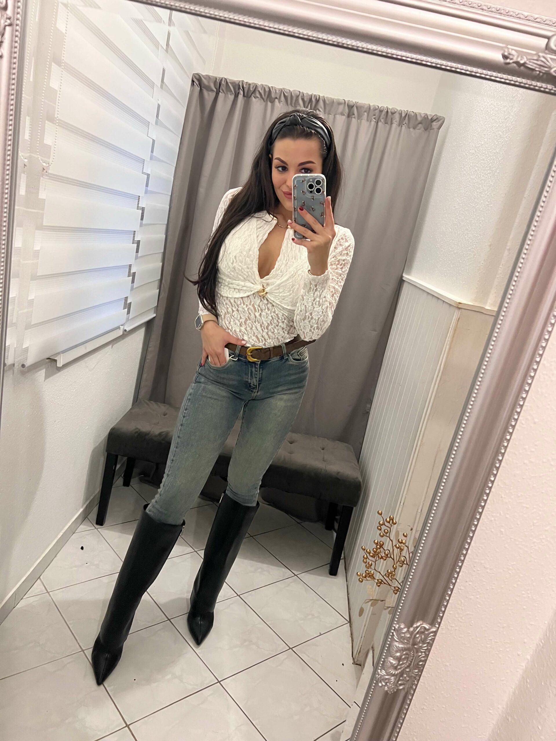 Tessa fehér nyitott csipkés arany kapoccsal diszitett body.
