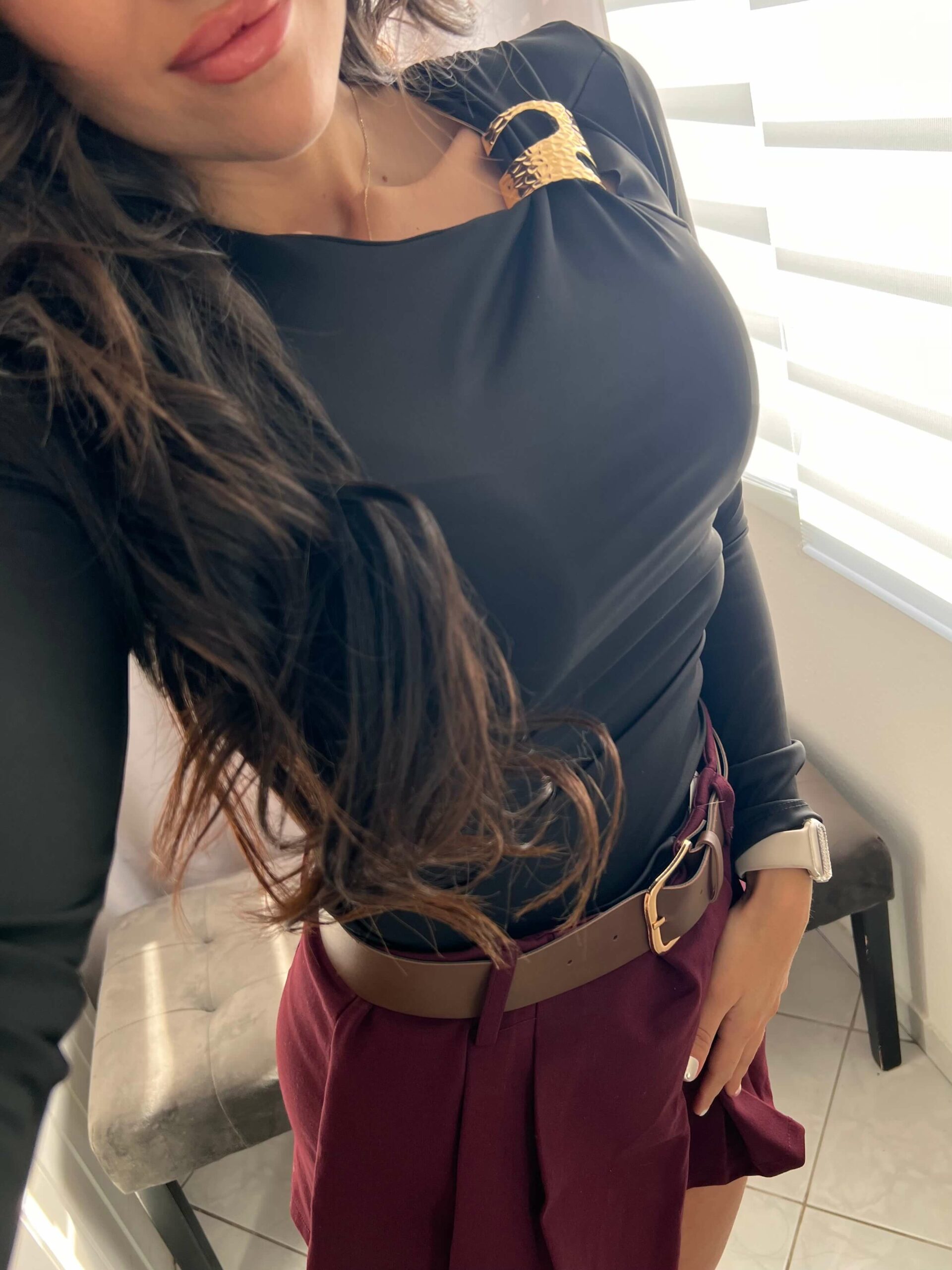 „Verona húzott arany kapcsos fekete felső” értékelése elsőként