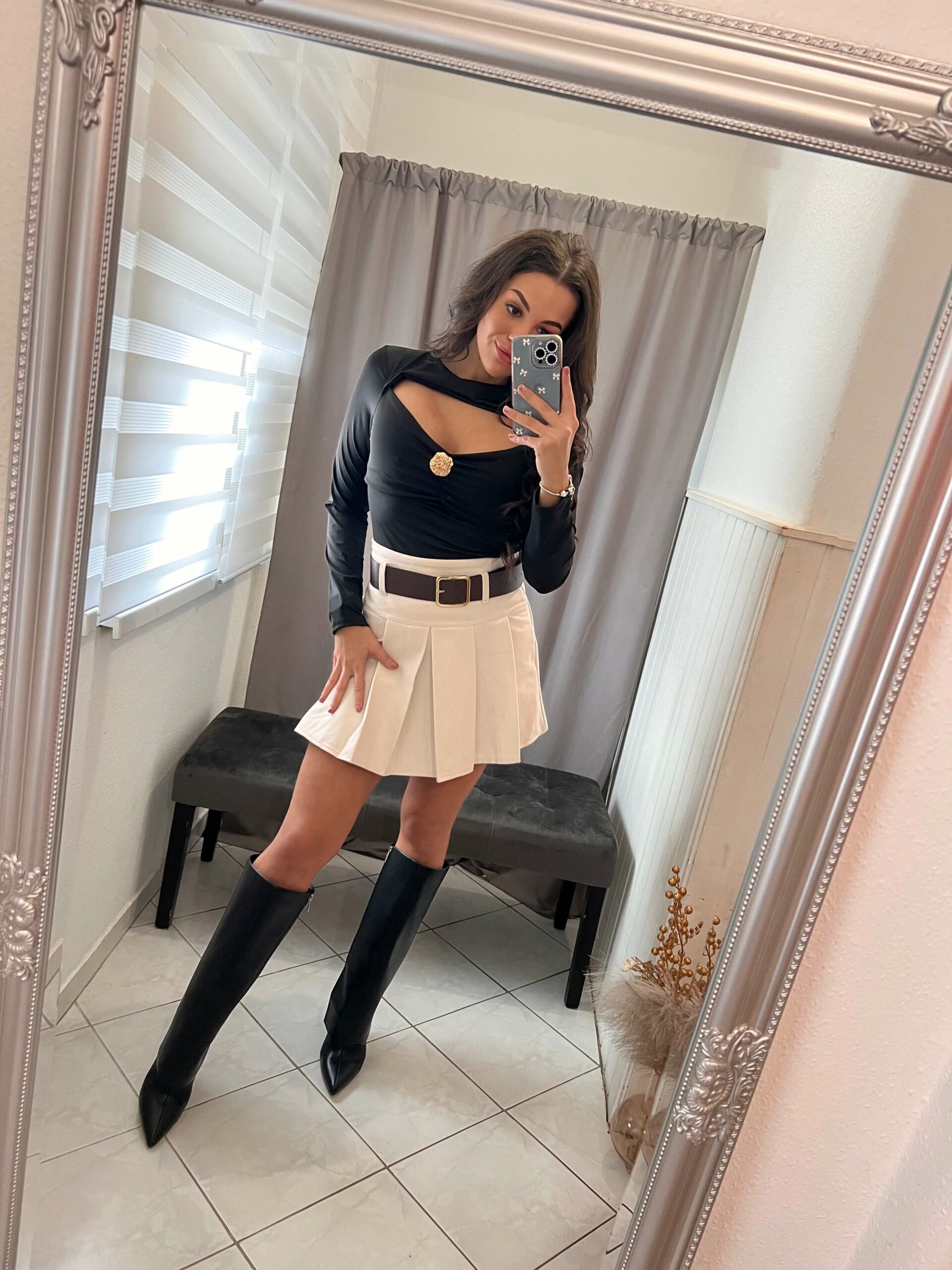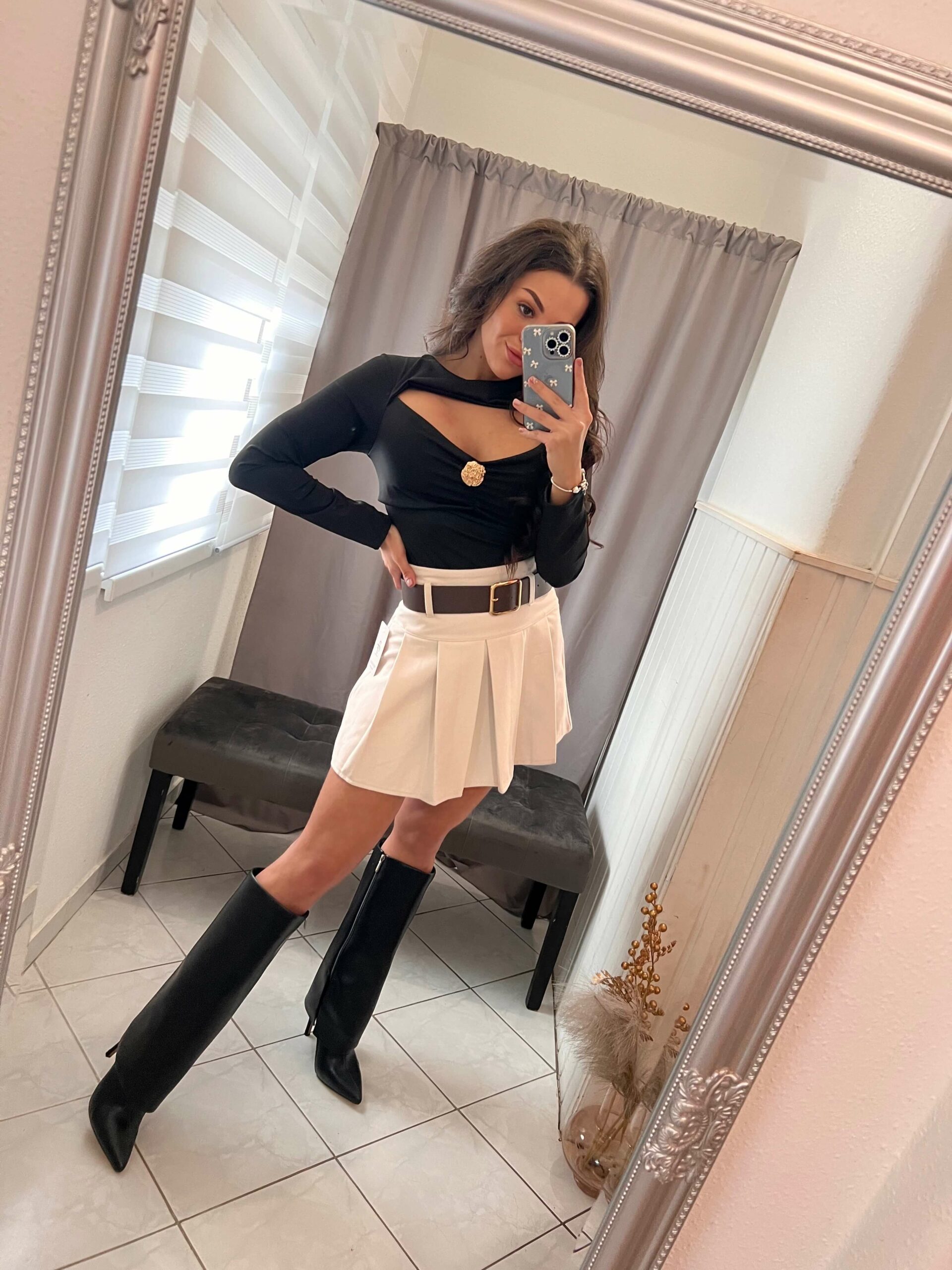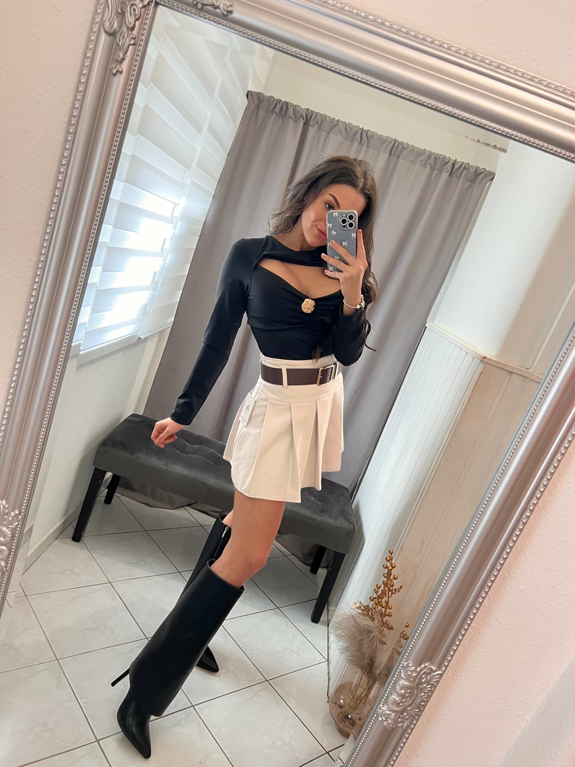 Vima fekete arany csattos nyitott felső.