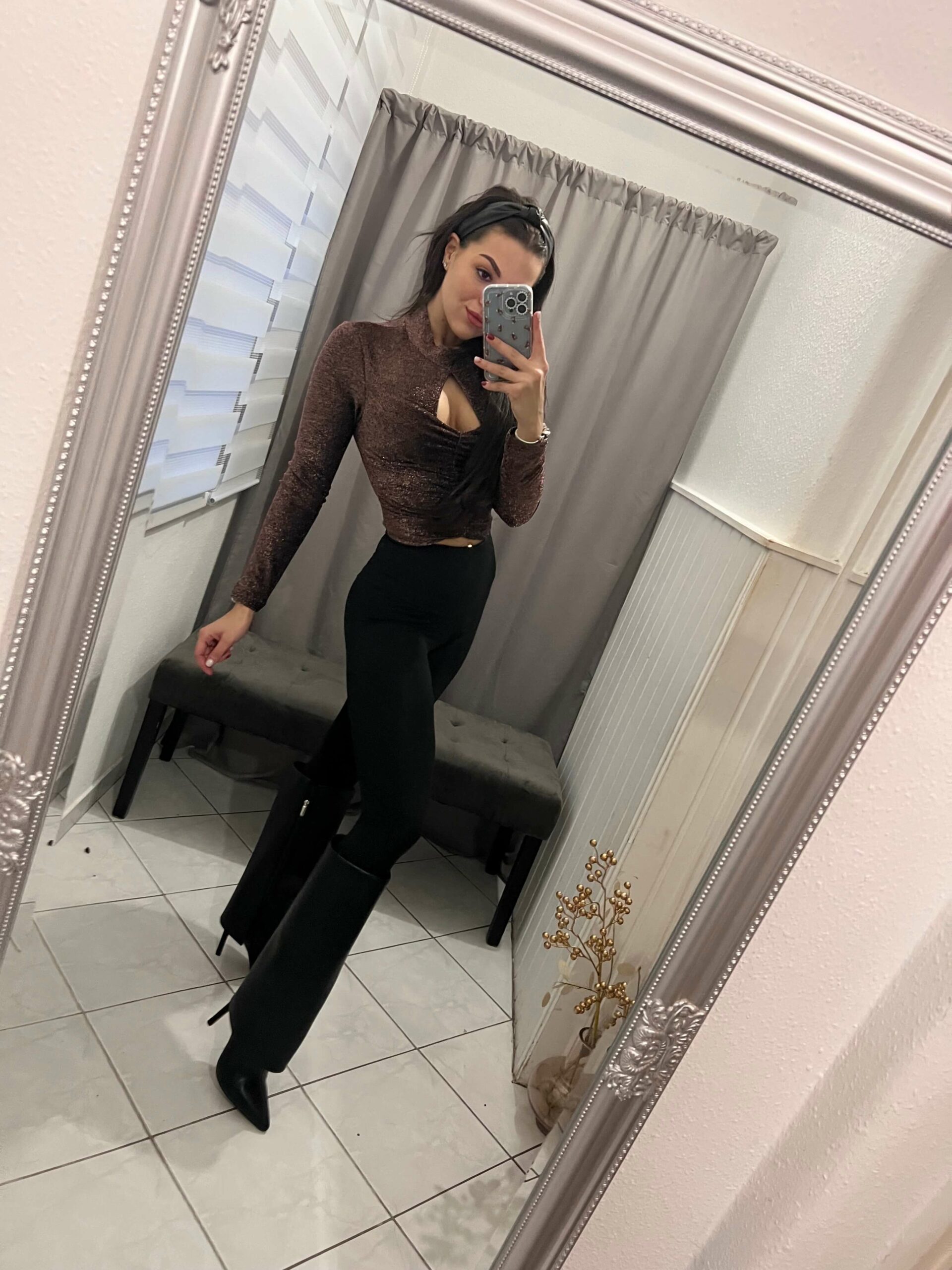 Dekoltázs résznél nyitott fazon. Rövidebb kialakitású felső.