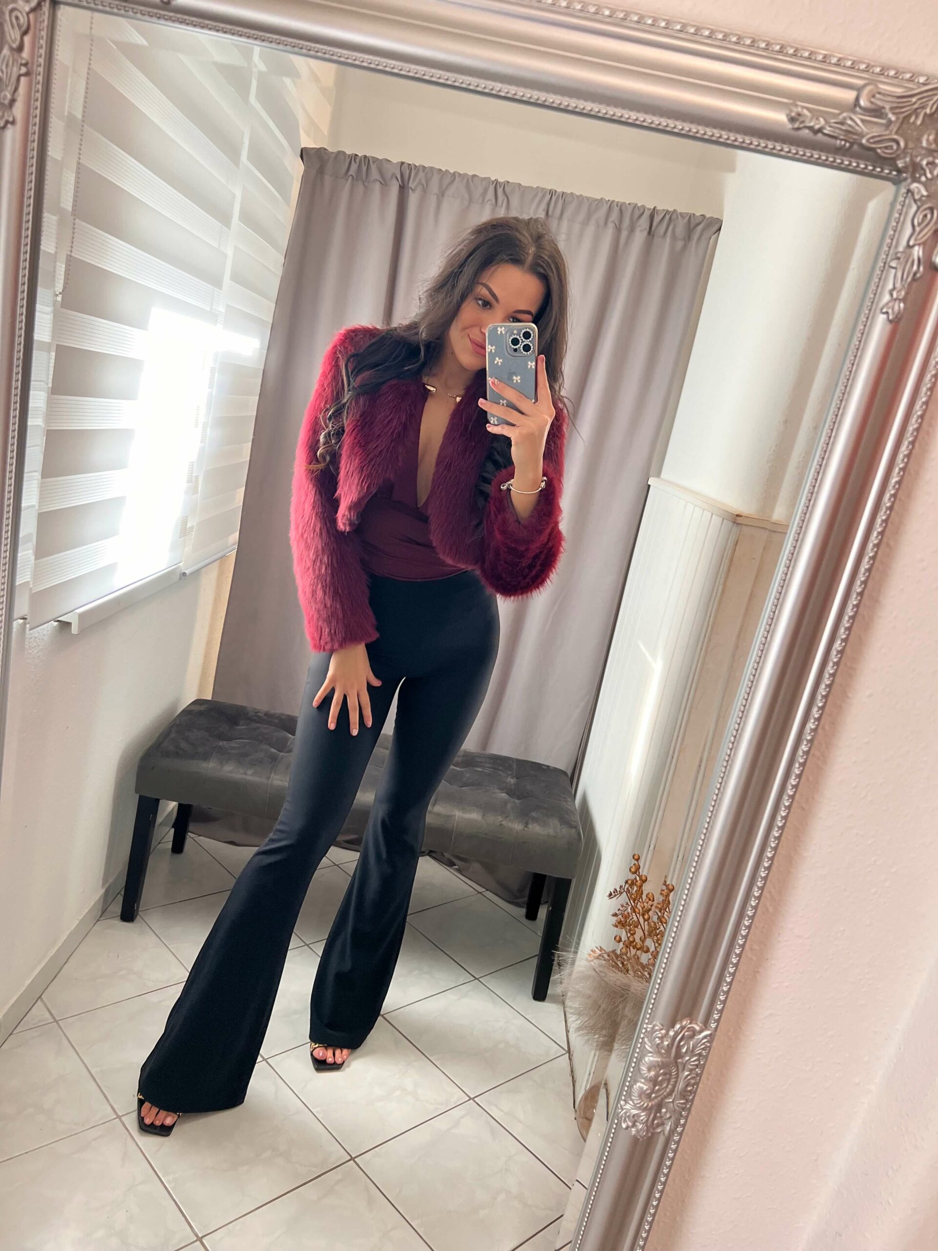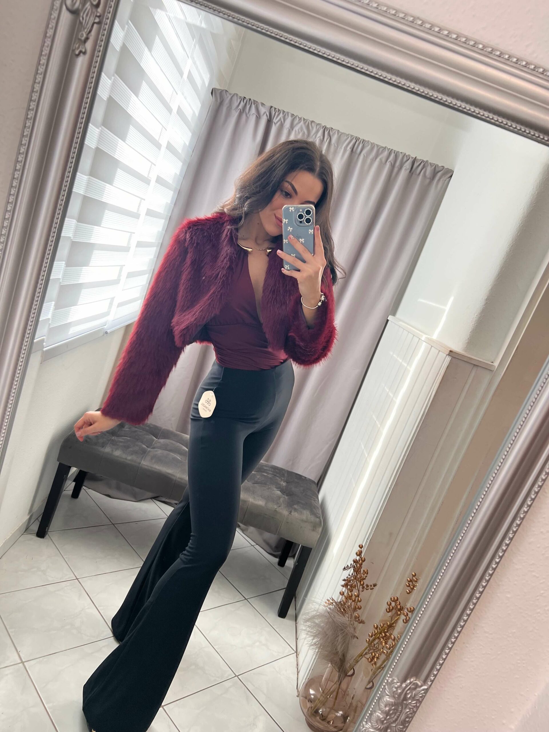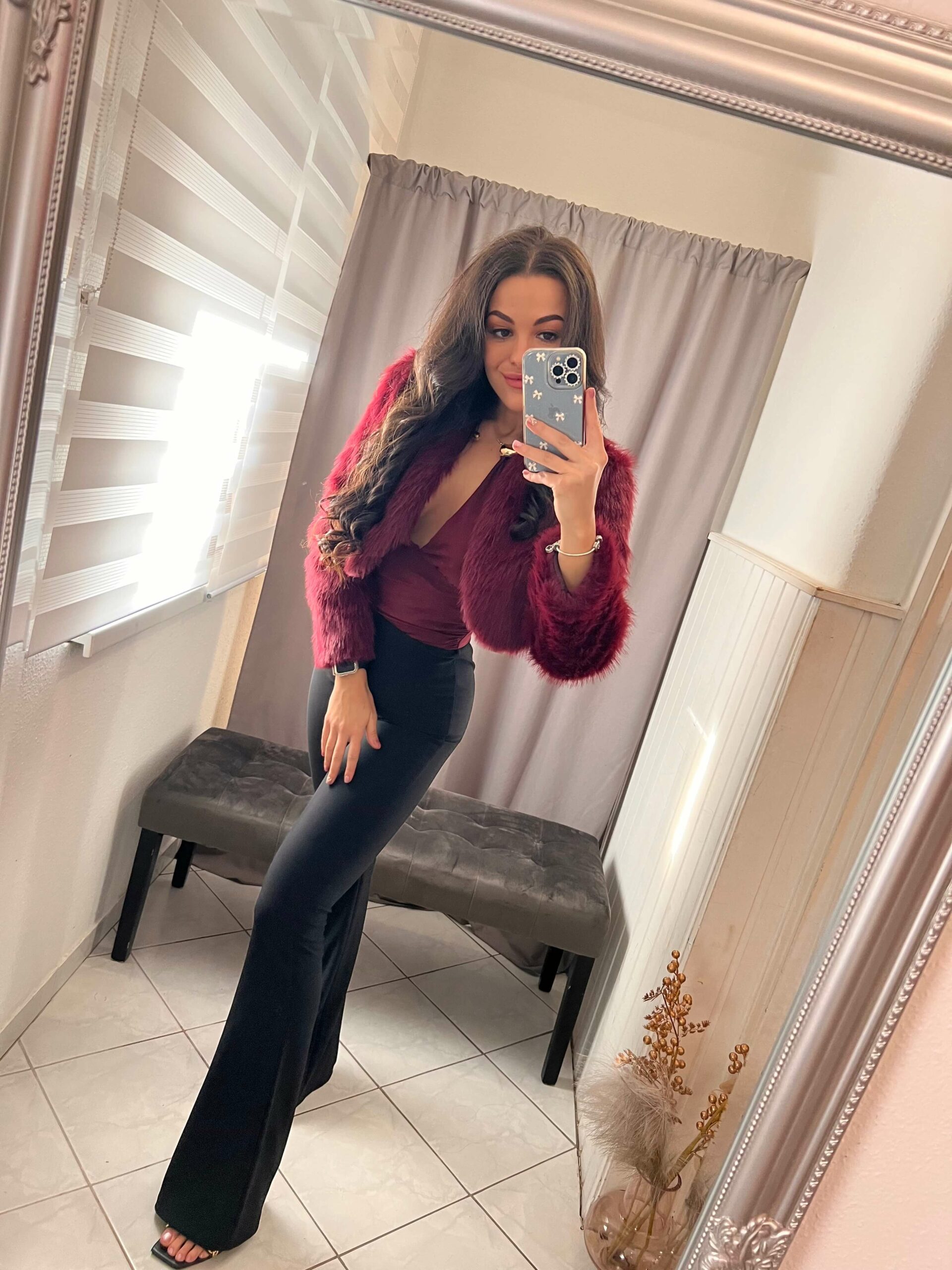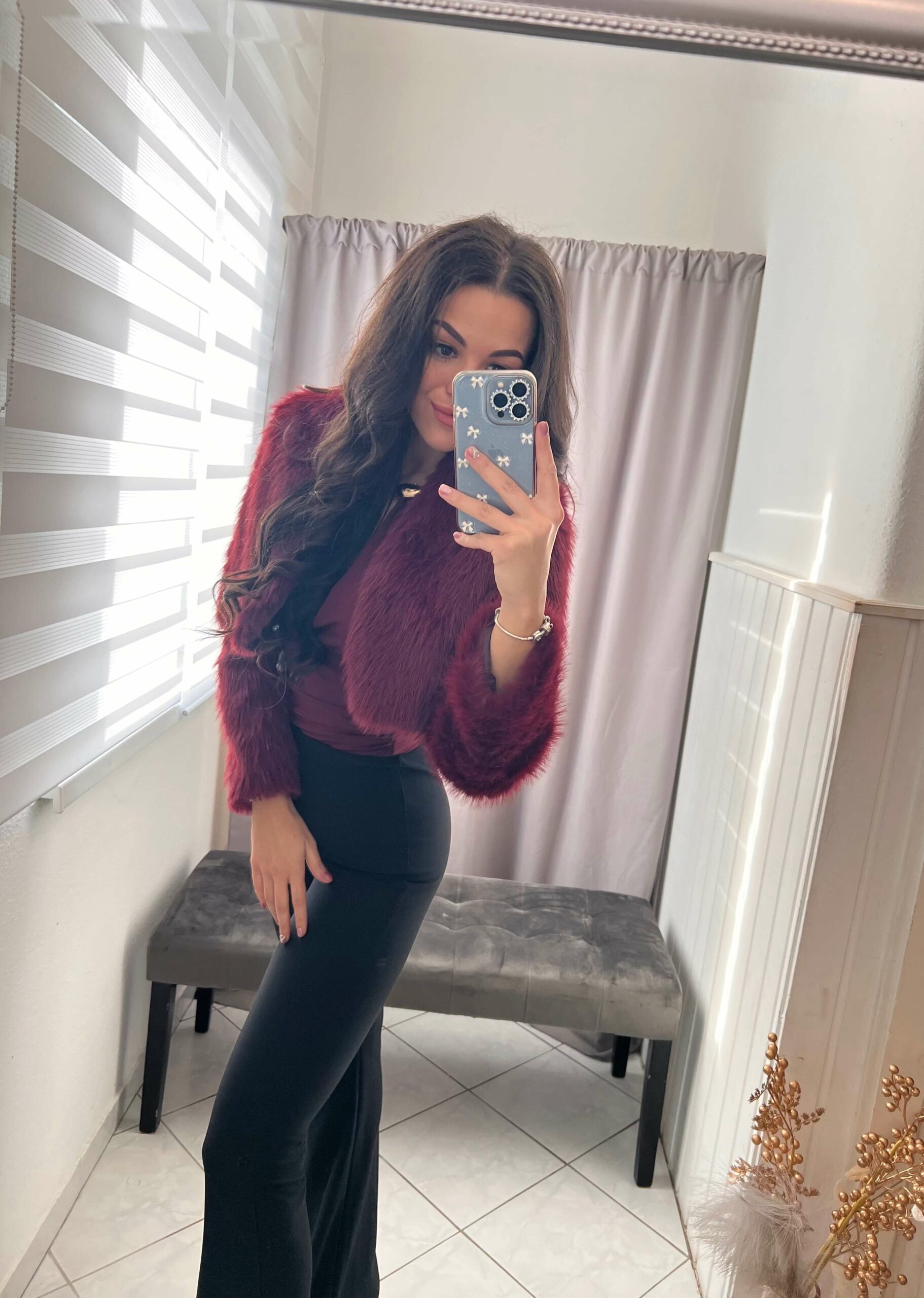 Bekka burgundi szőrmés bolero.