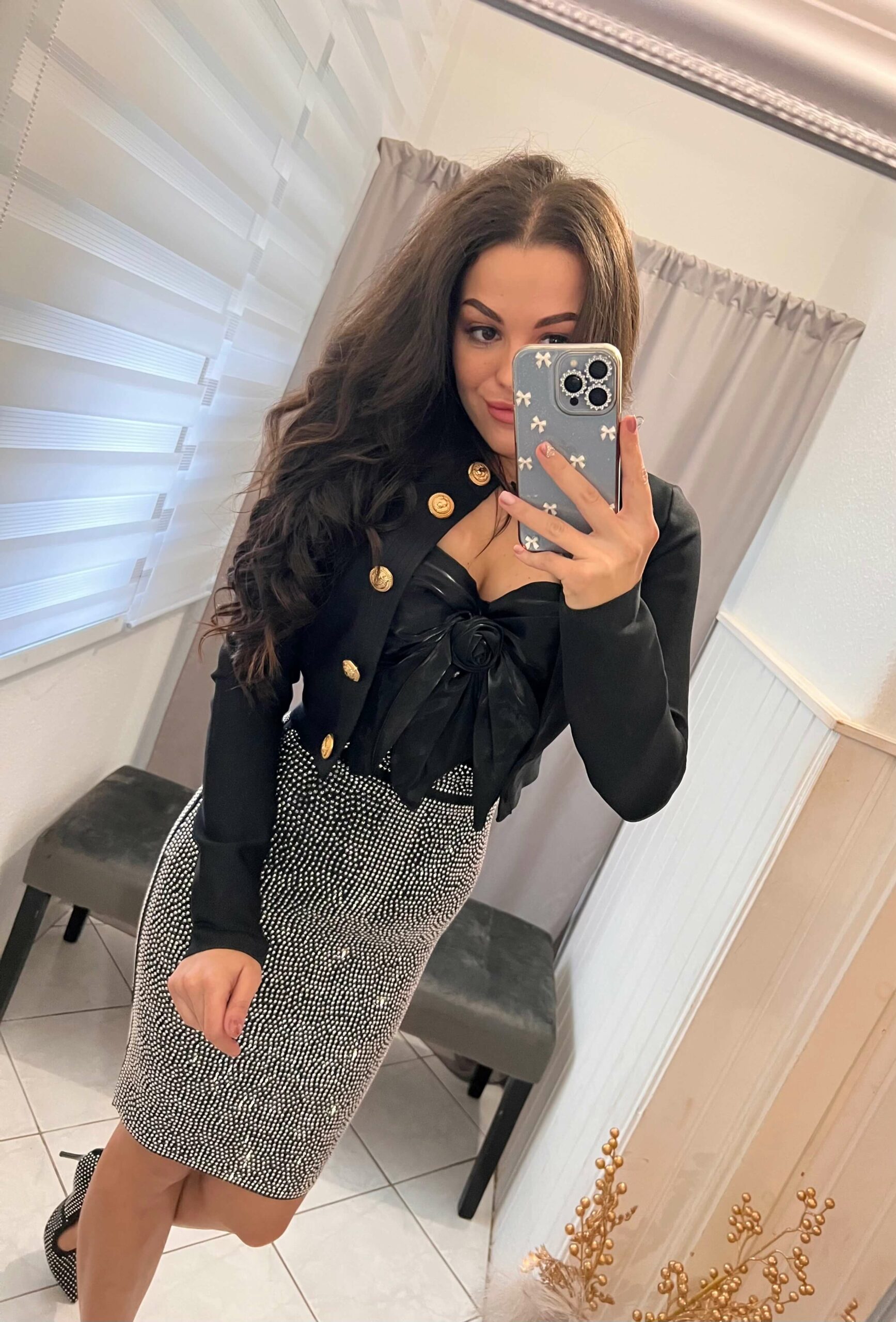 Elegáns arany gombos kiskabát gyönyöru arany gombokkal díszítve. Tűnj ki a tömegből válaszd Délia kabátunkat S M L méretben rendelhető.