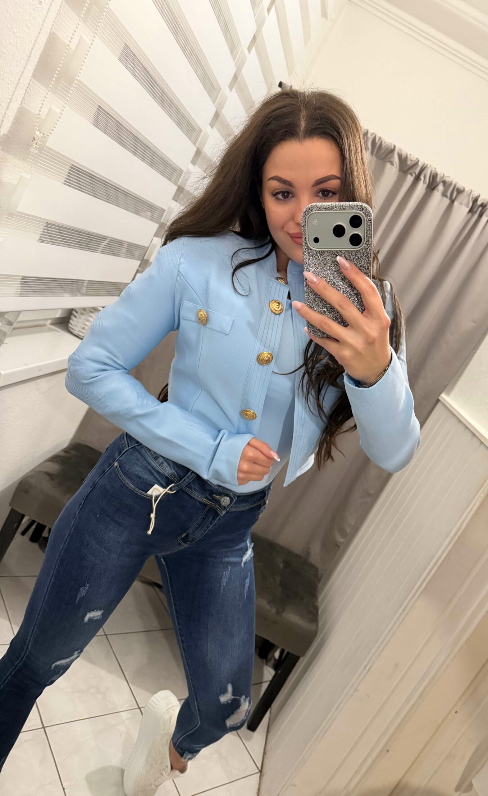 Elegáns arany gombos kiskabát gyönyöru arany gombokkal díszítve.