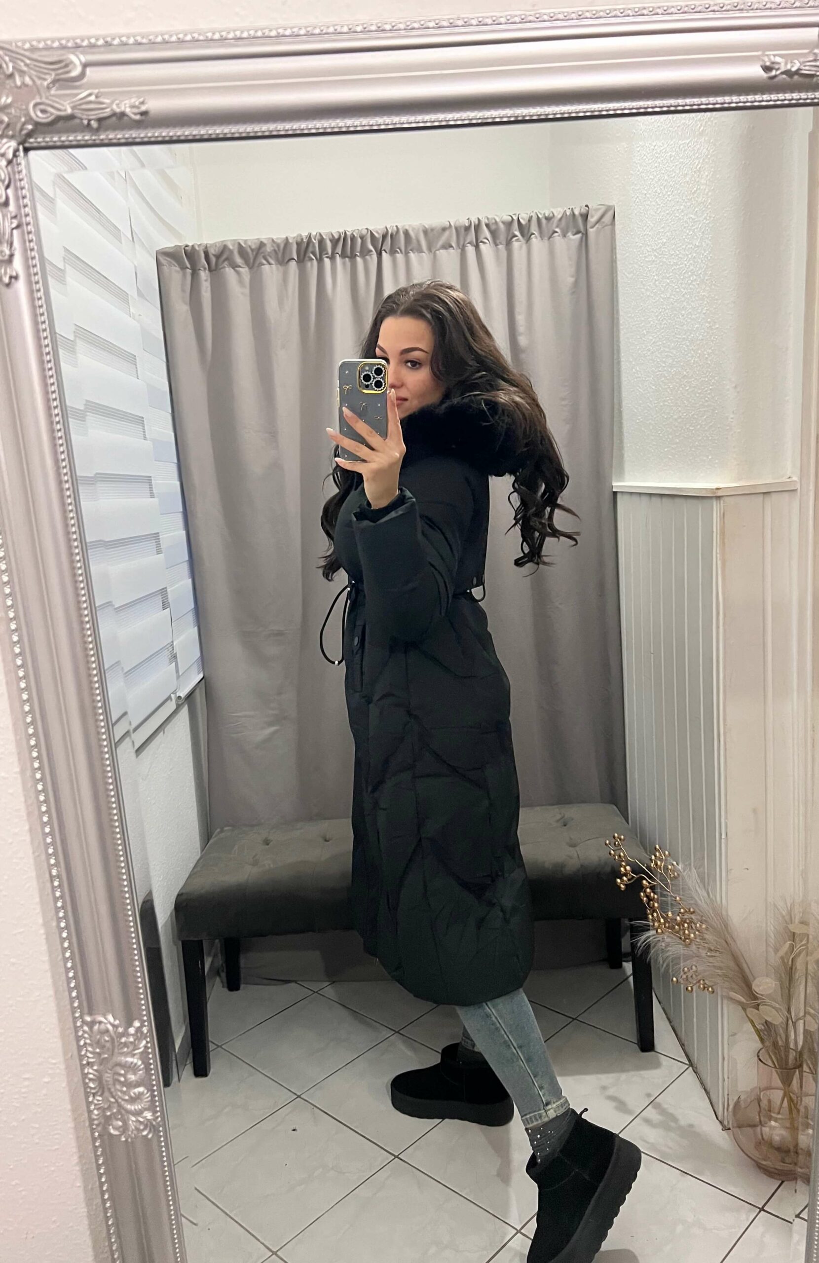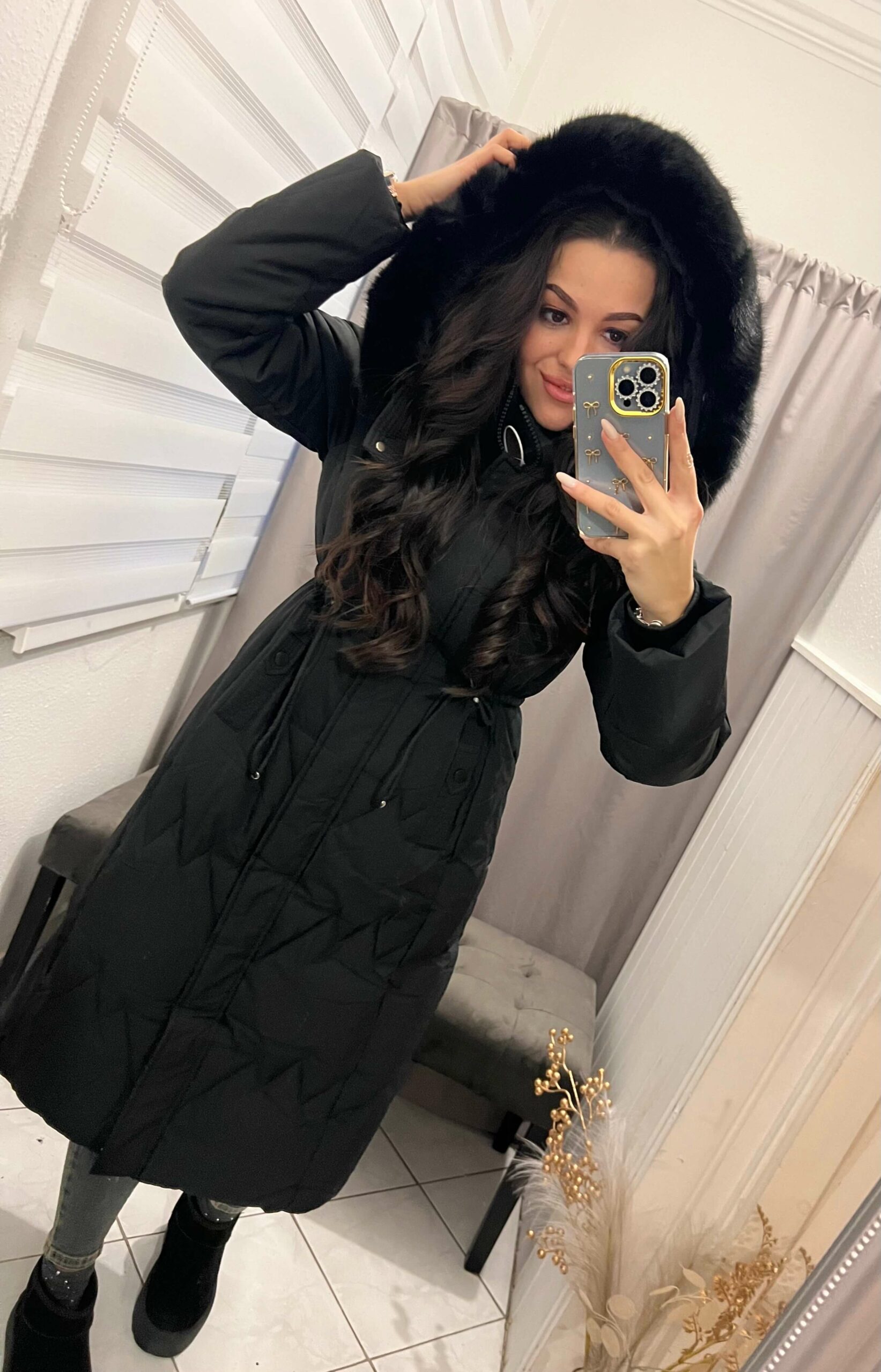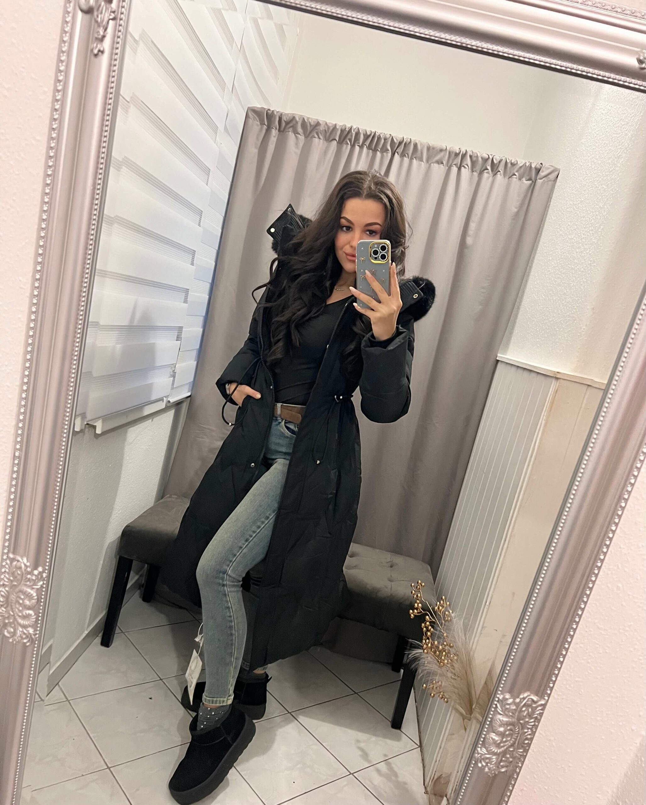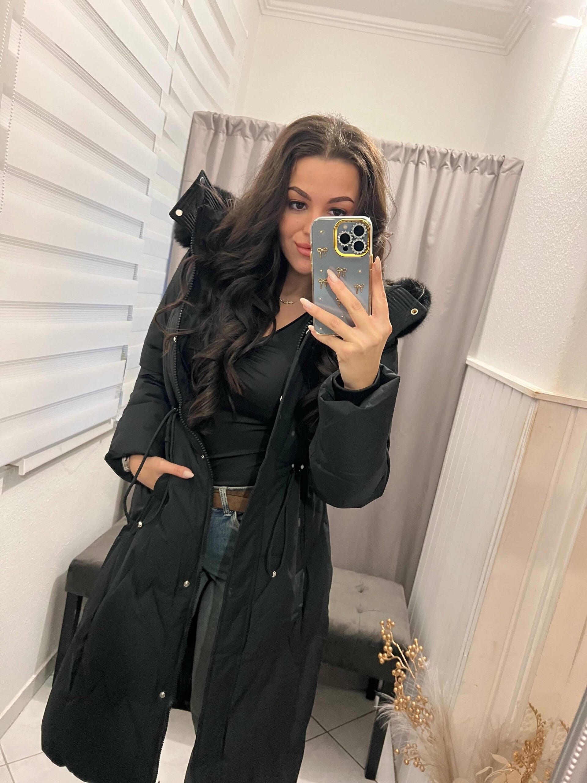 Szőrmés diszitéssel a kapucni részén amely legombolható.