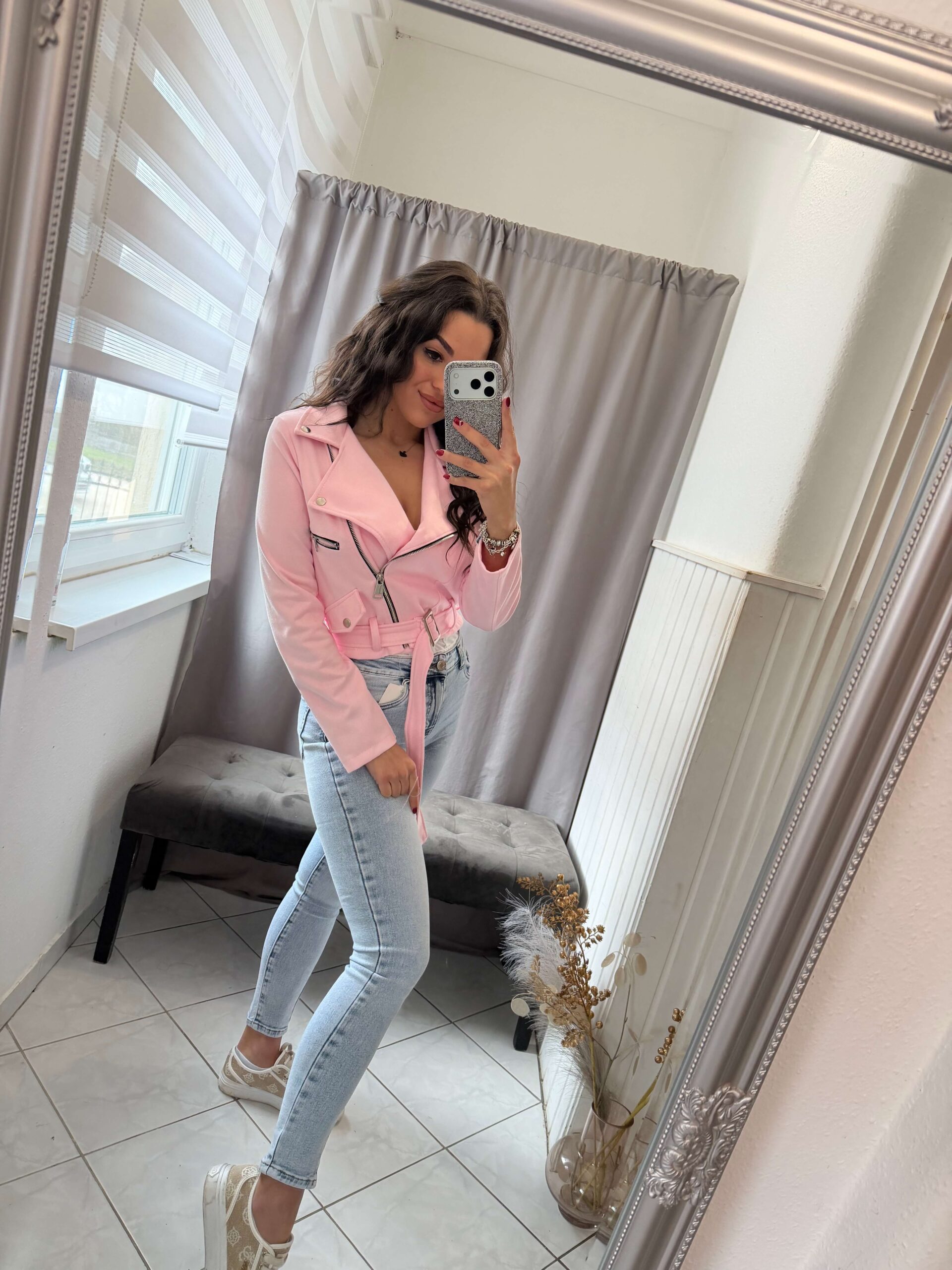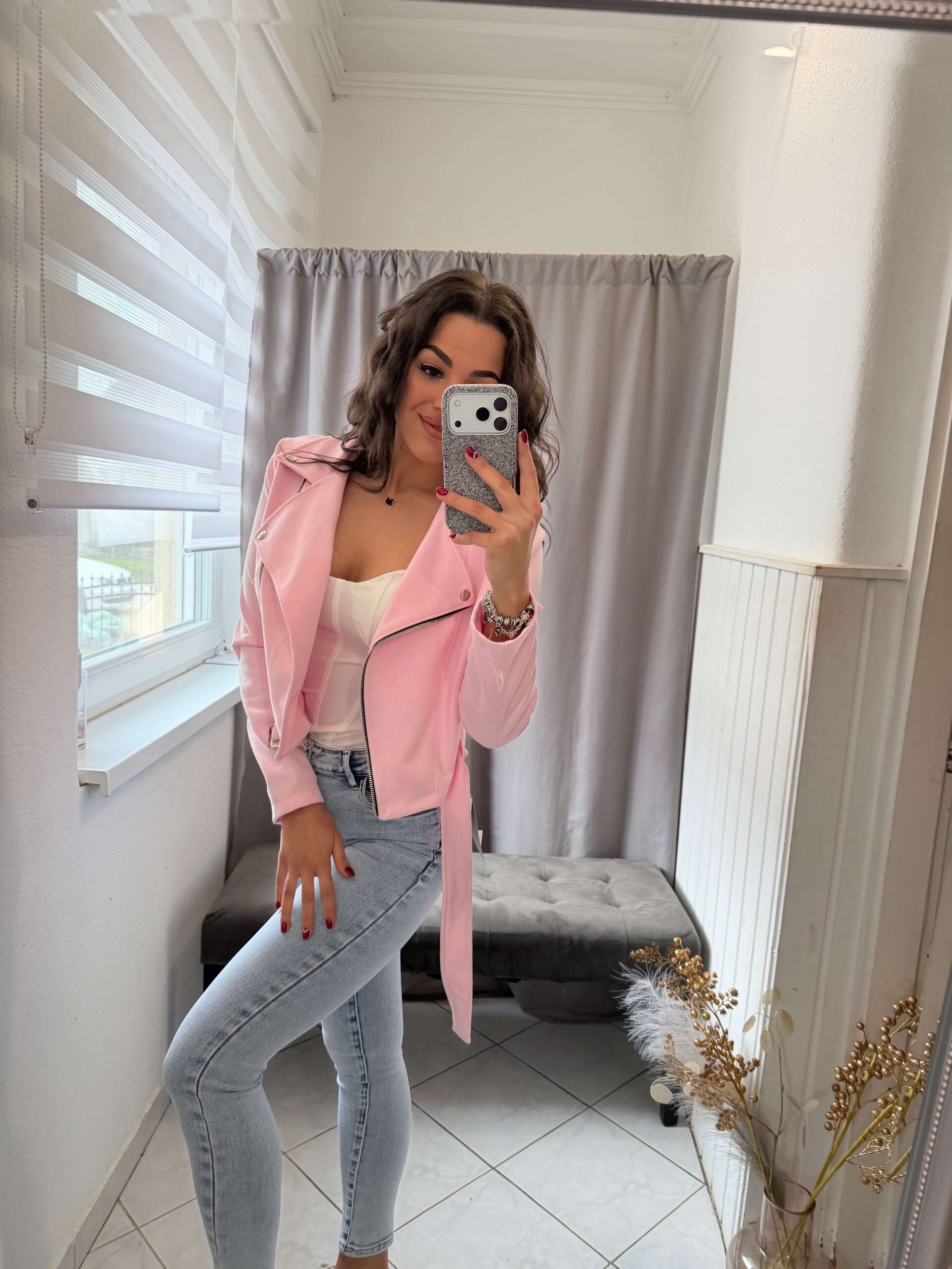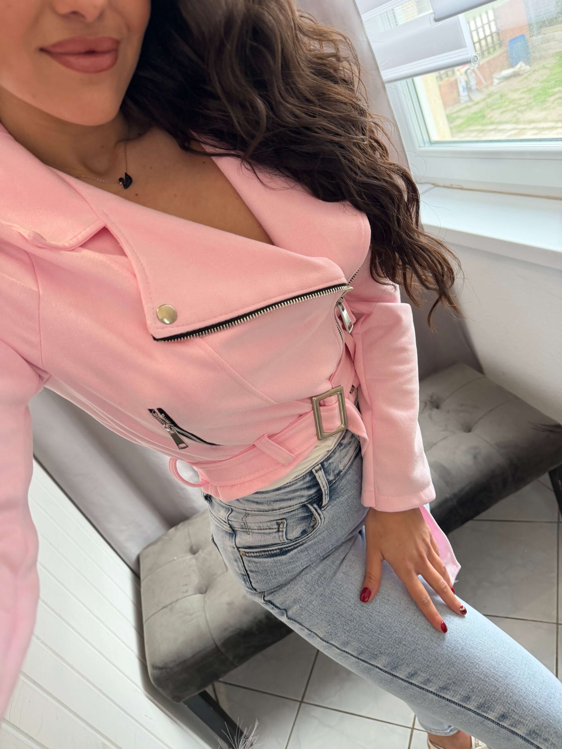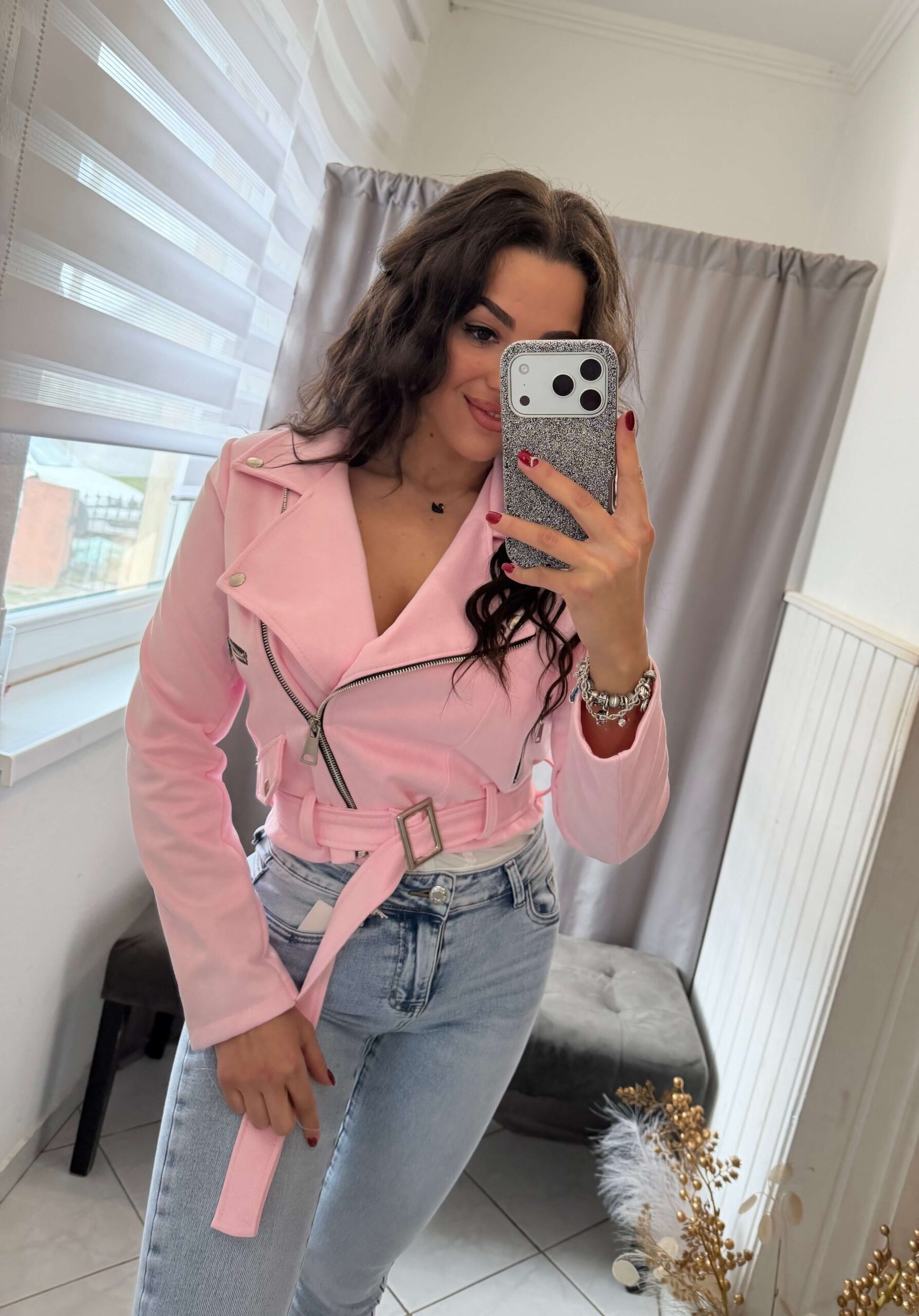 Manka velúr cipzáras fazonú púder kabát.