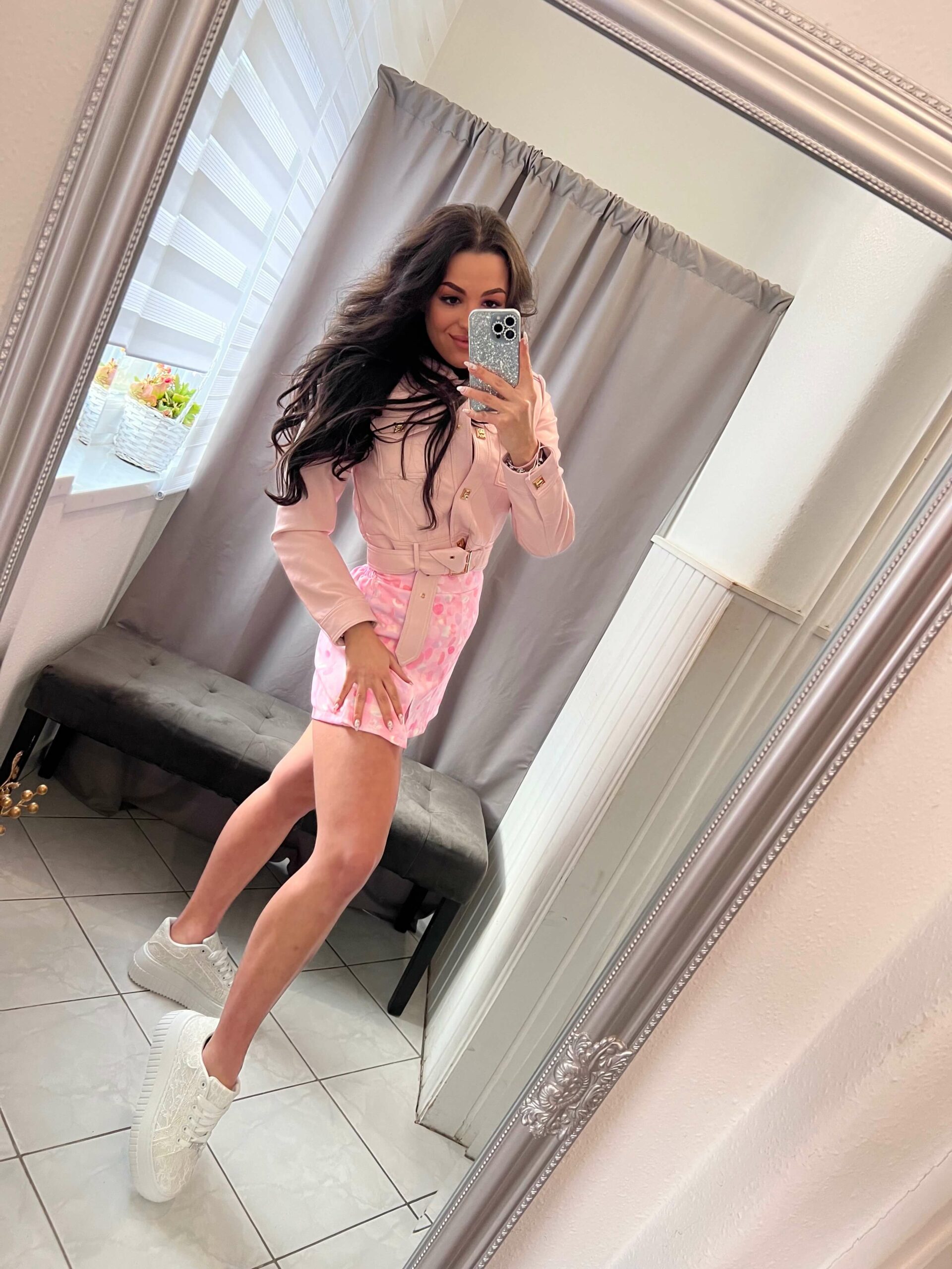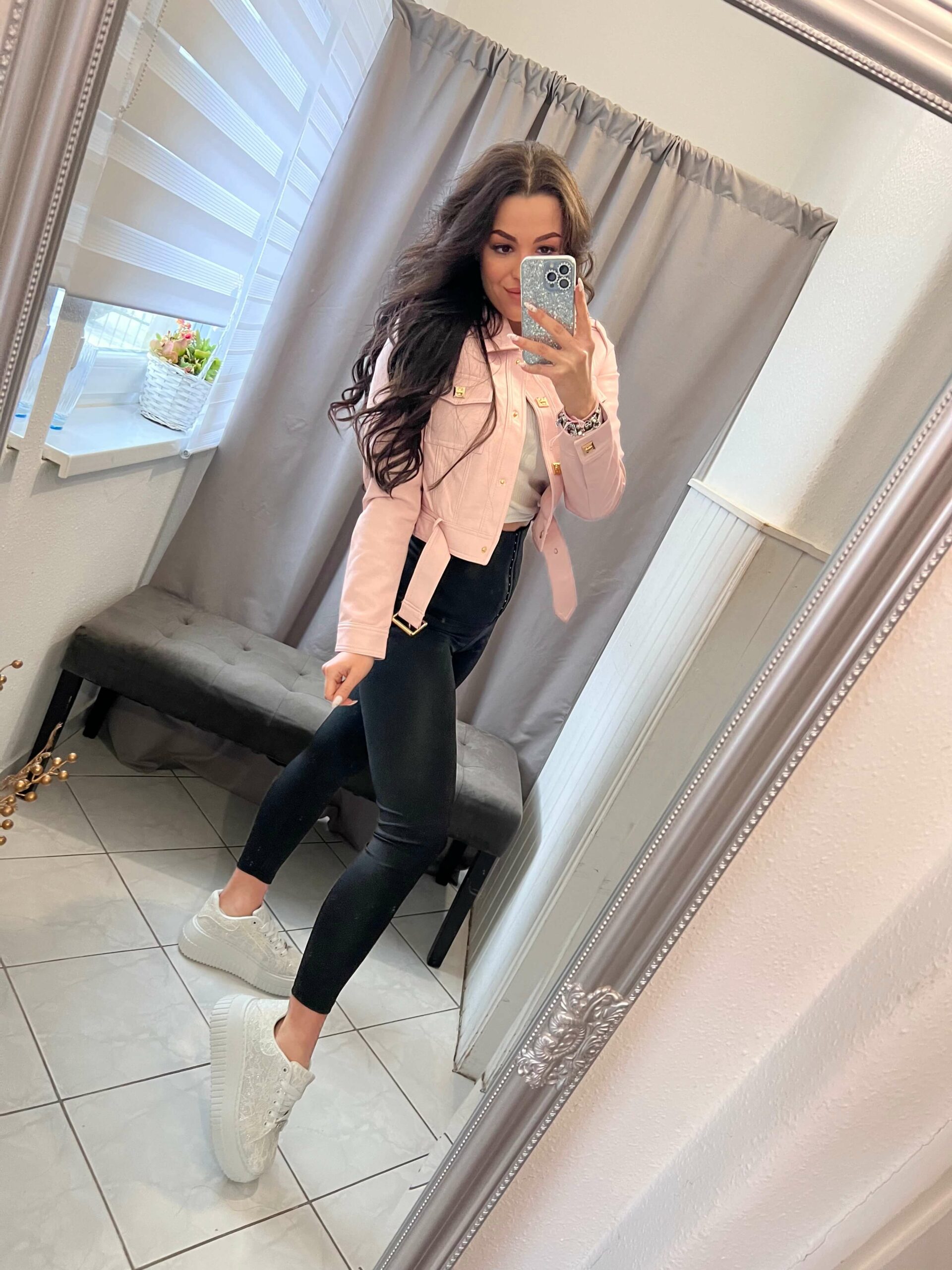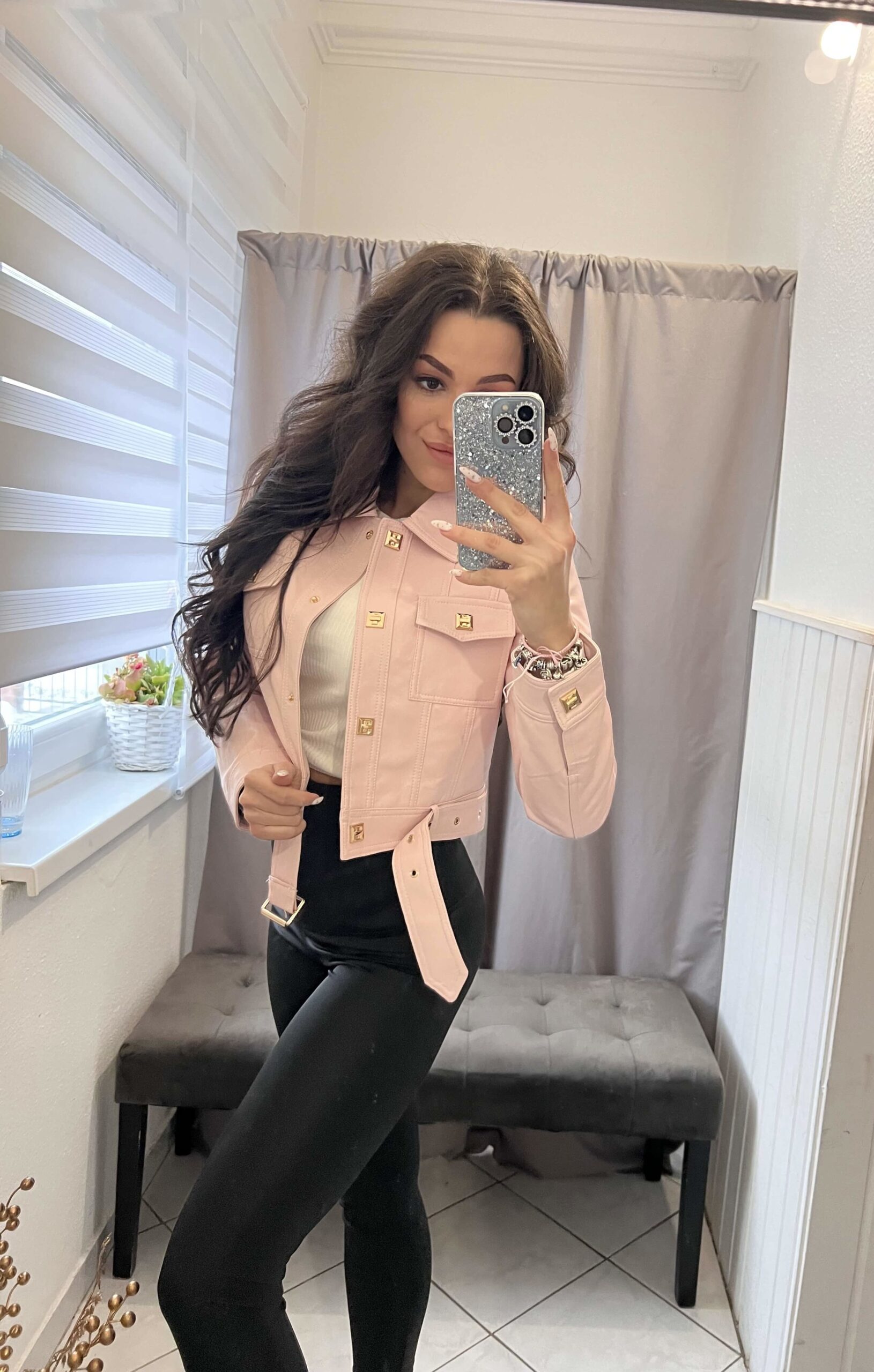 Mola púder bőr hatású kabát.