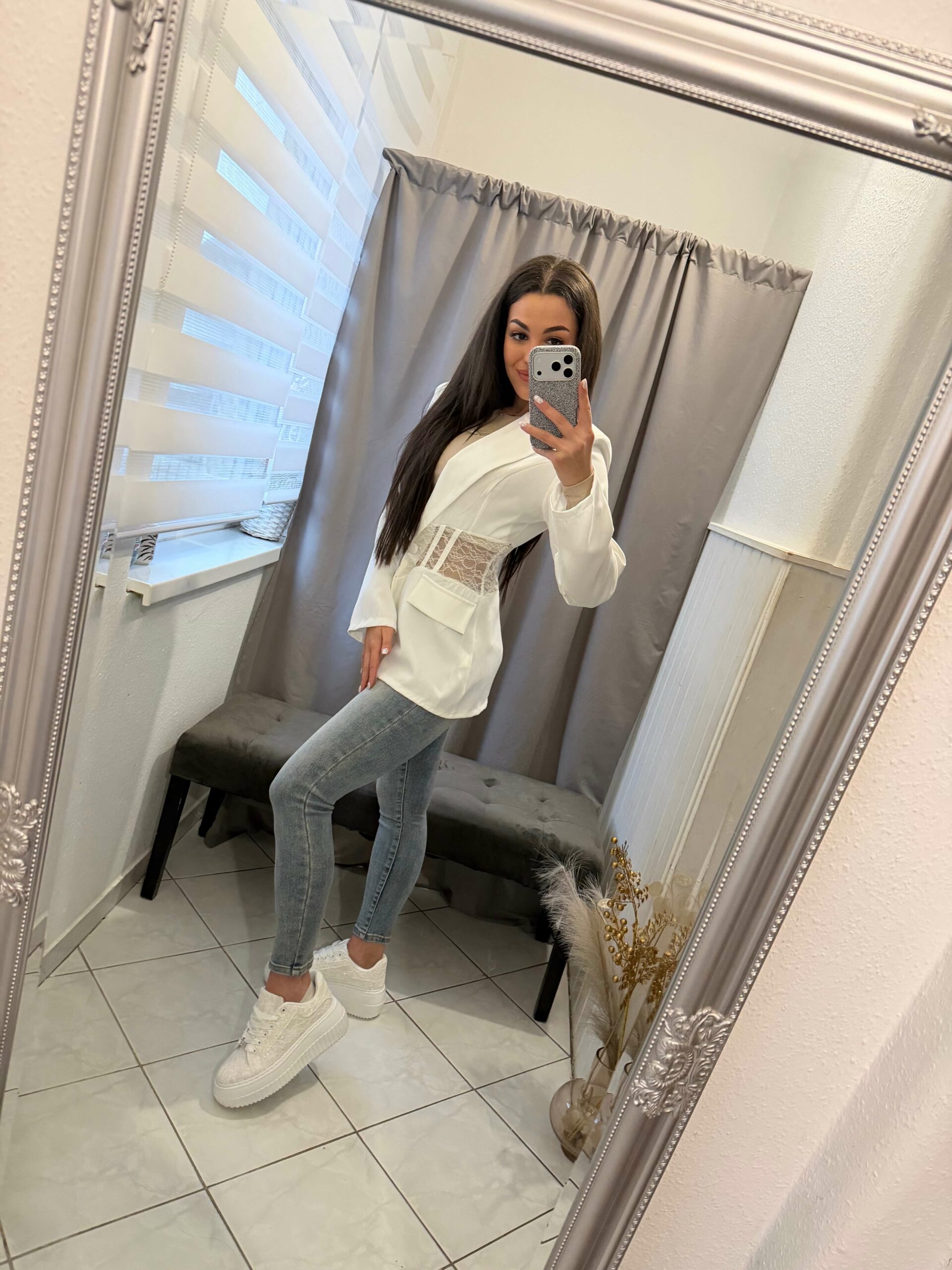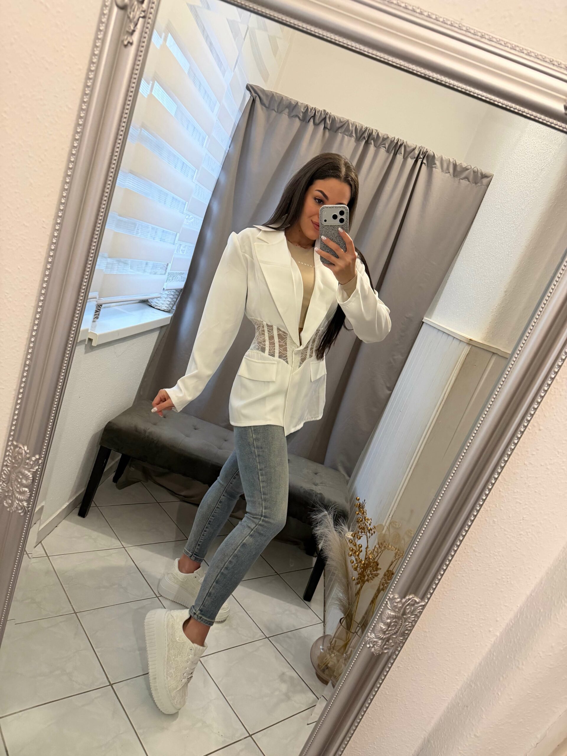 Zelli tüllös, csipkés fehér zakó.