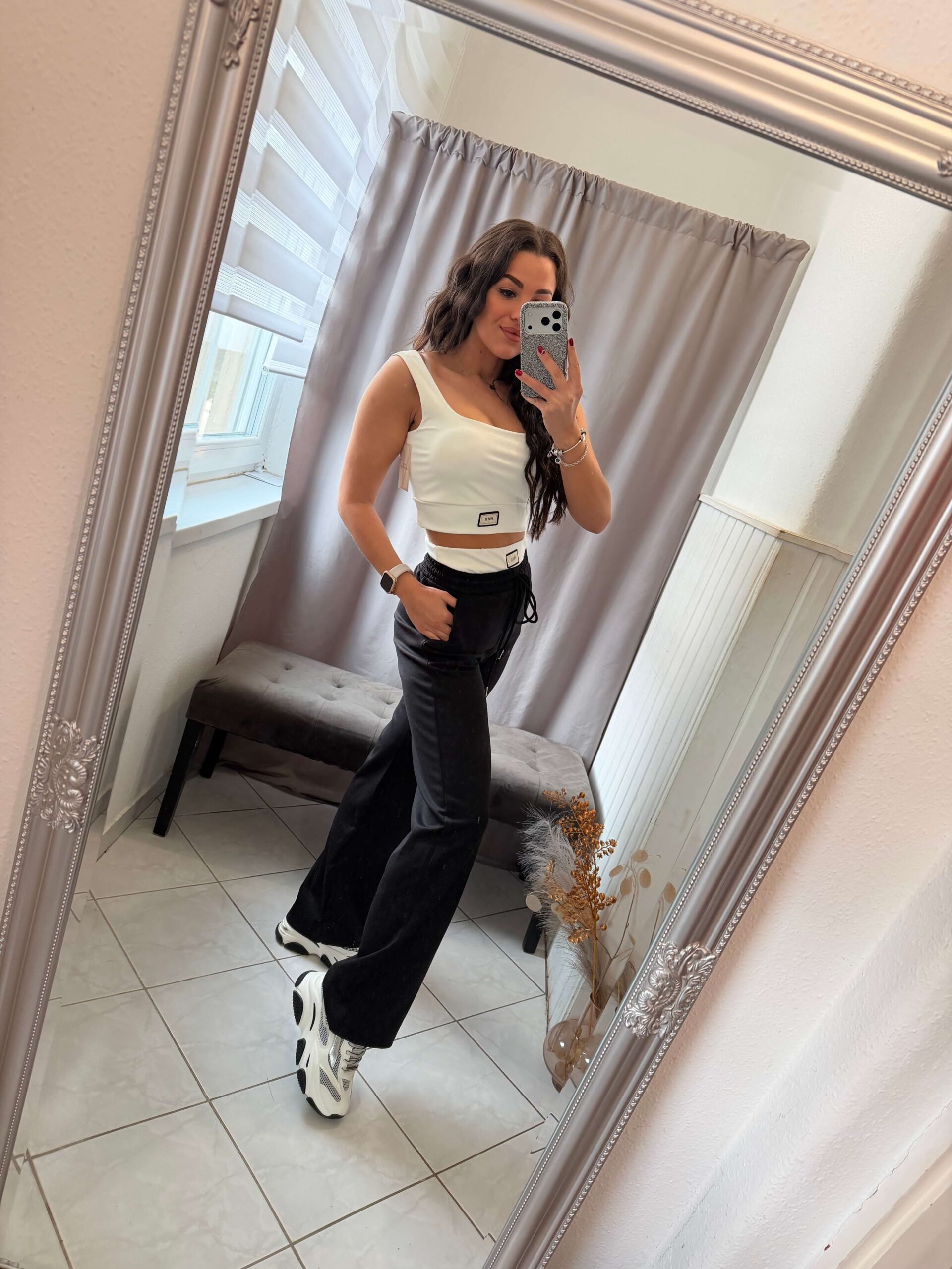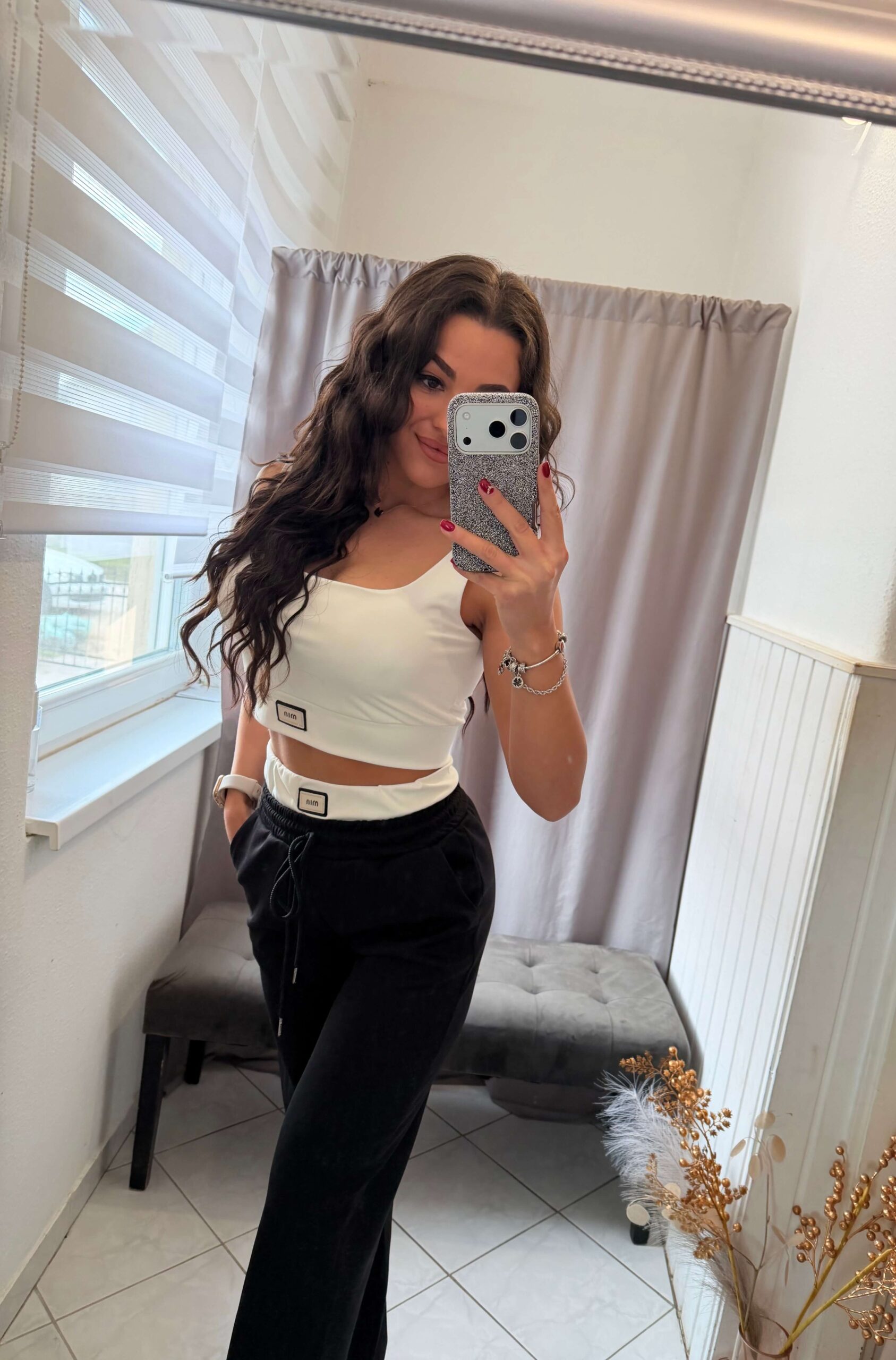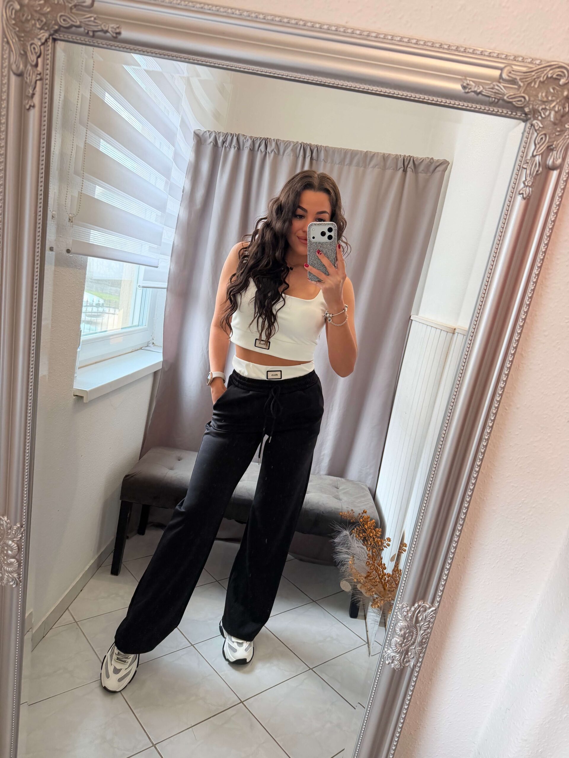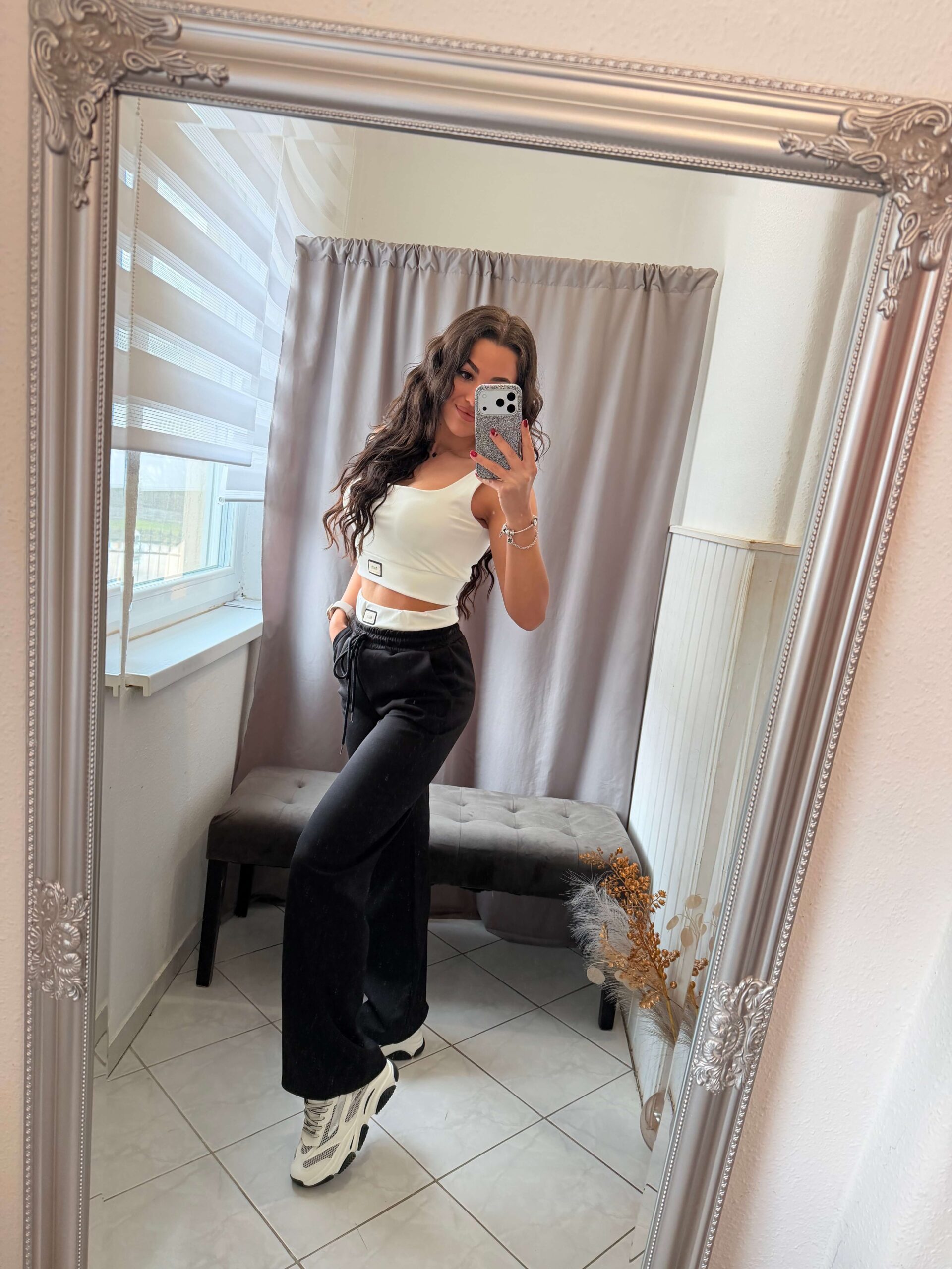 Blo fekete-fehér bő szárú kétrészes szett.