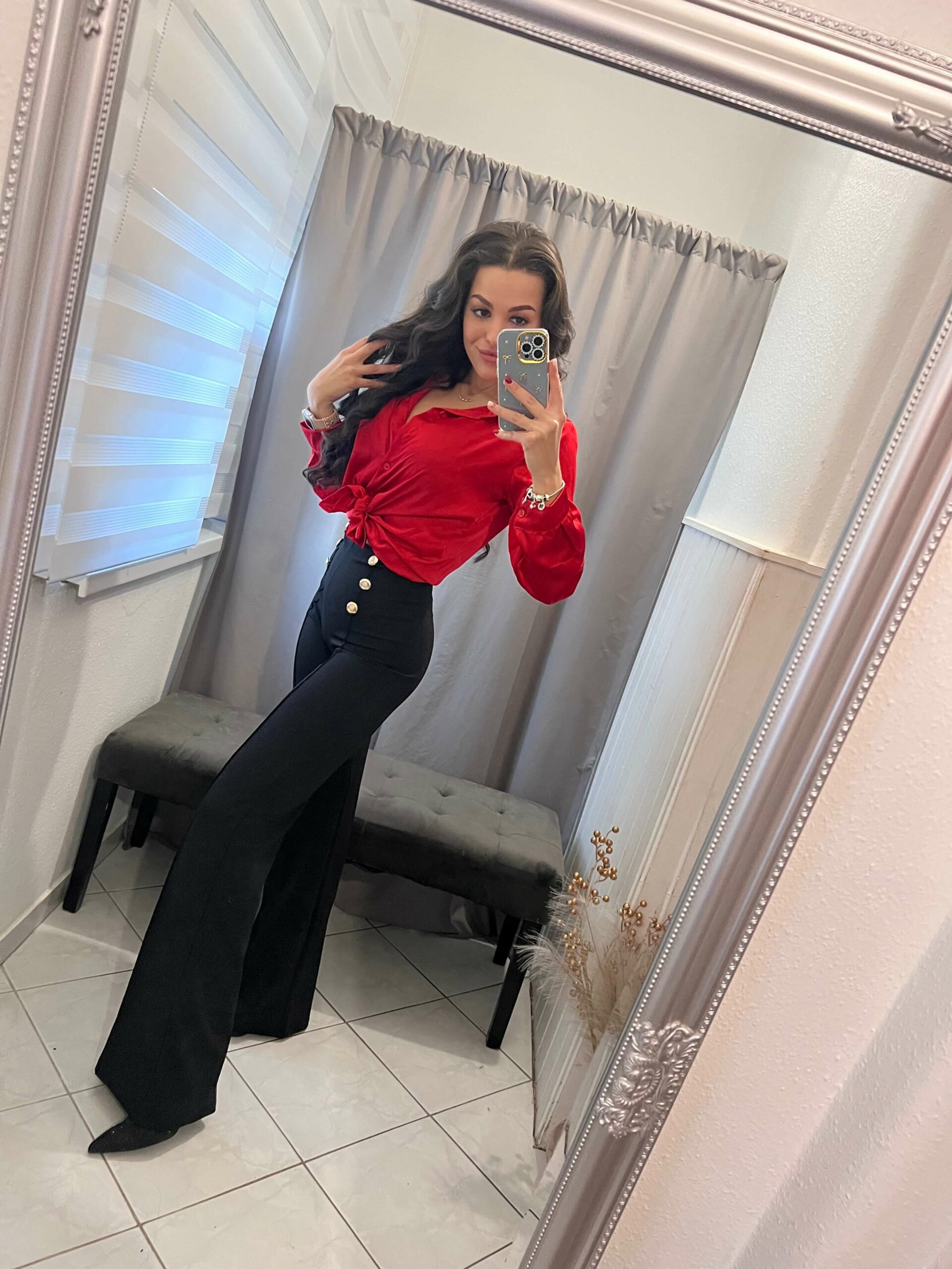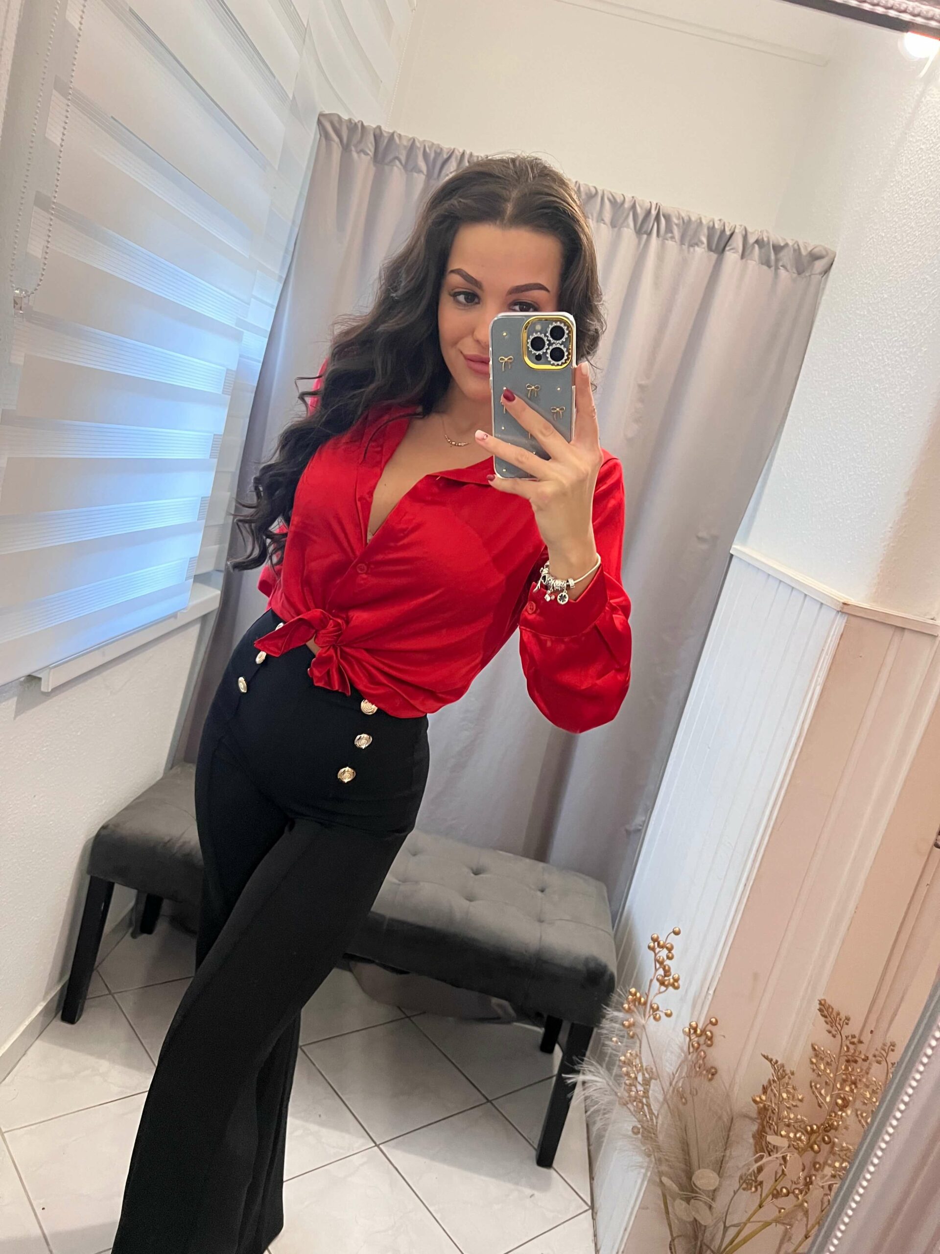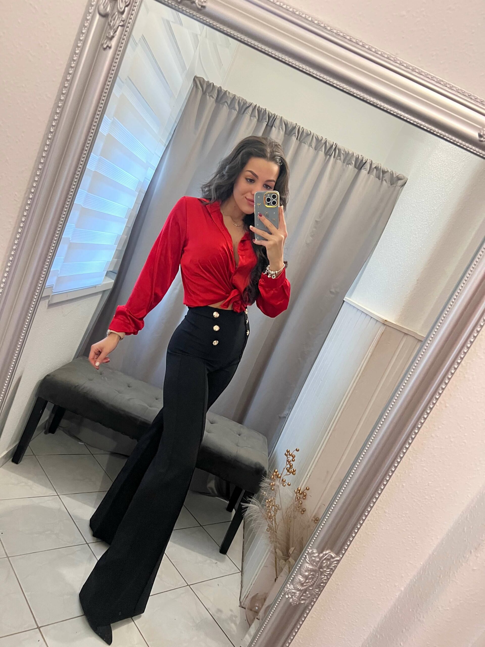 Blum fekete arany gombokkal diszitett bő szárú nadrág.