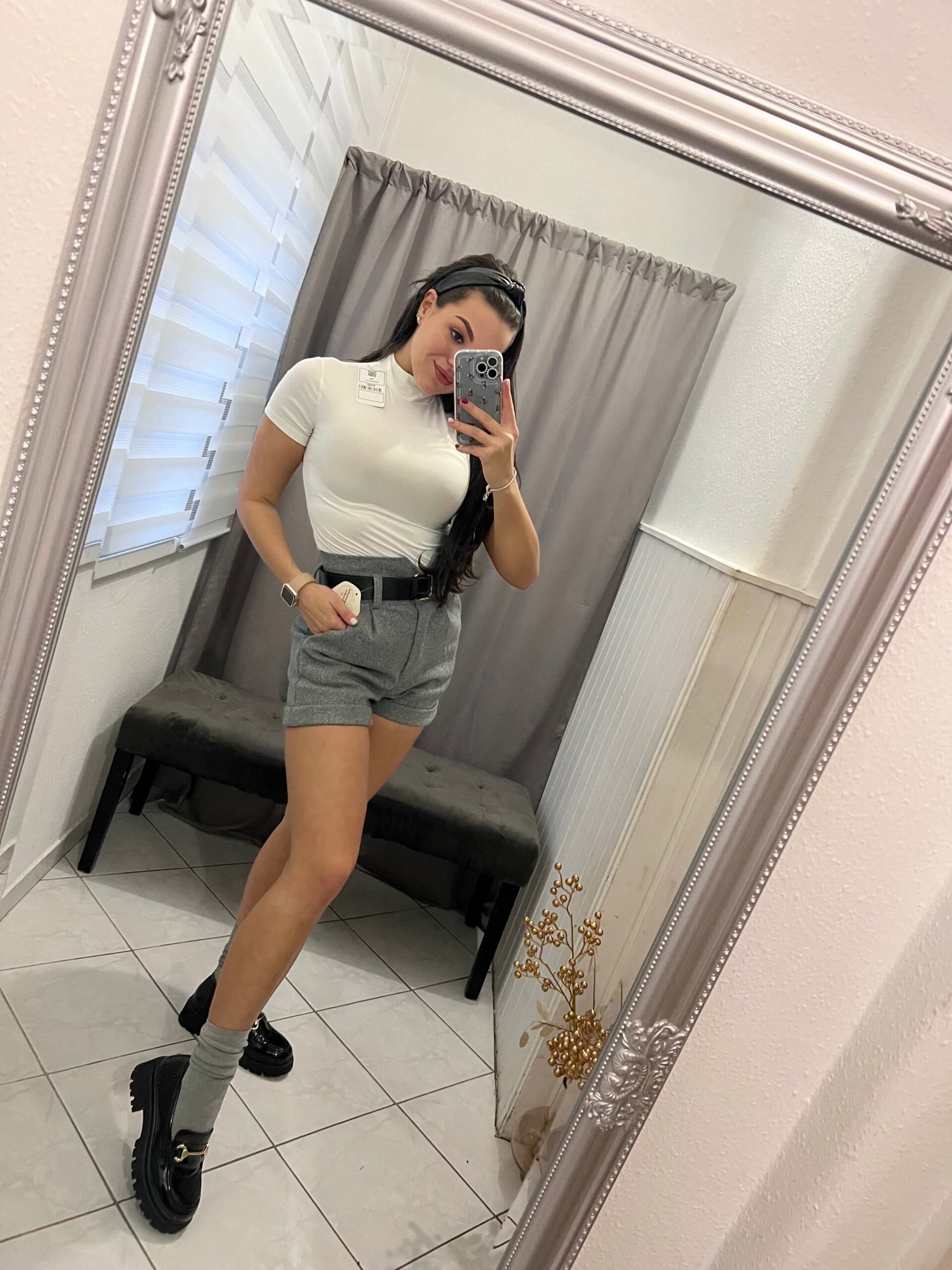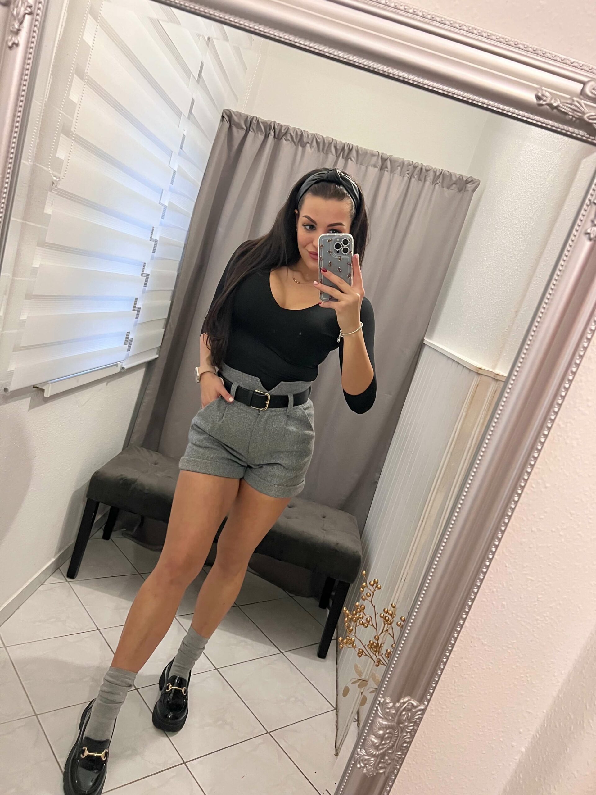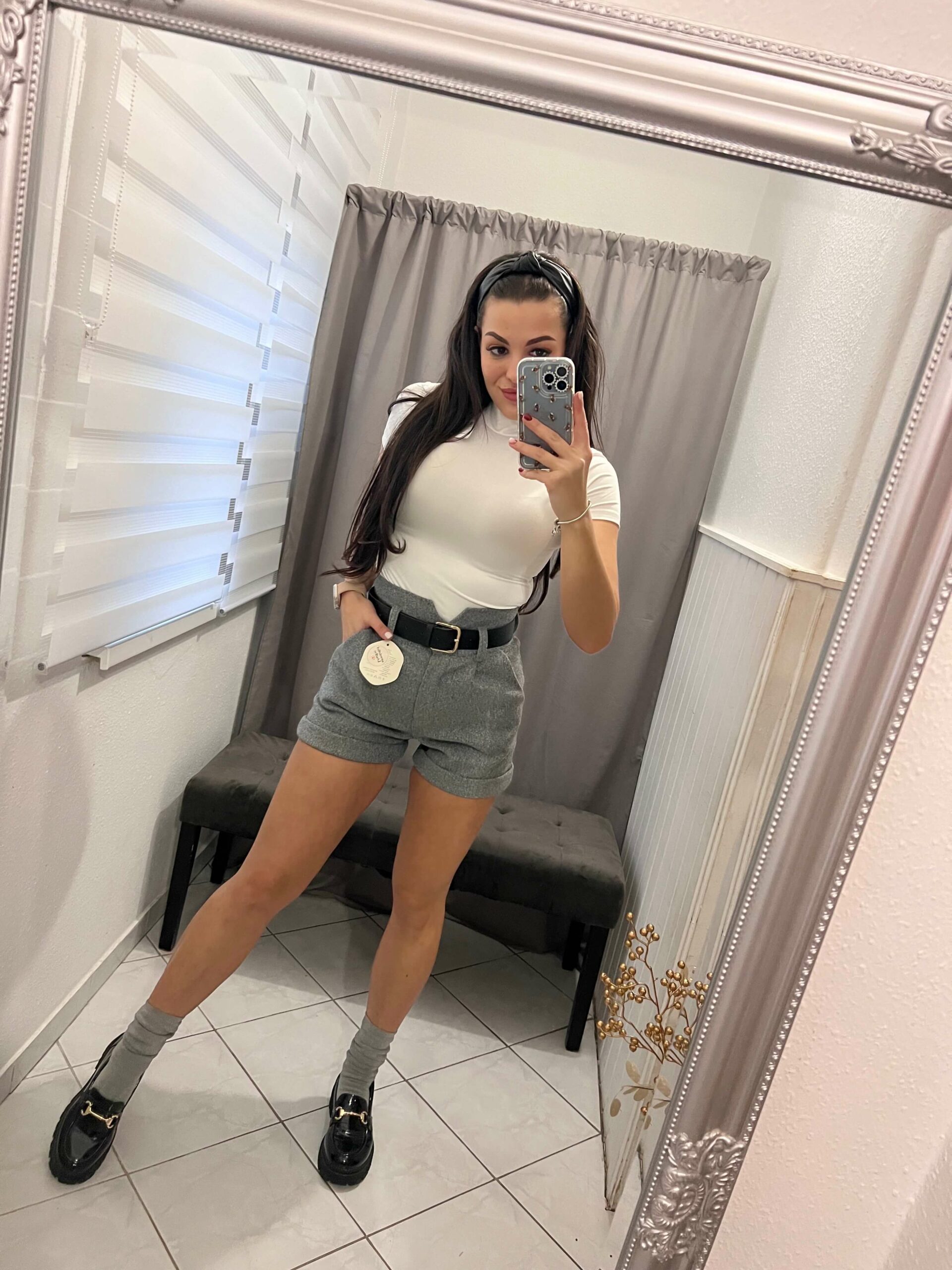 Milla szürke öves rövid nadrág.