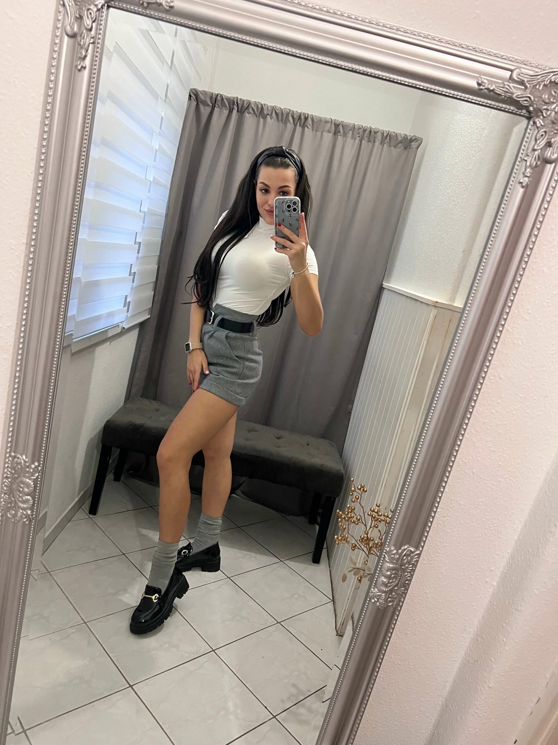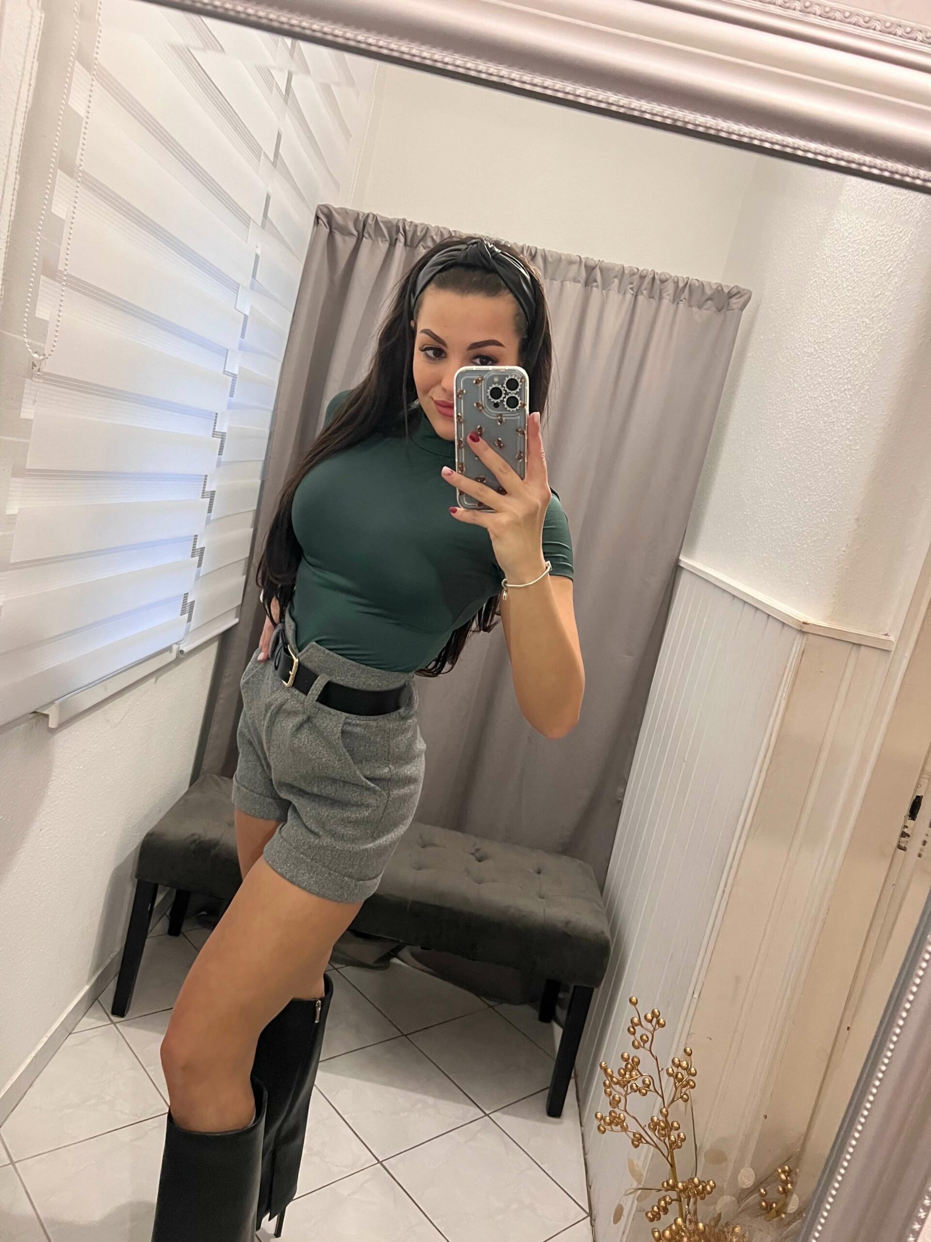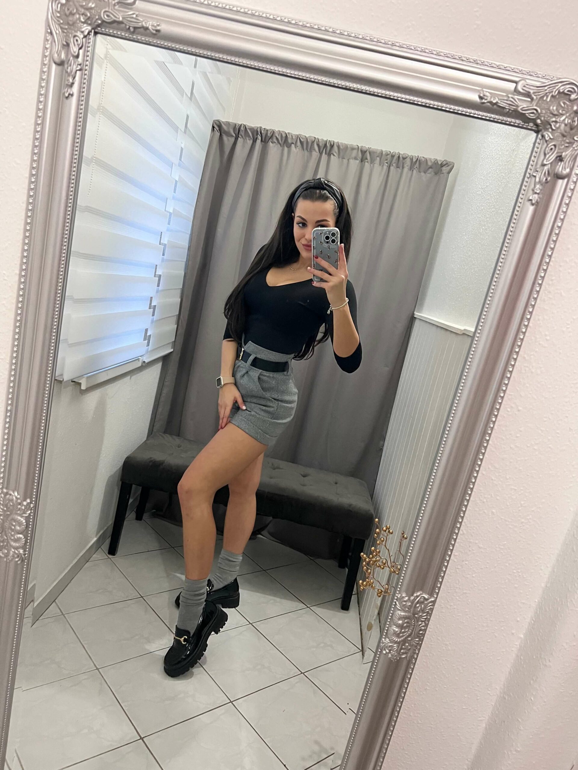 Milla szürke öves rövid nadrág.
