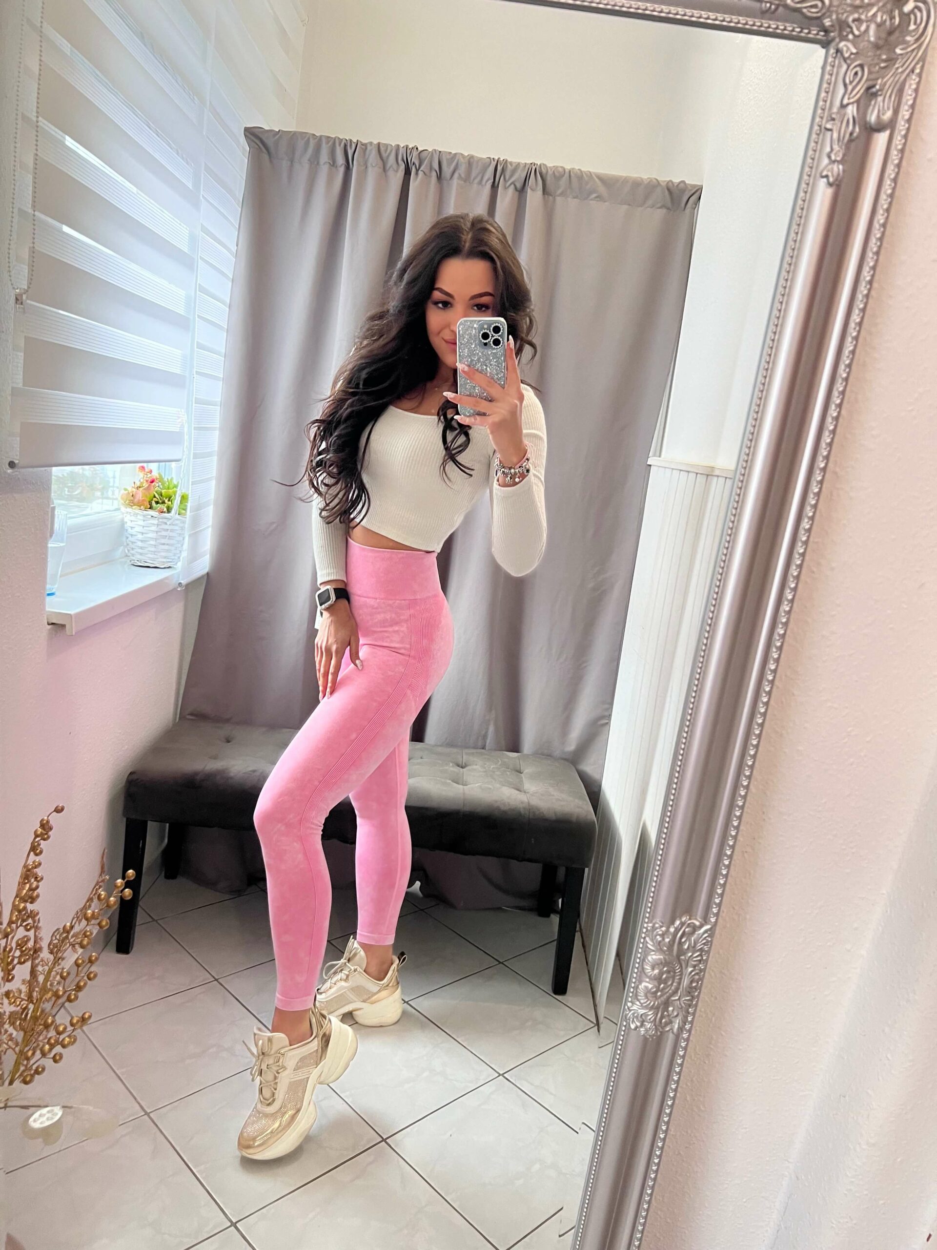 Nella alakformáló koptatott fazonú rózsaszin nadrág.