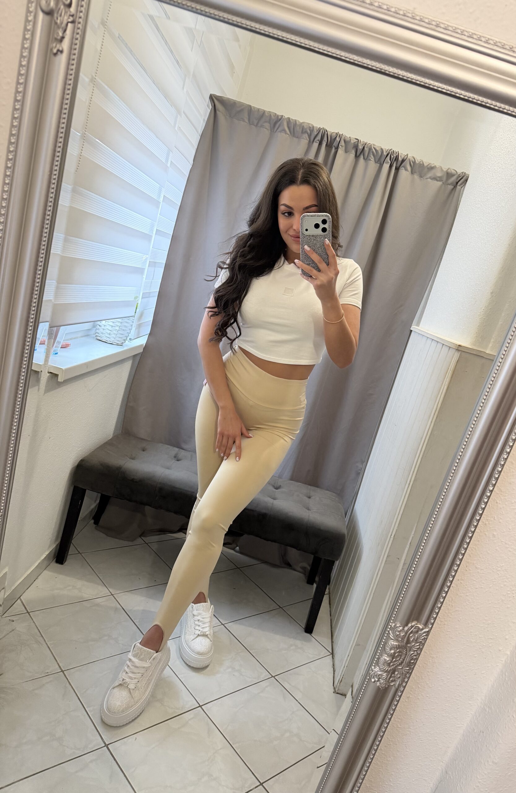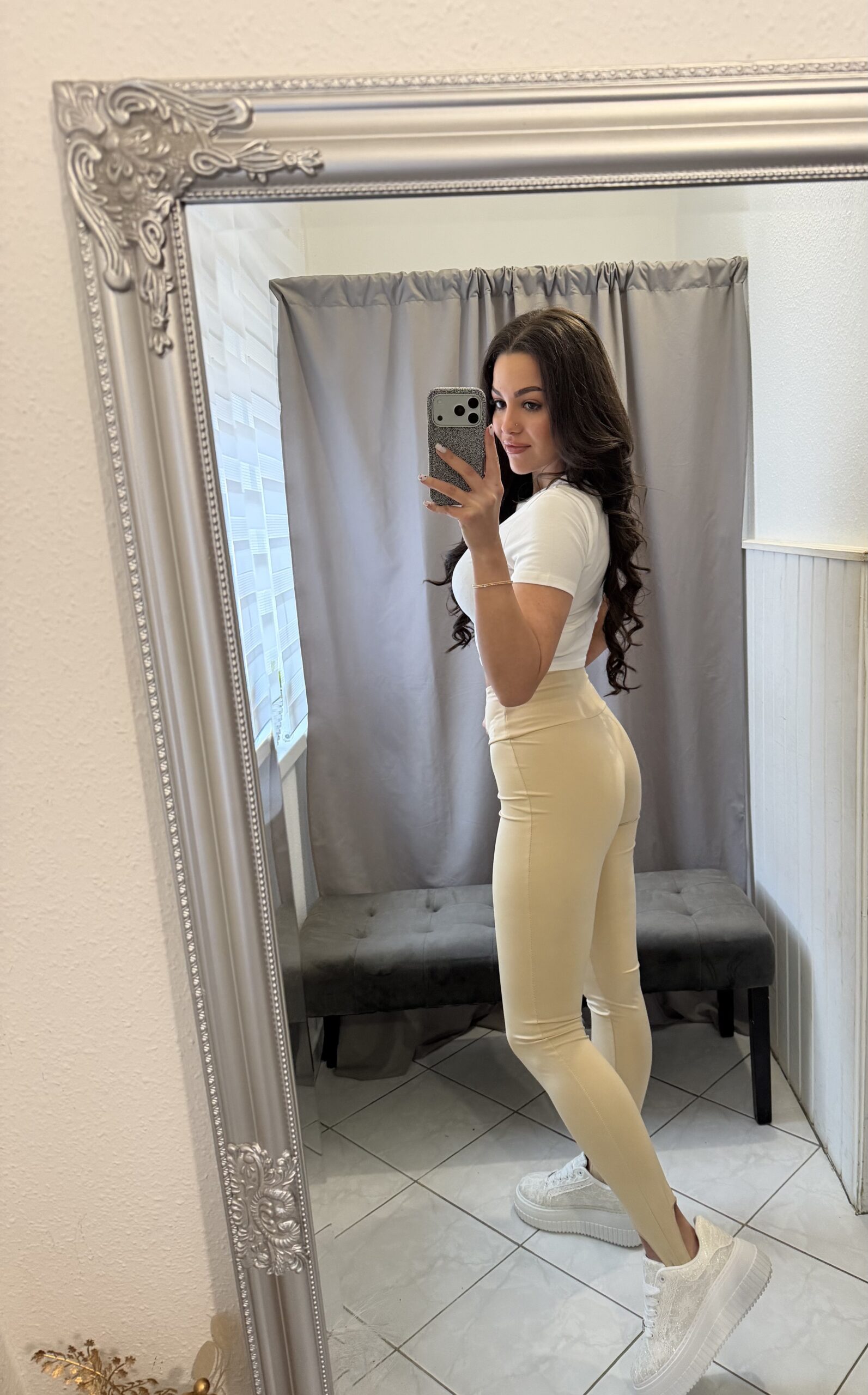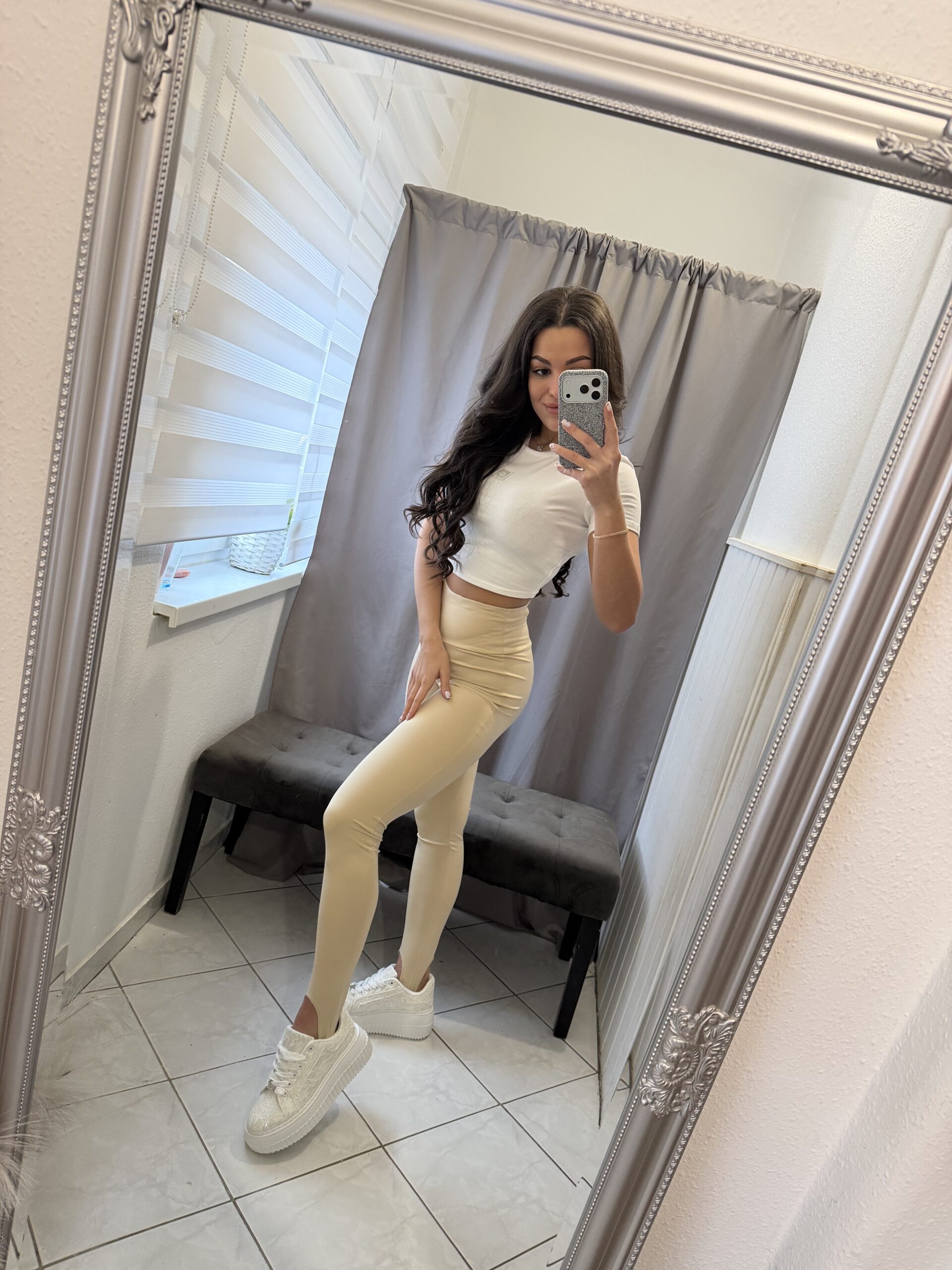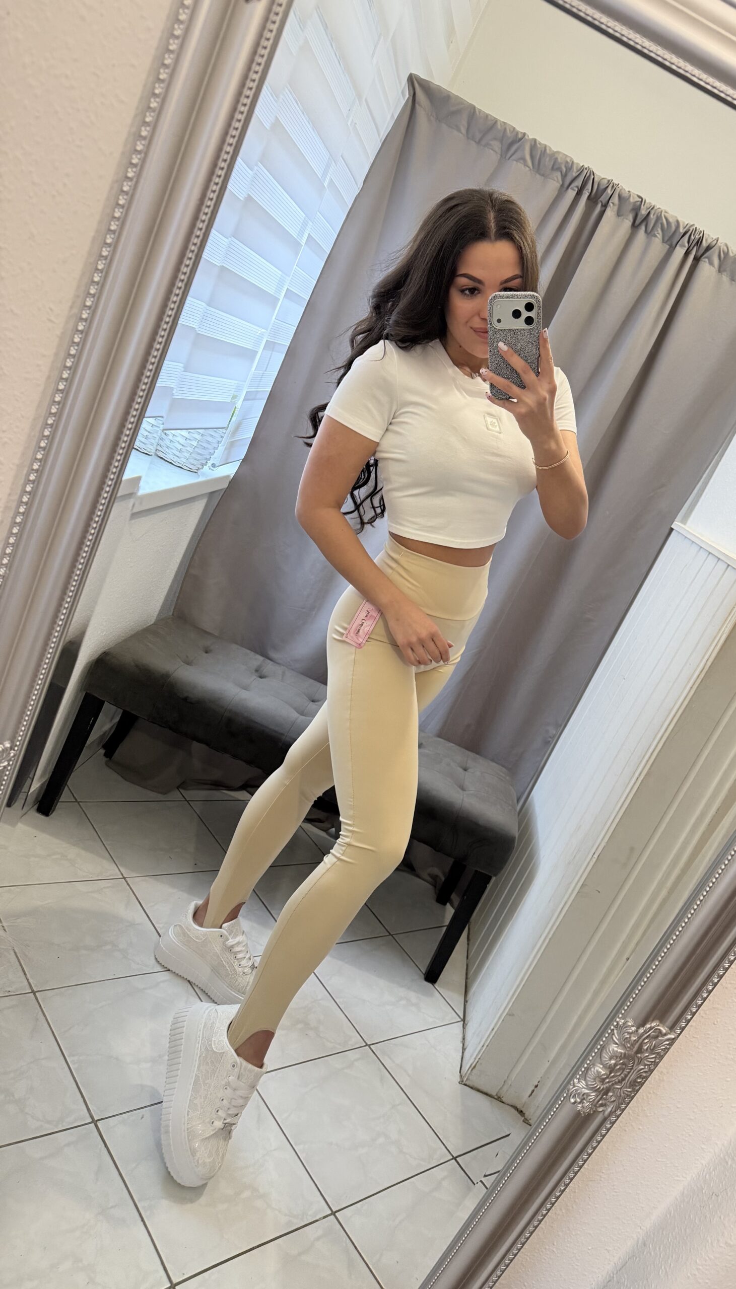 Zoe bézs pantallos fazonú leggings.
