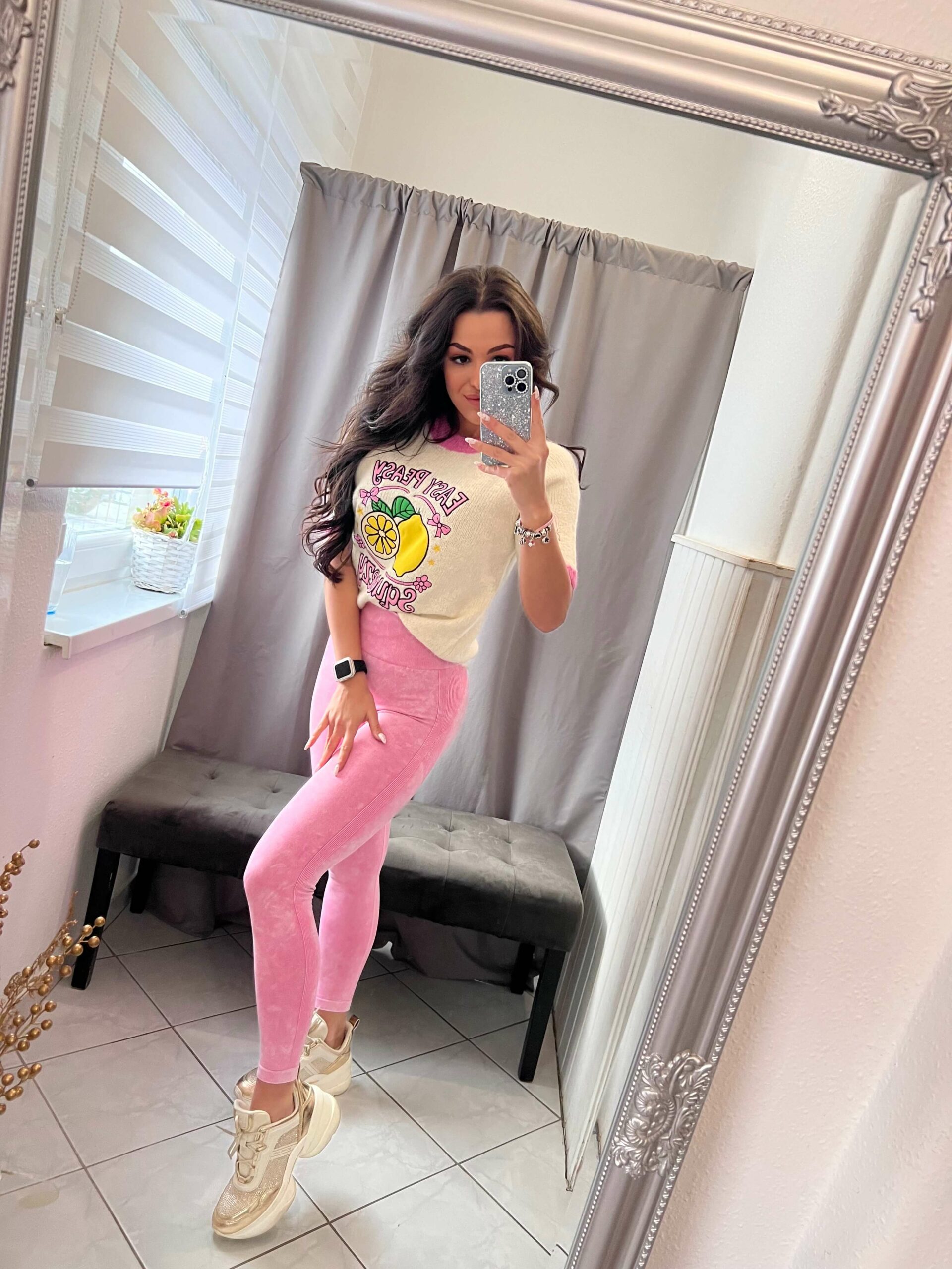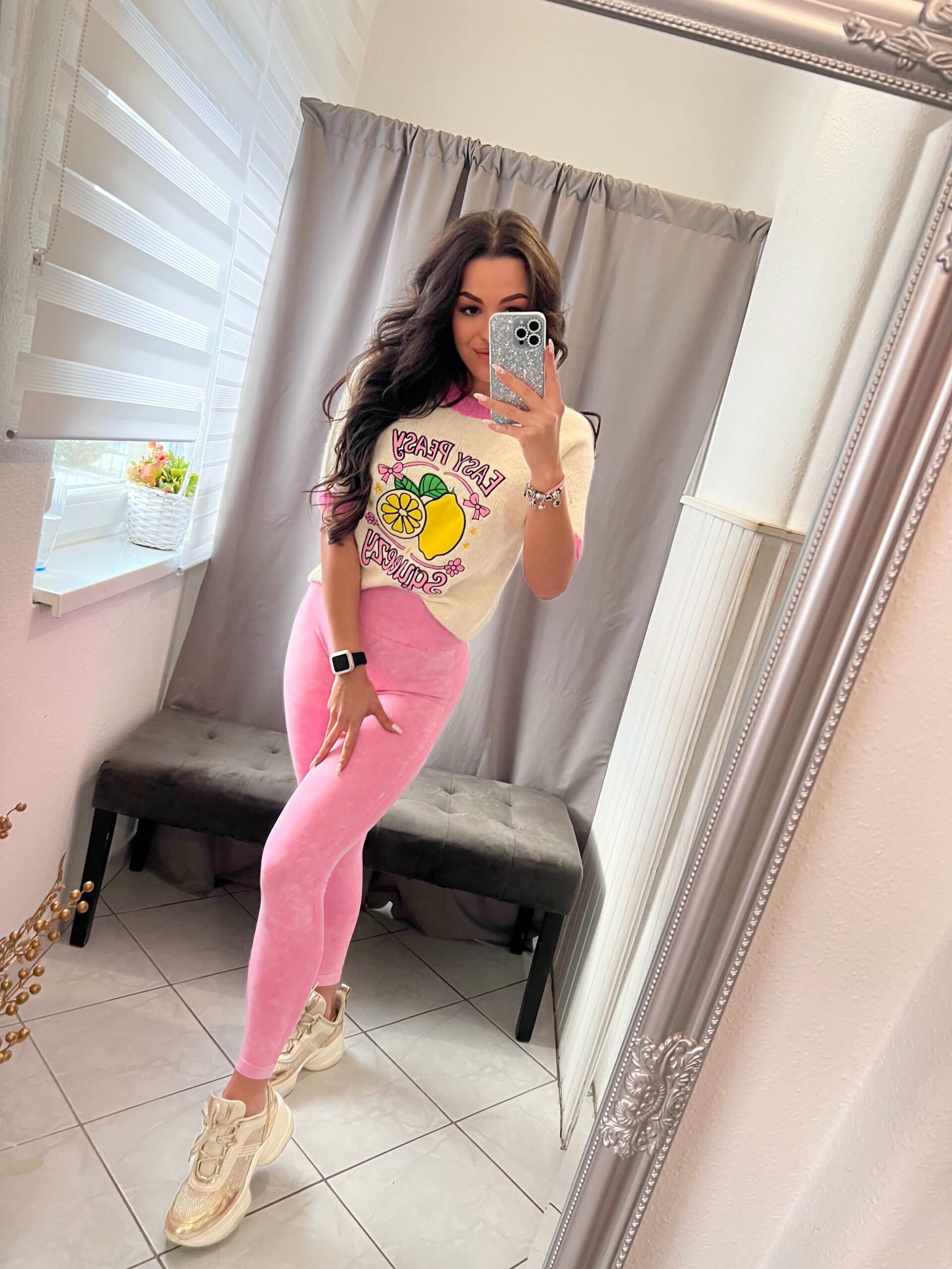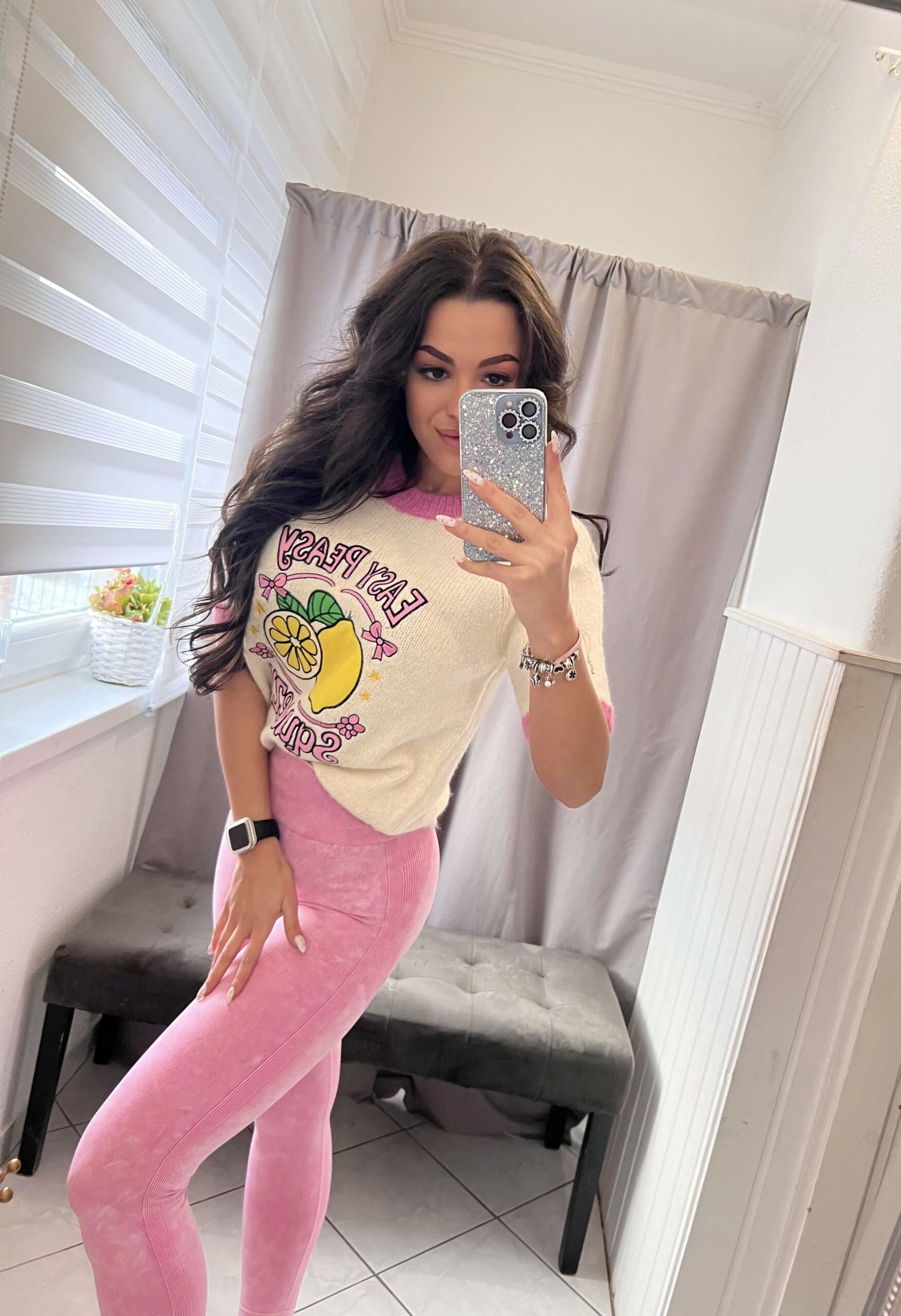 Kleni rövid ujjú citrom mintás kötött anyagú felső .