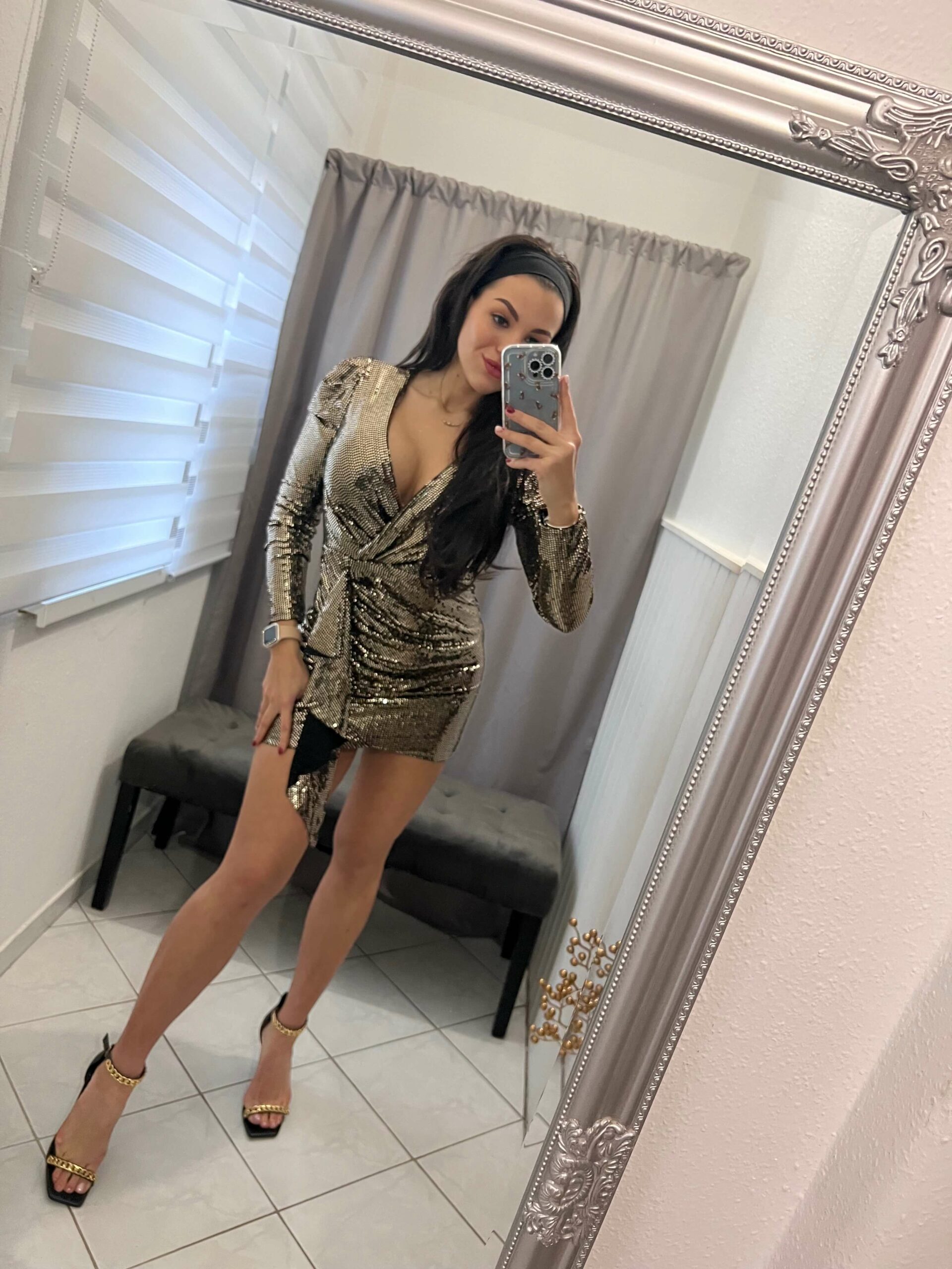 Ella arany flitteres oldalt fodros diszitéses mini fazonú ruha.