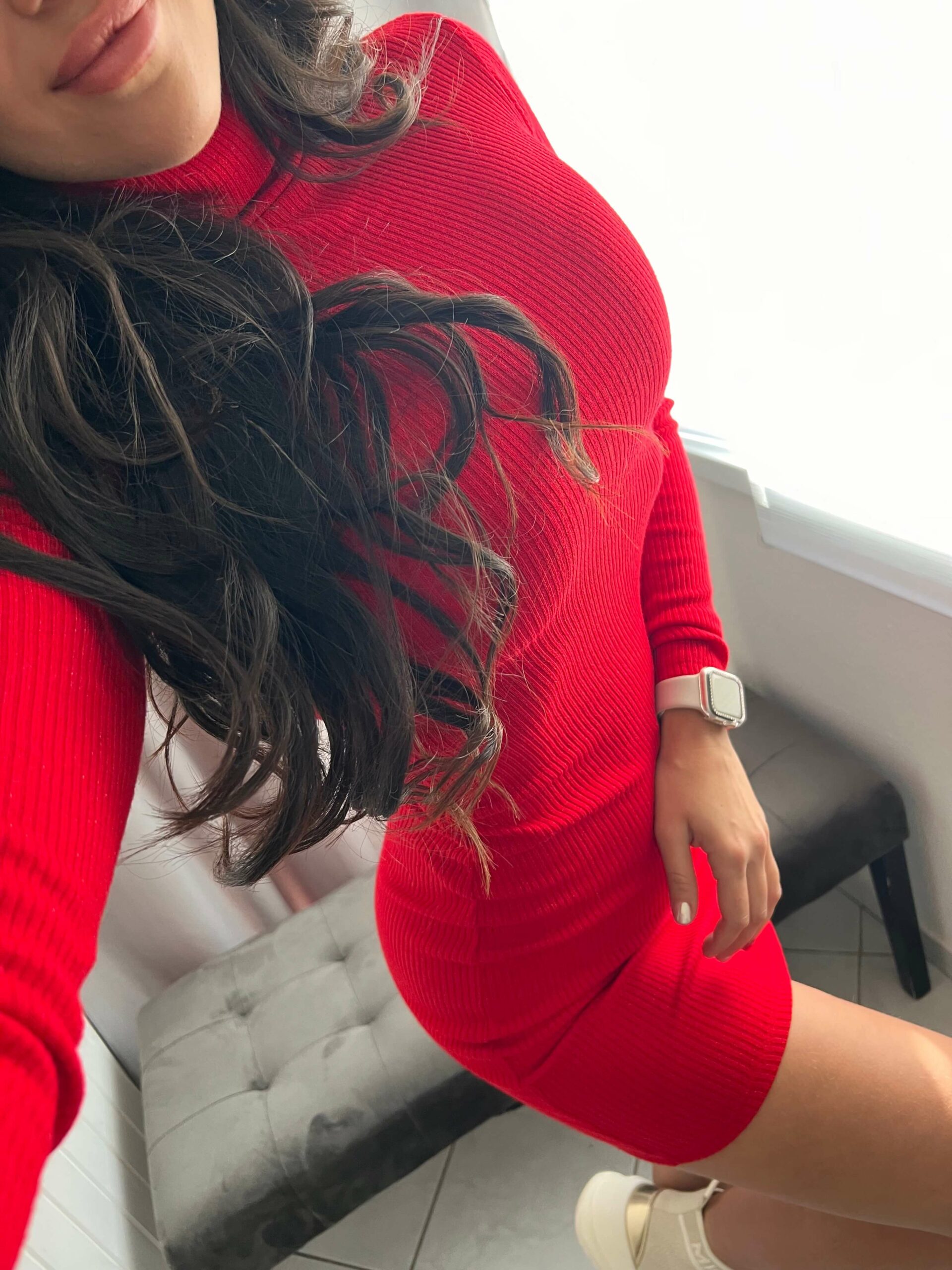 „Goldy garbós kötött piros ruha” értékelése elsőként