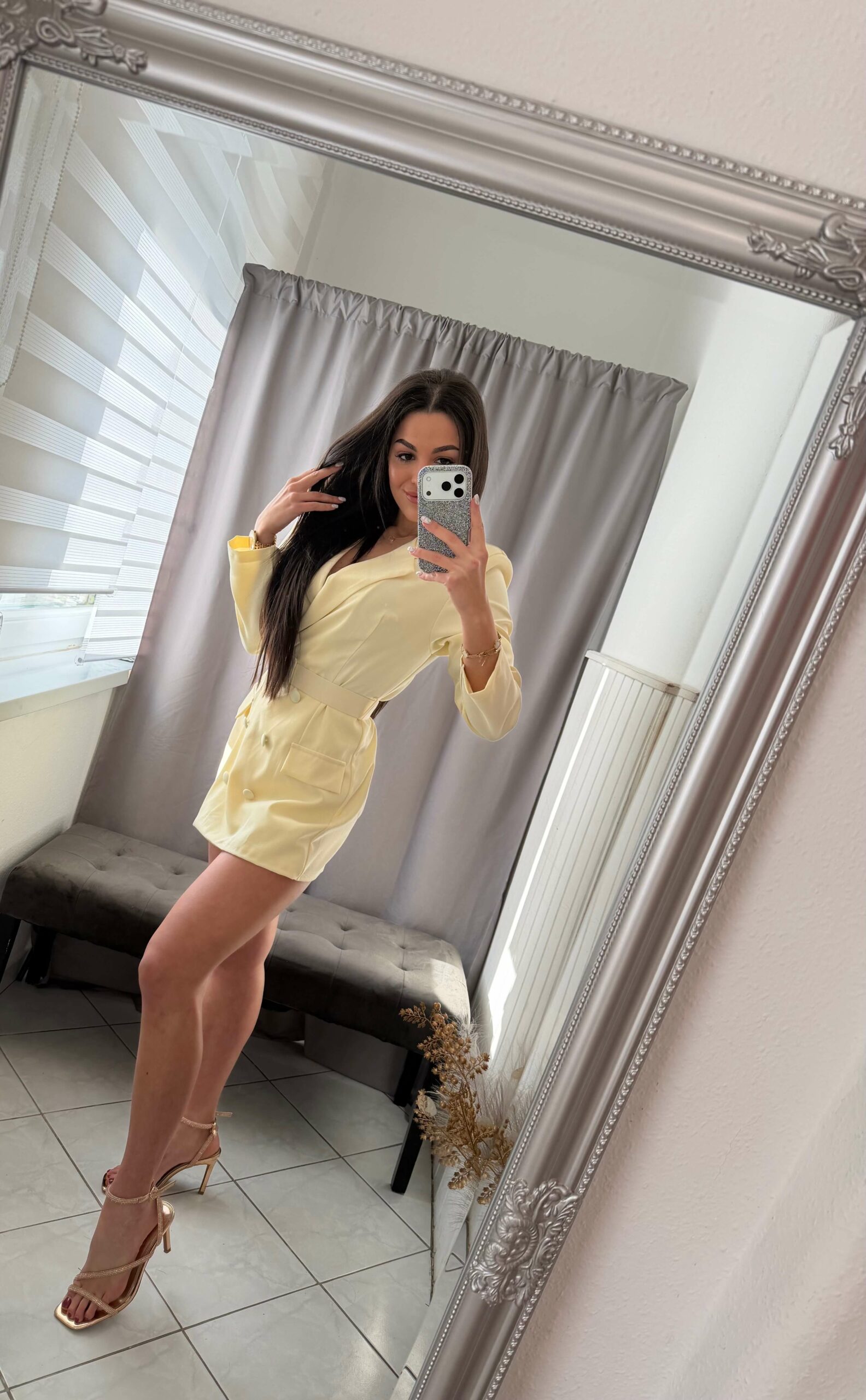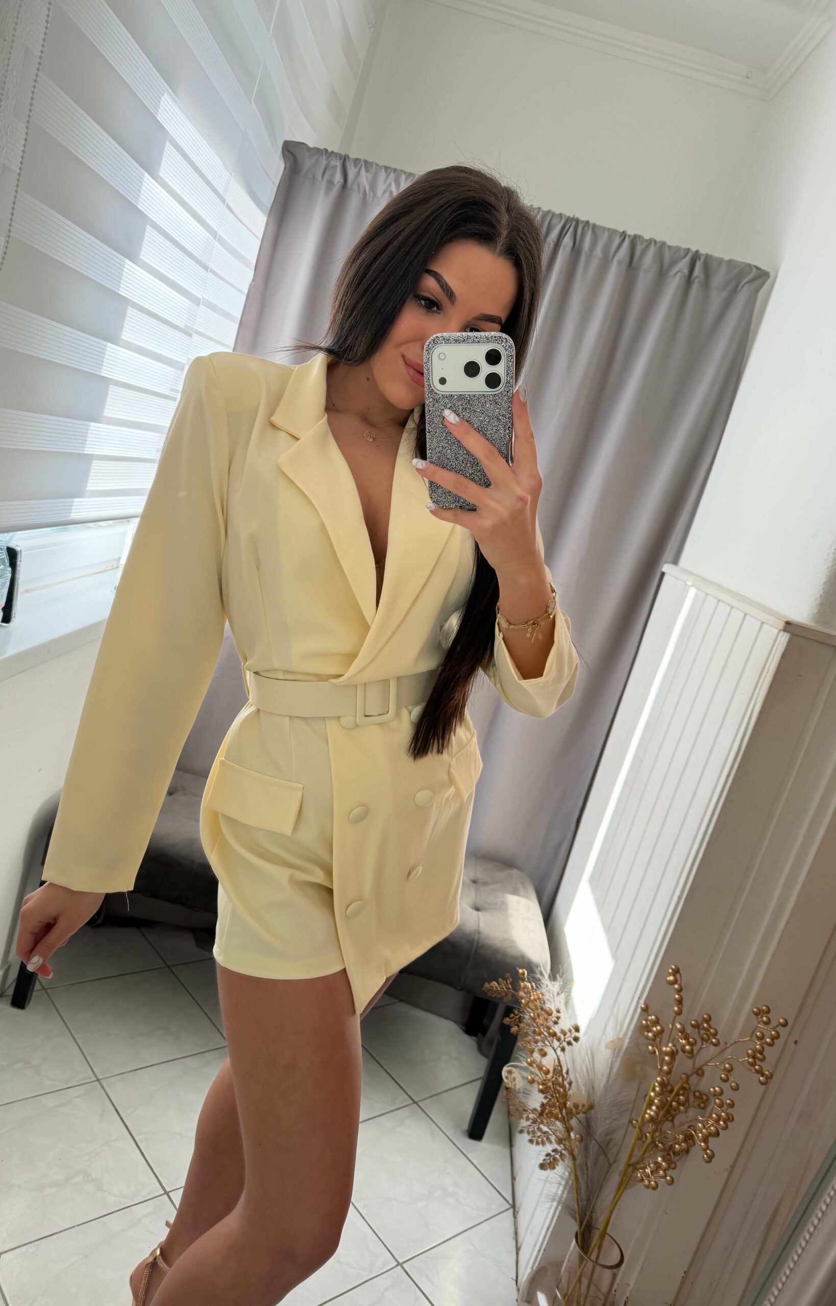 Lena öves szoknya nadrágos sárga overál.