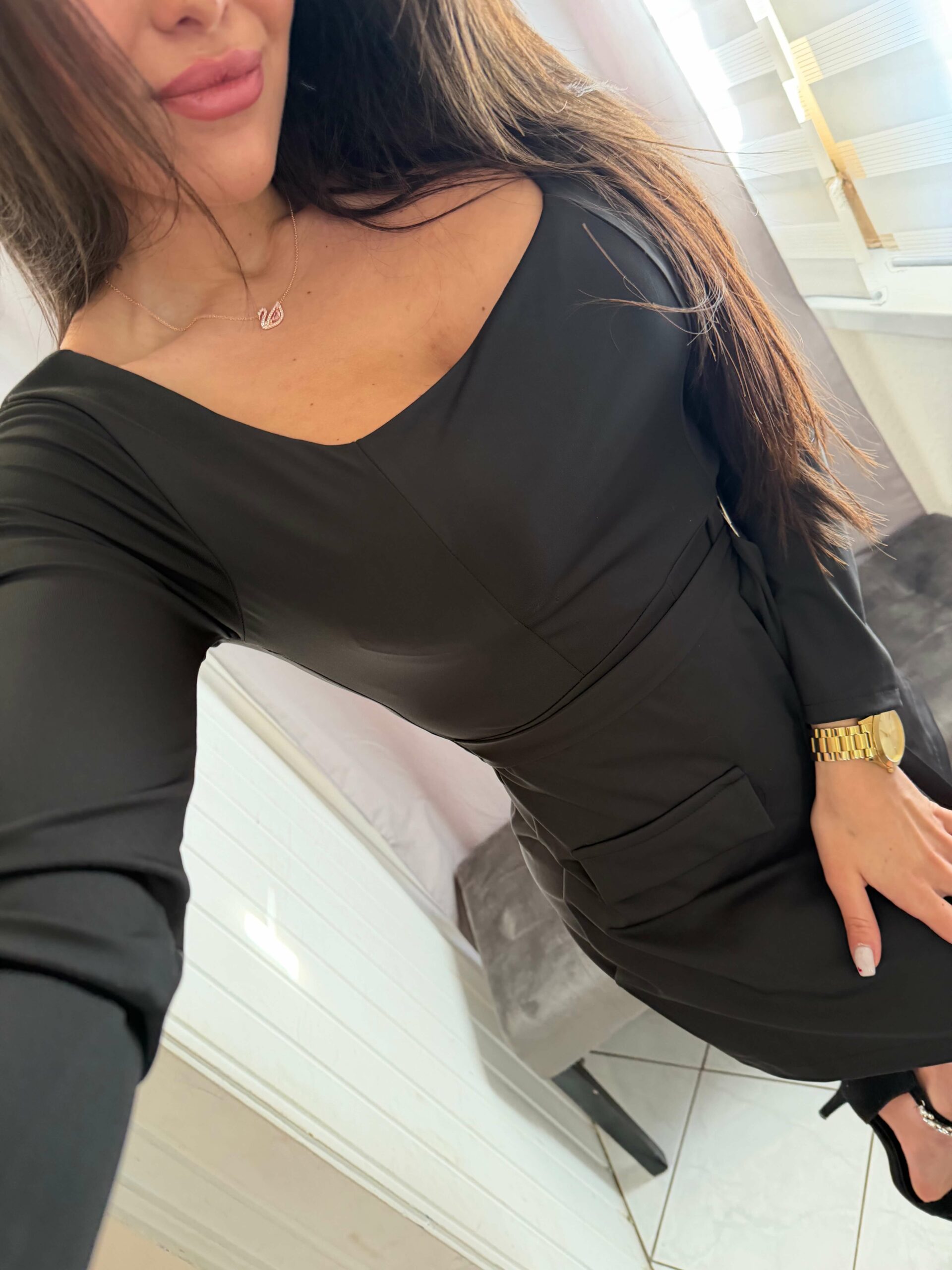 Olen fekete rövid nadrágos overál.