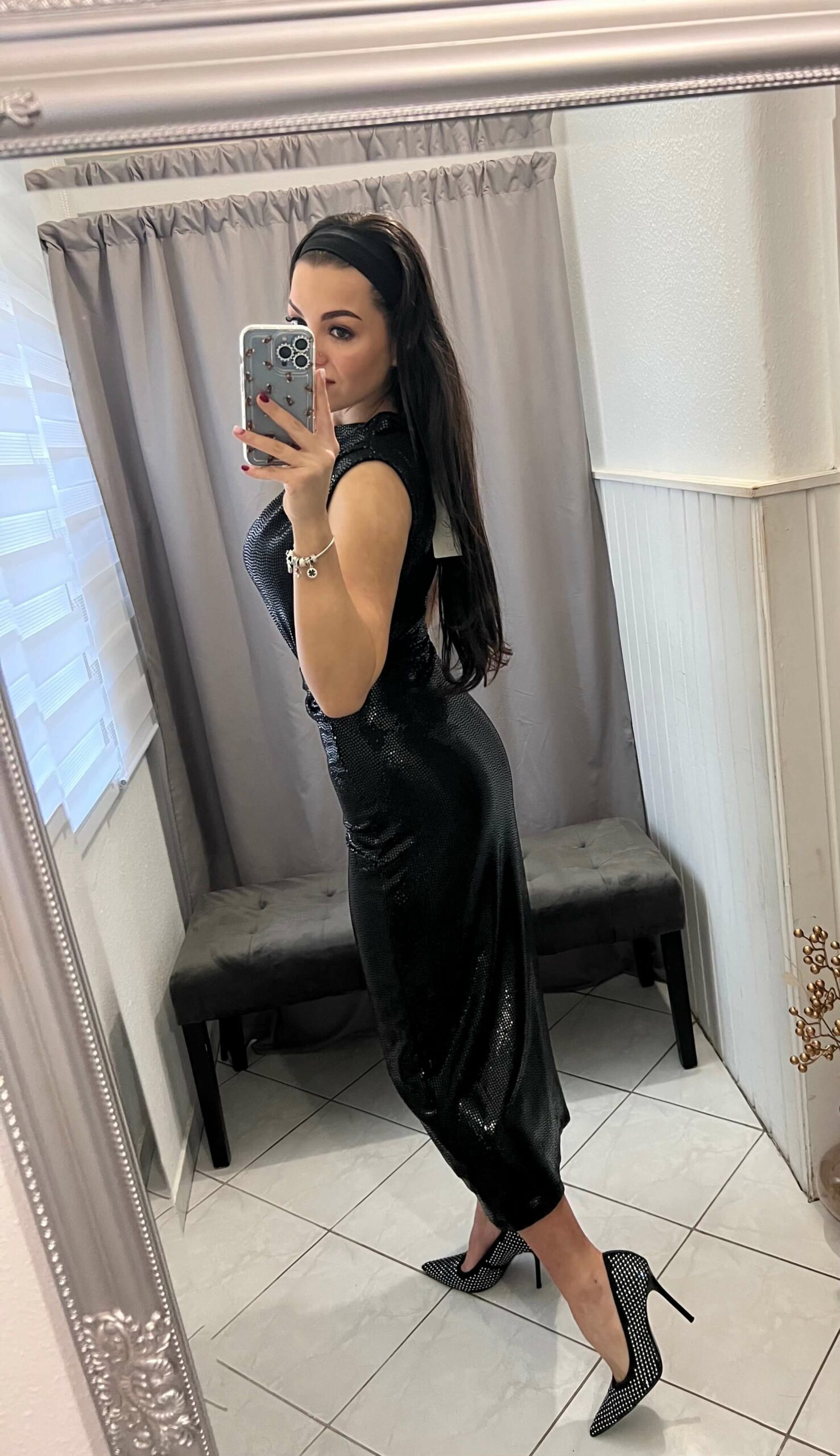 Velli flitteres maxi fekete ruha.