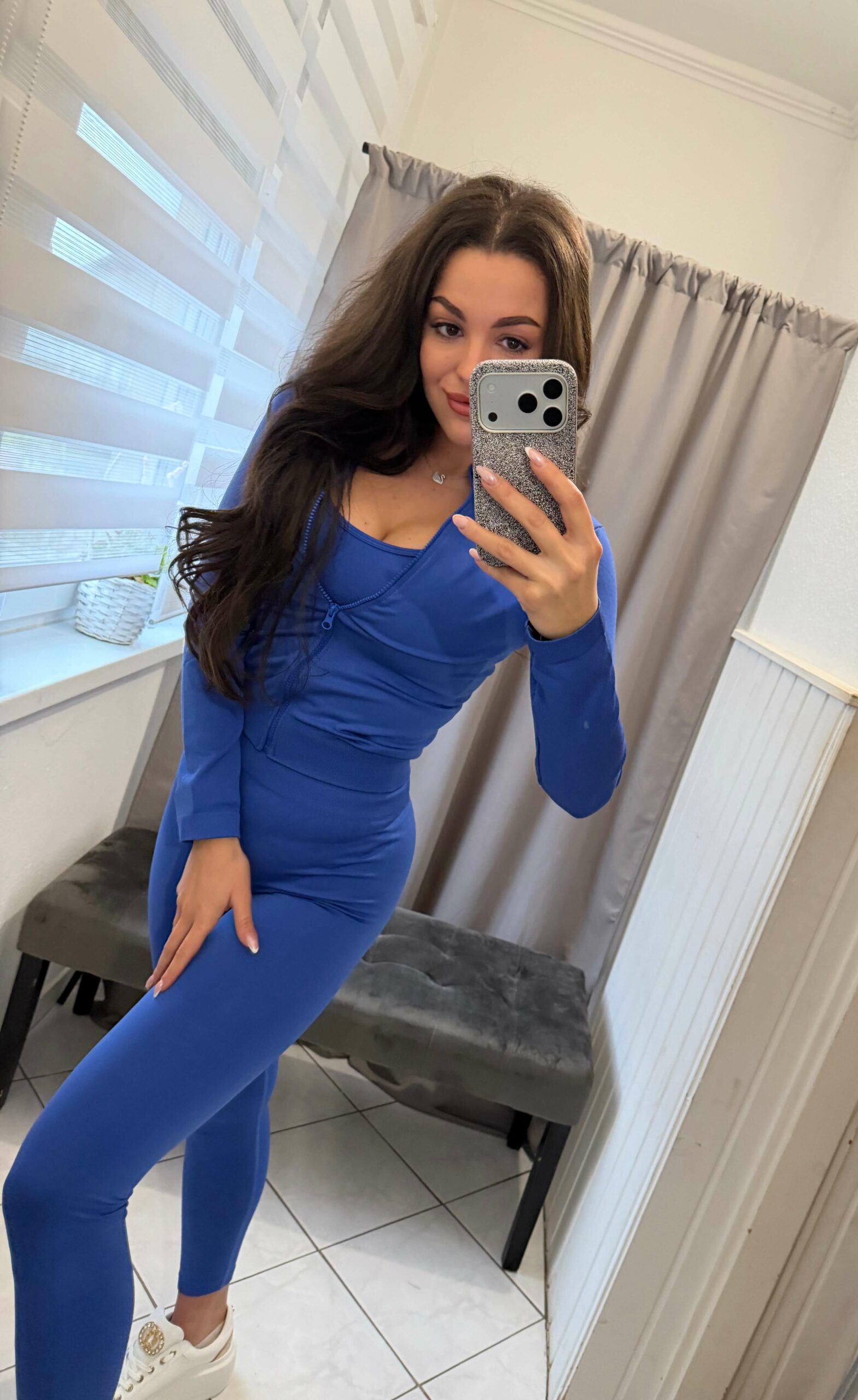 Trikó, cipzáras hosszú újjú felső illetve egy magas gumis derekú nadrág szett.