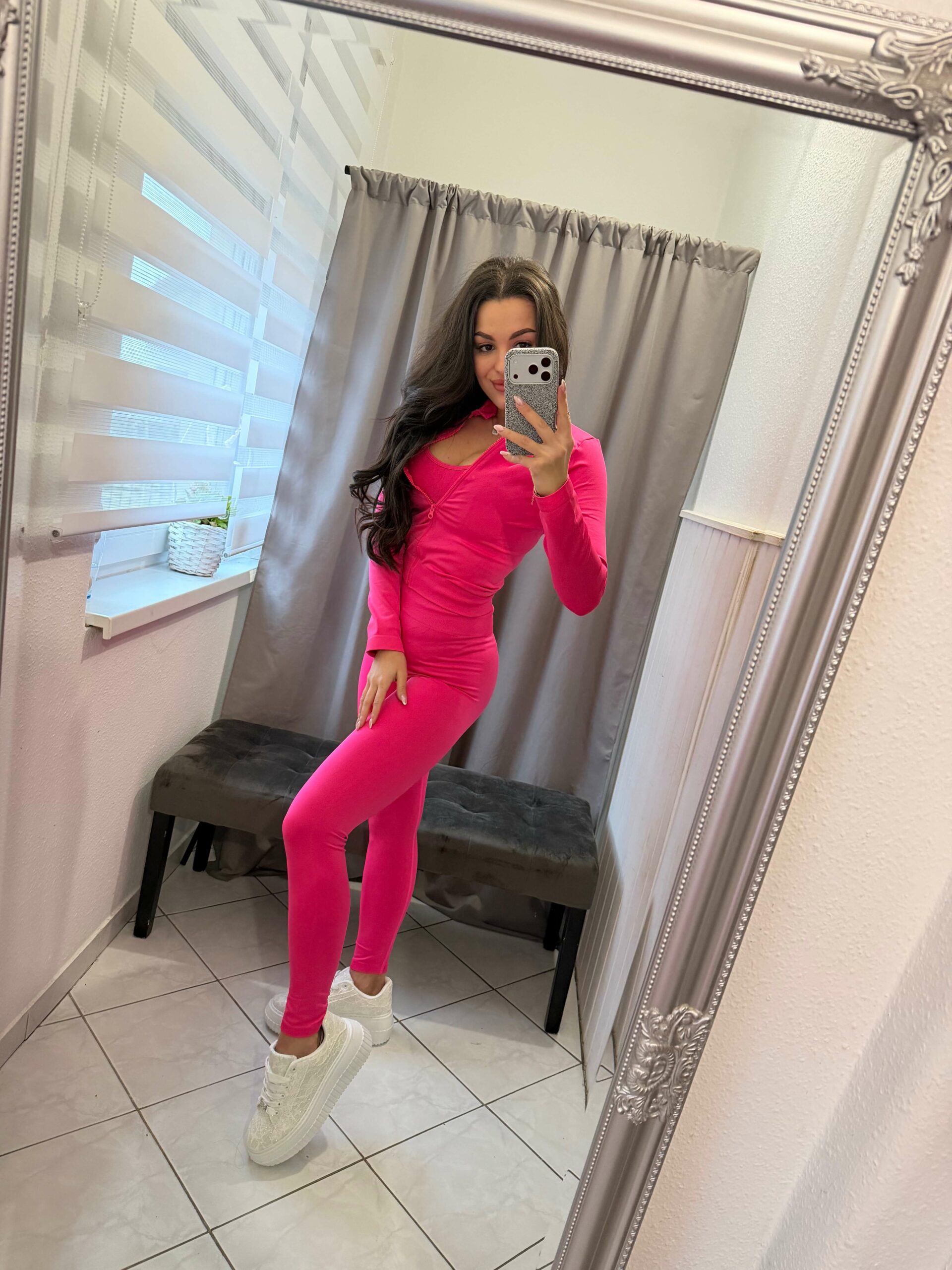 Trikó, cipzáras hosszú újjú felső illetve egy magas gumis derekú nadrág szett.