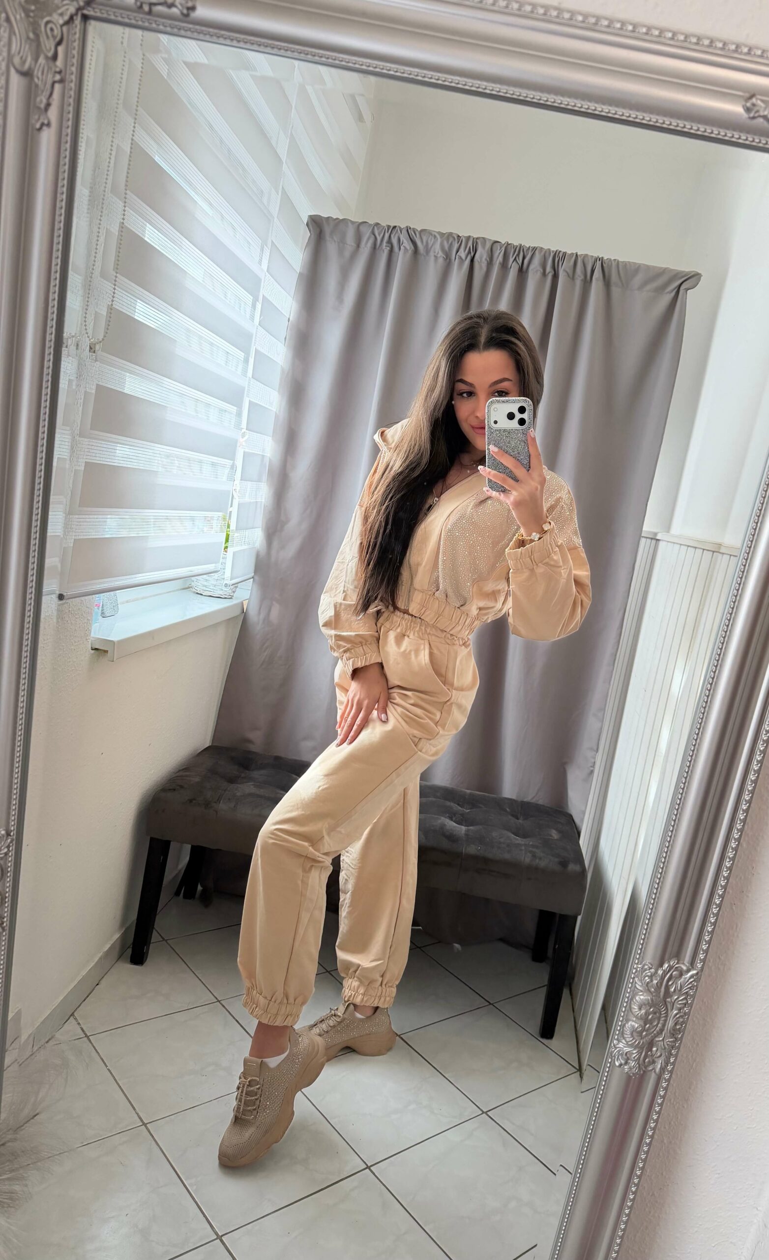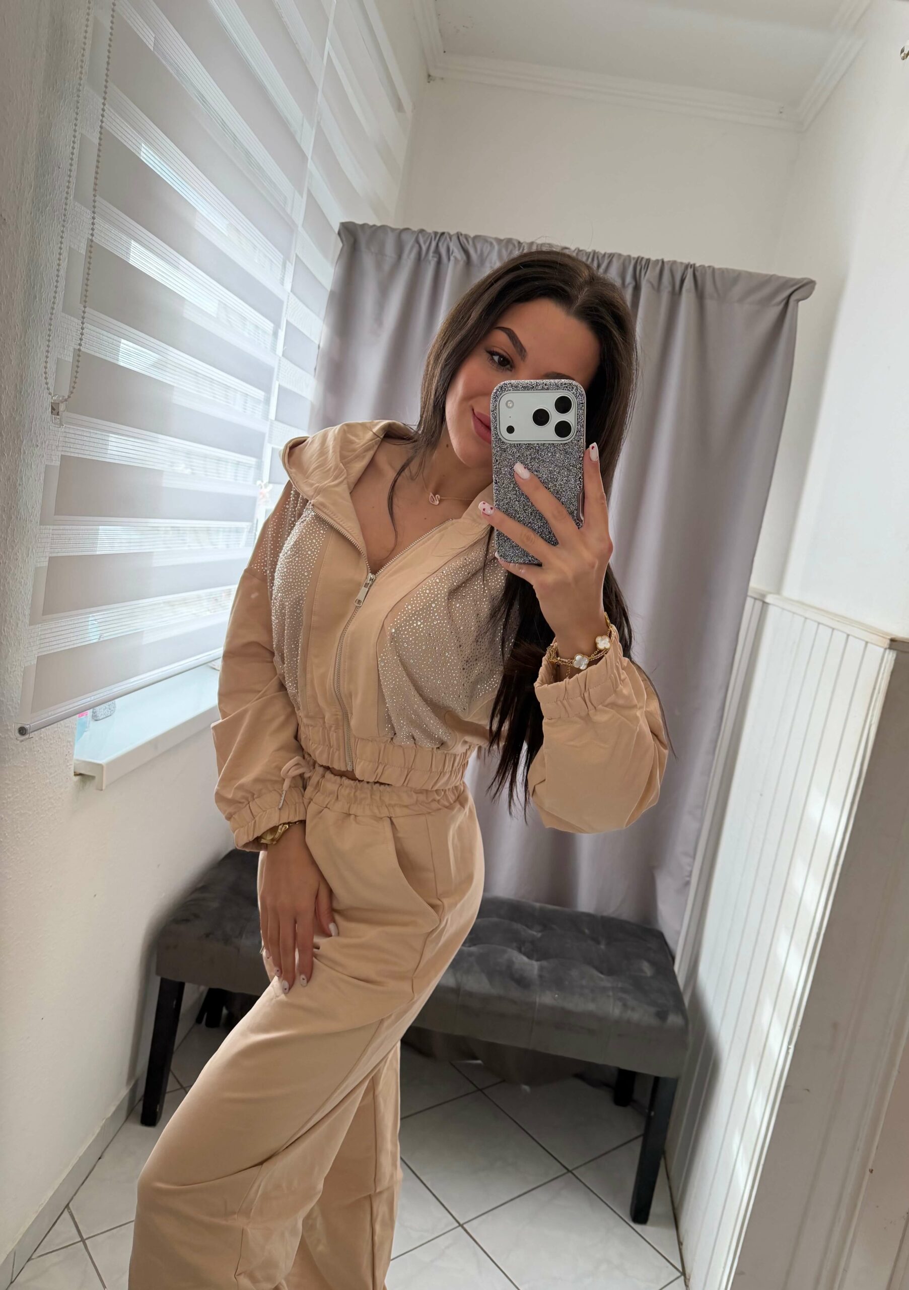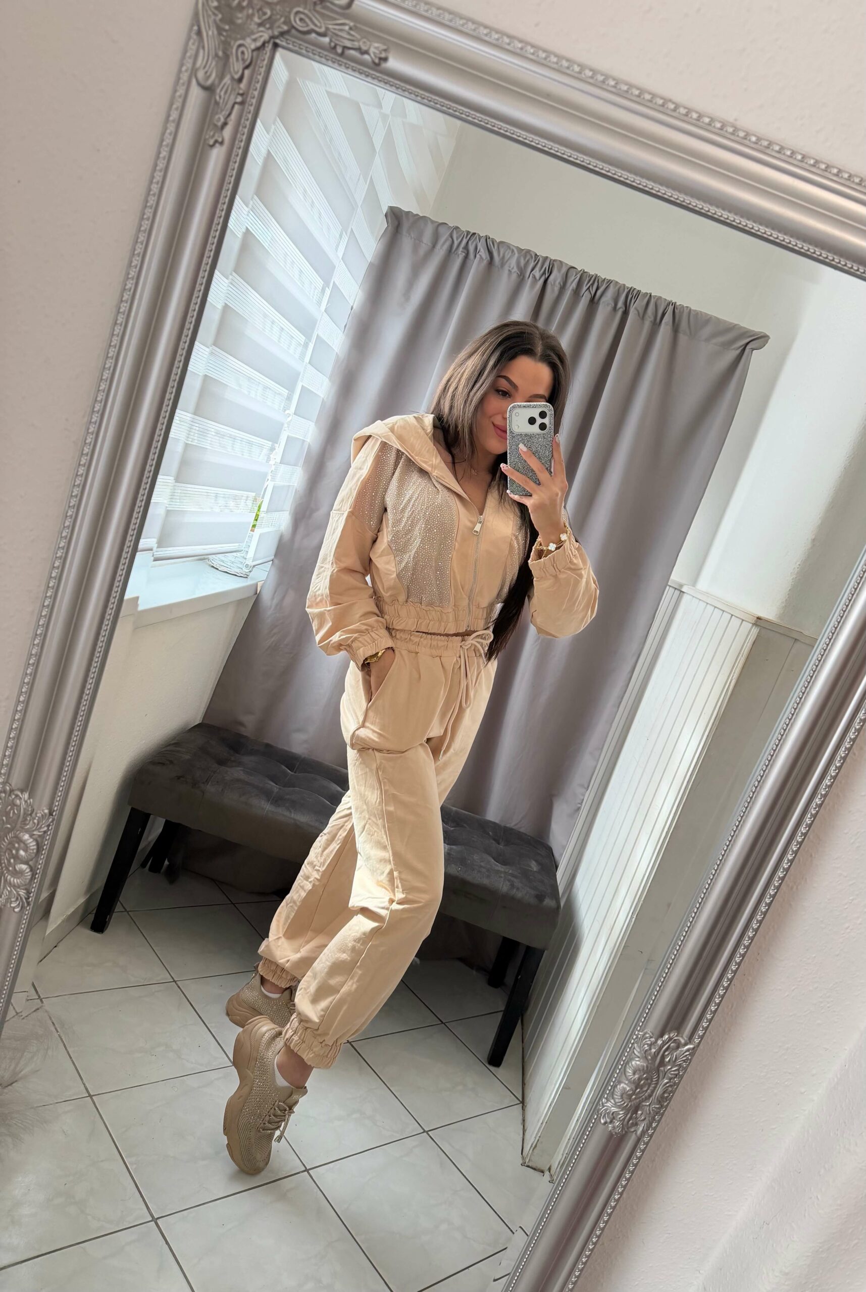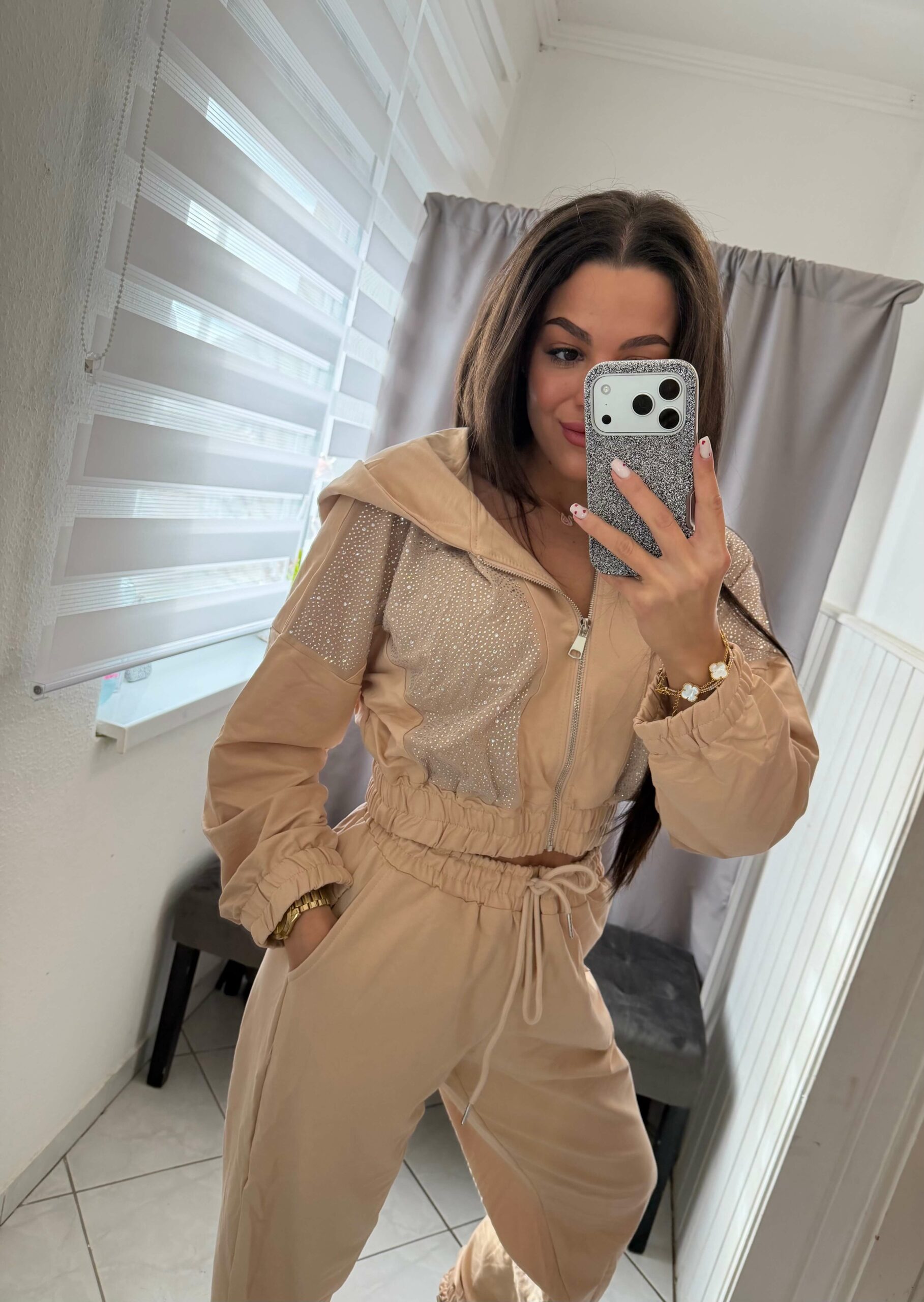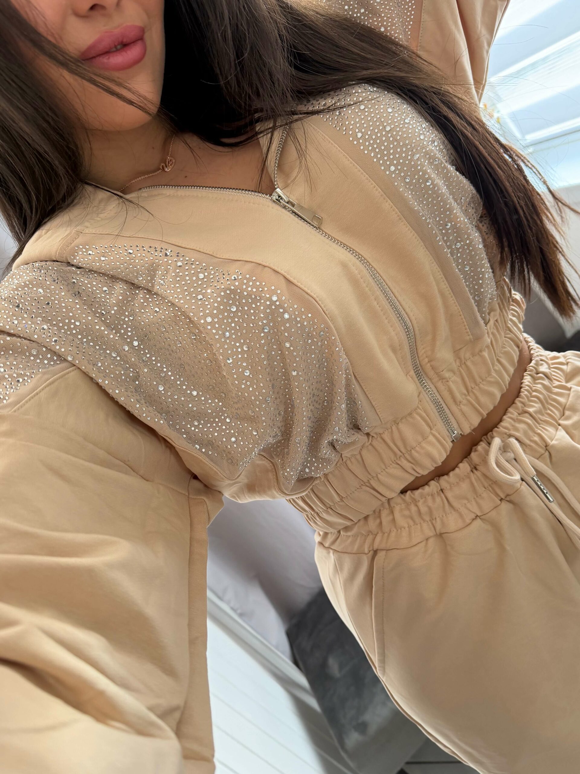 Jezi köves kétrészes bézs szett.