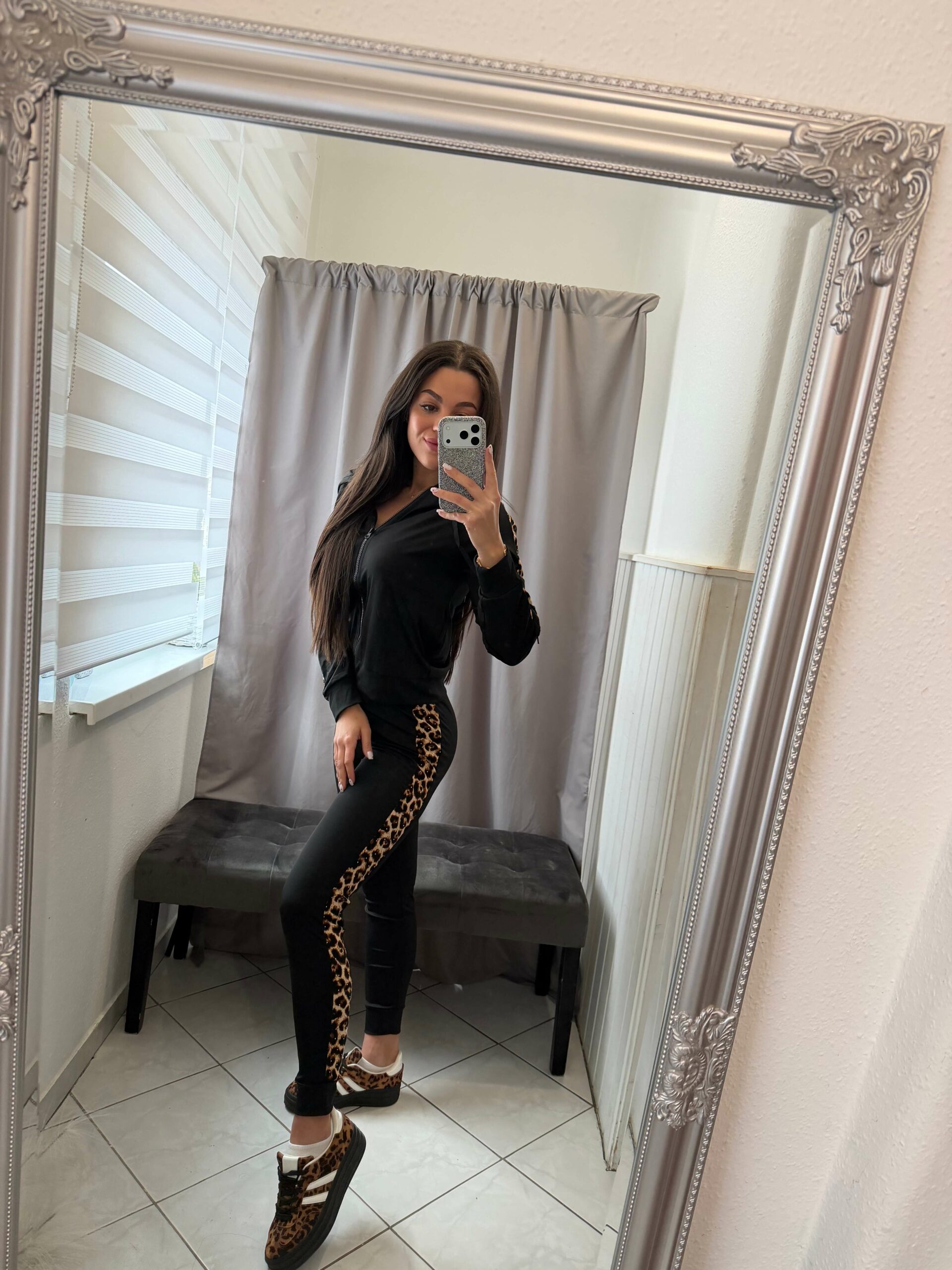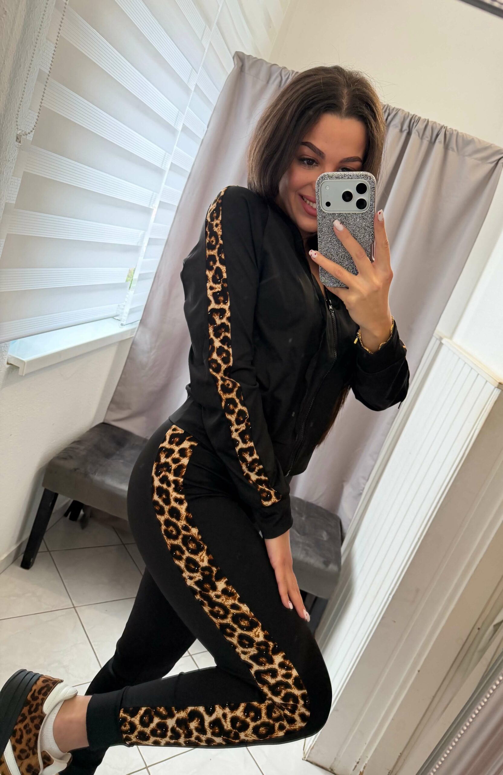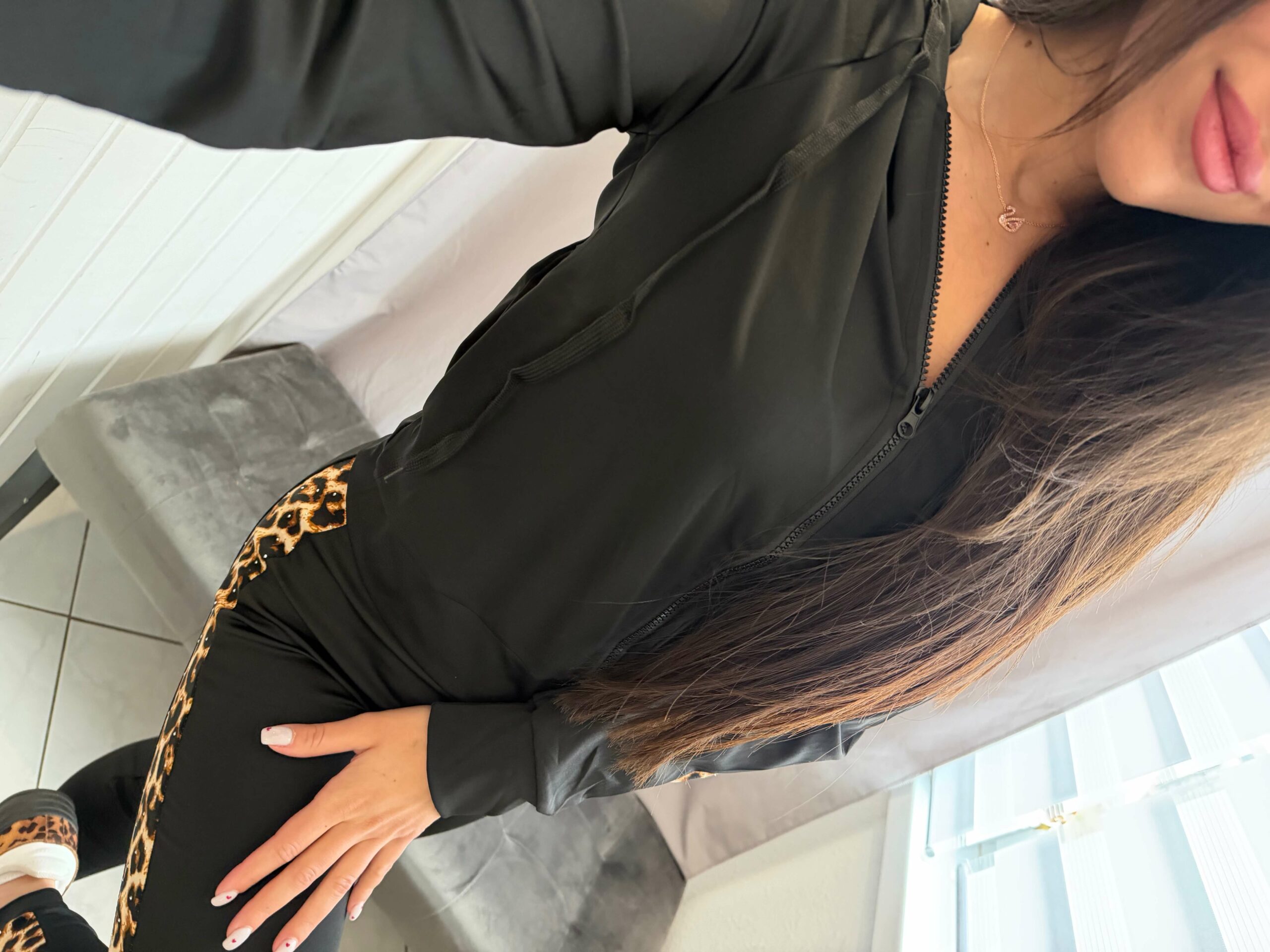 Nelli kétrészes fehér ocelot mintás fekete szett