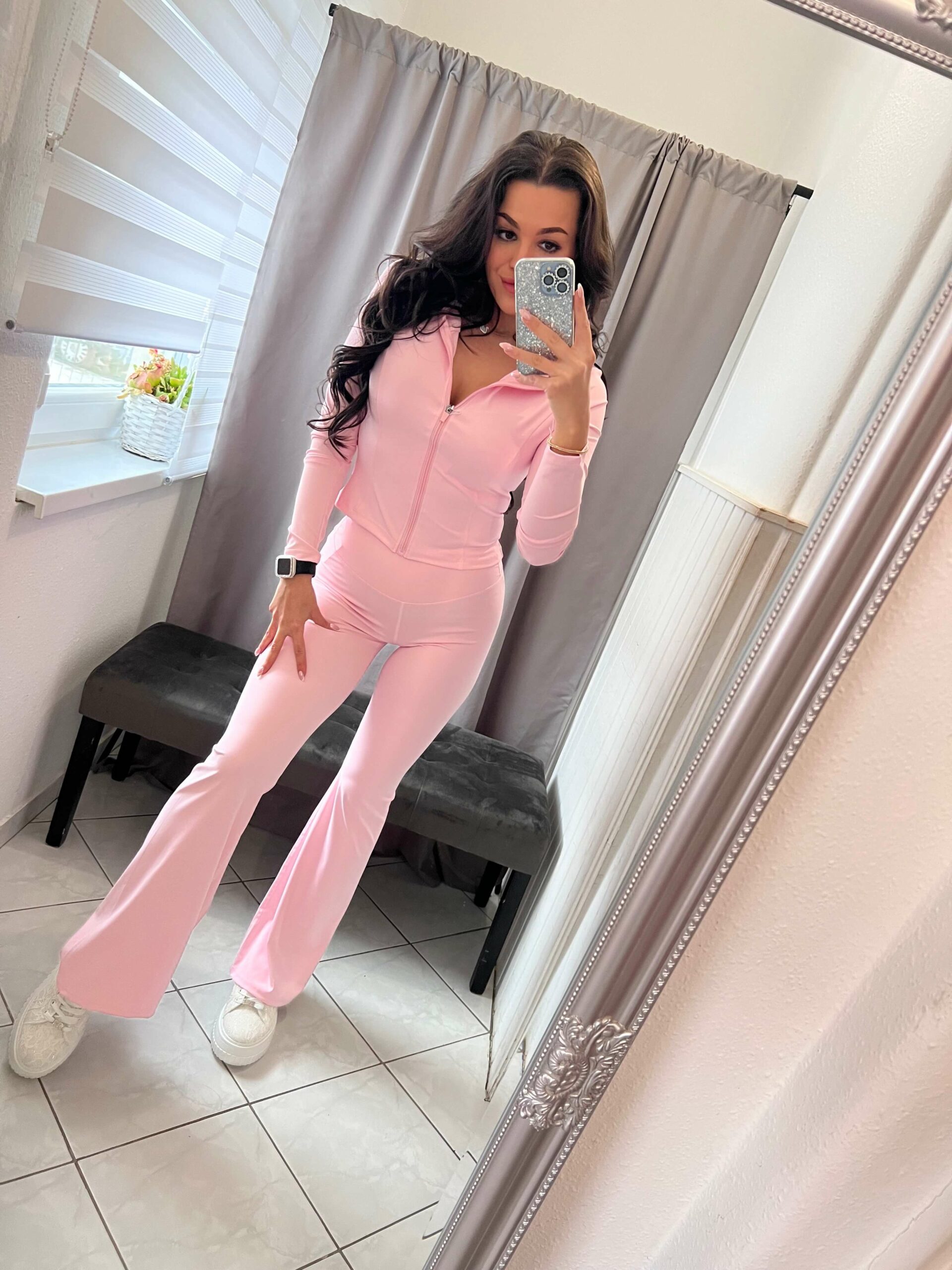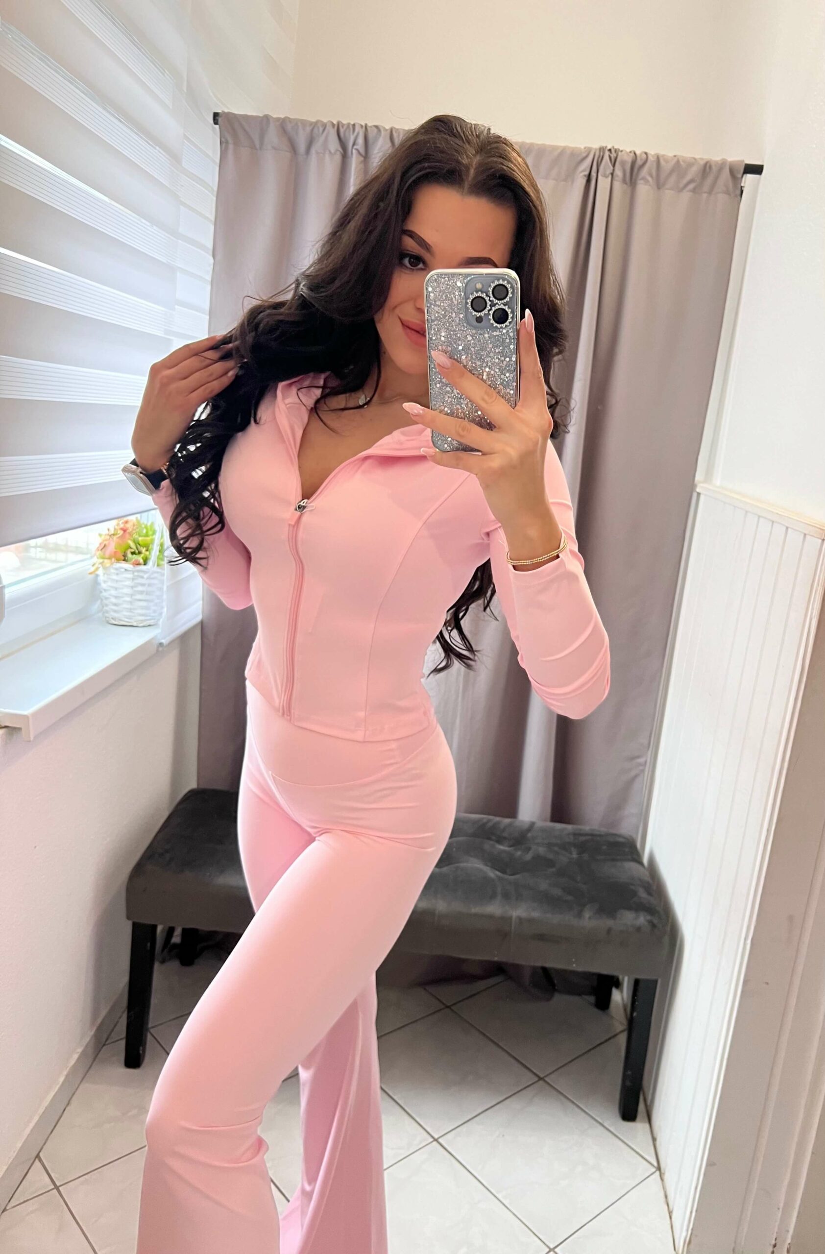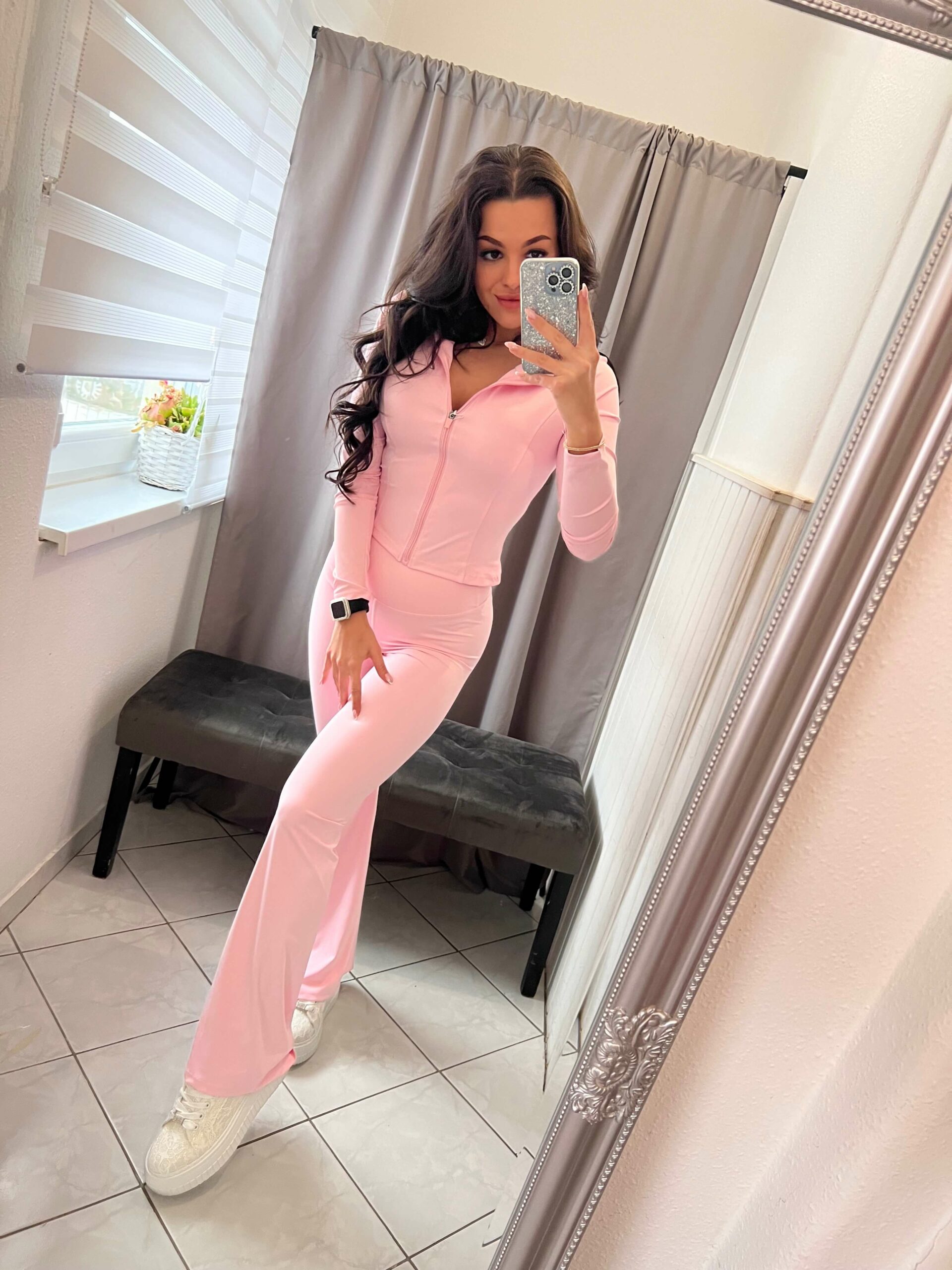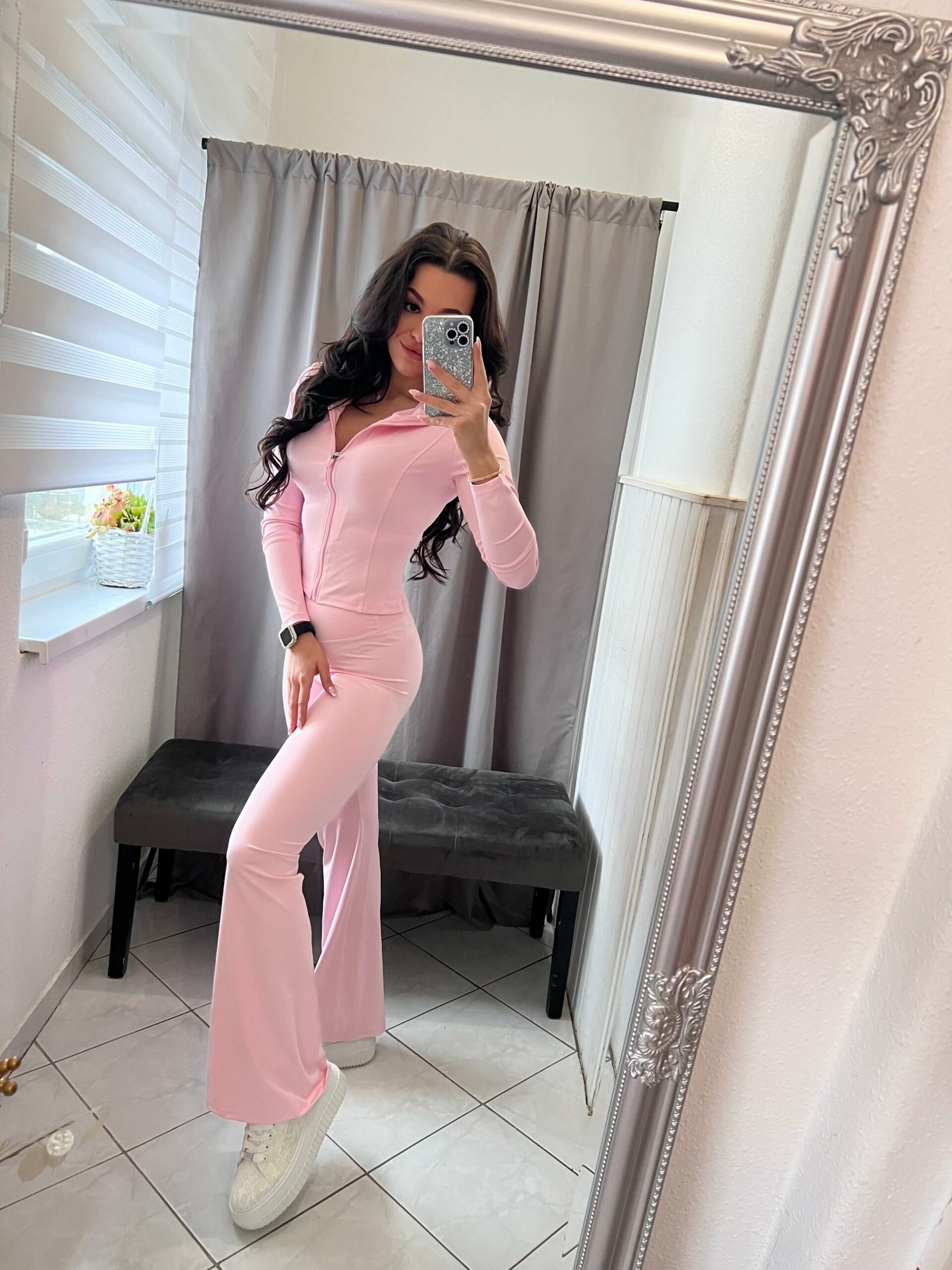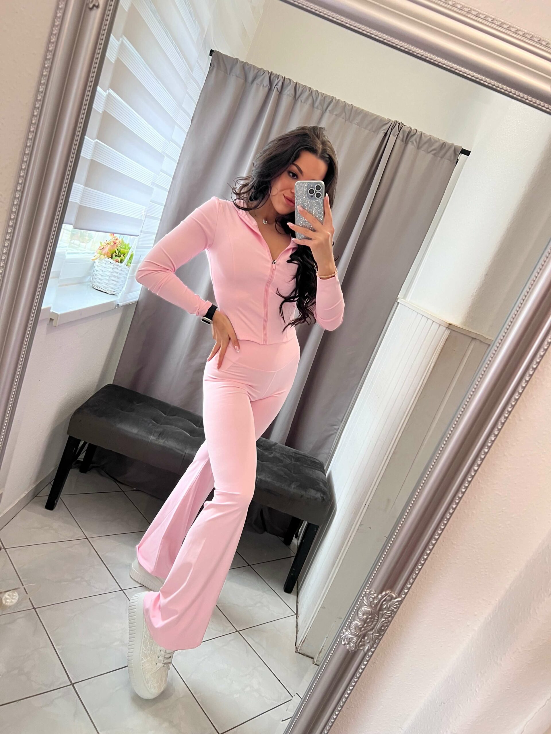 Szolen kétrészes bő szárú világos rózsaszin szett.