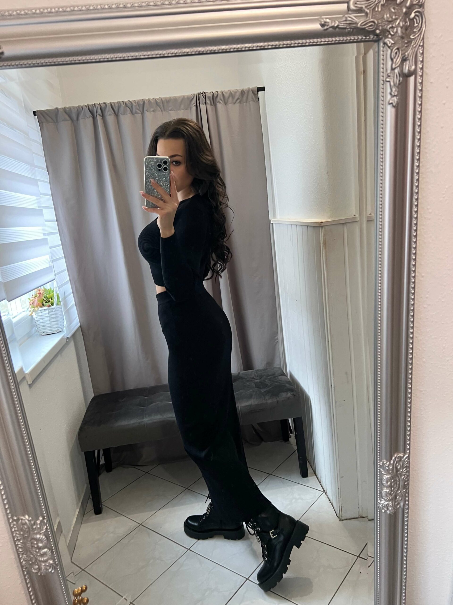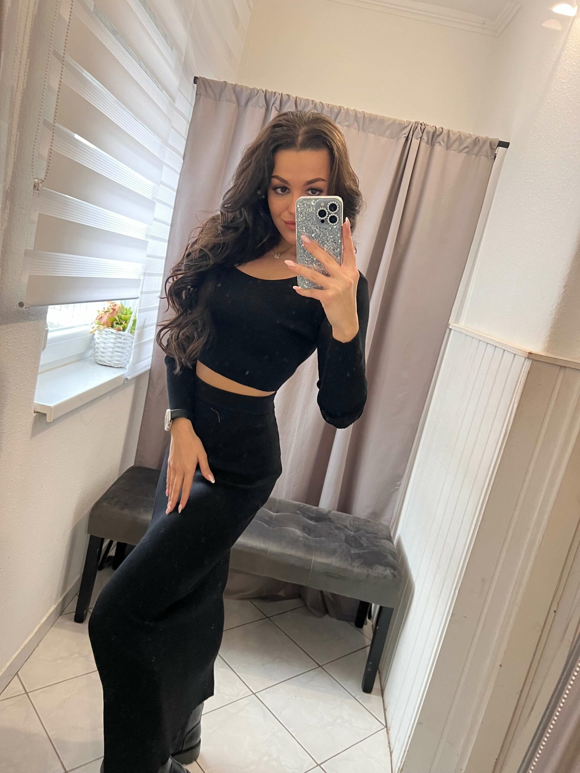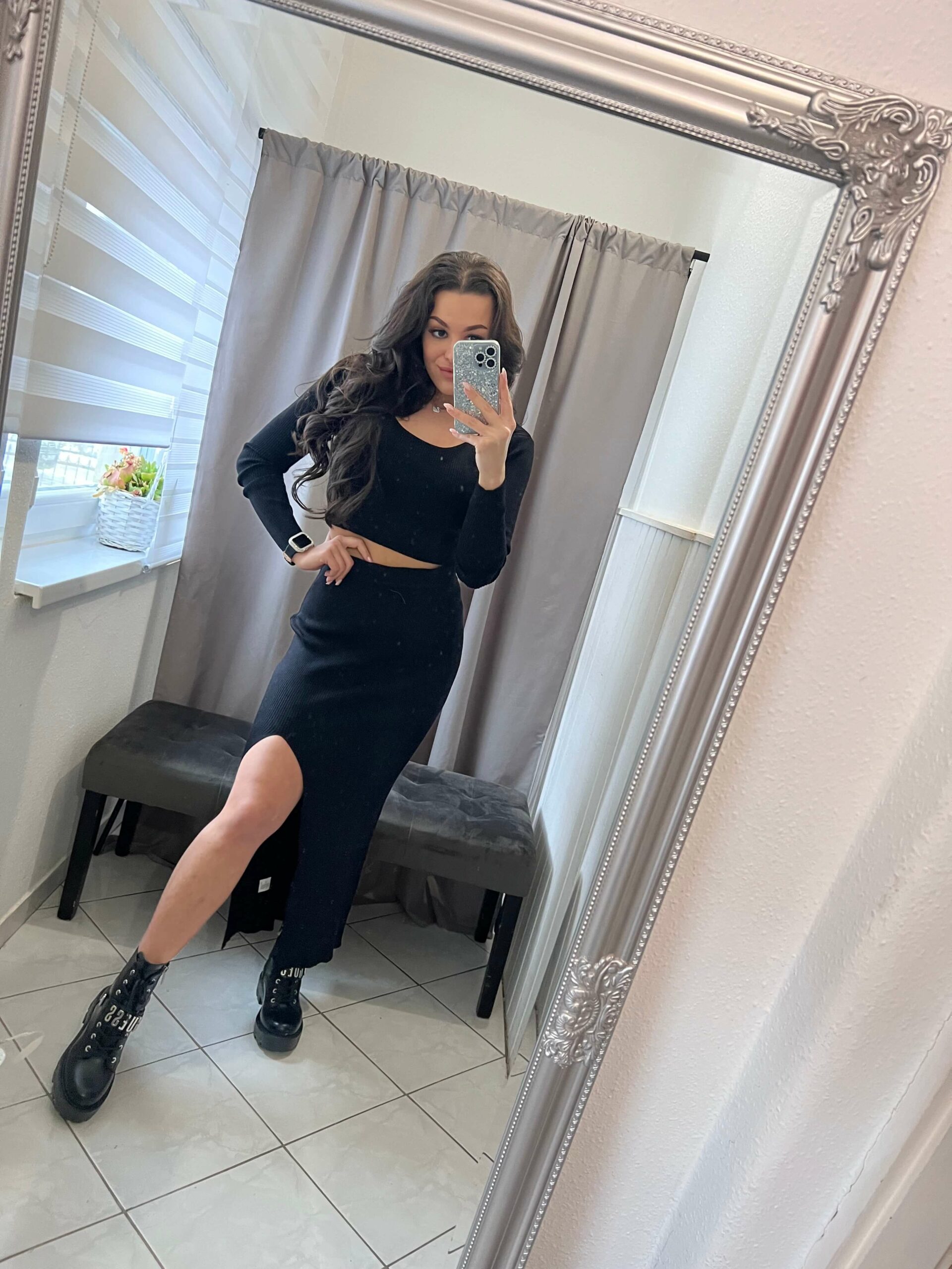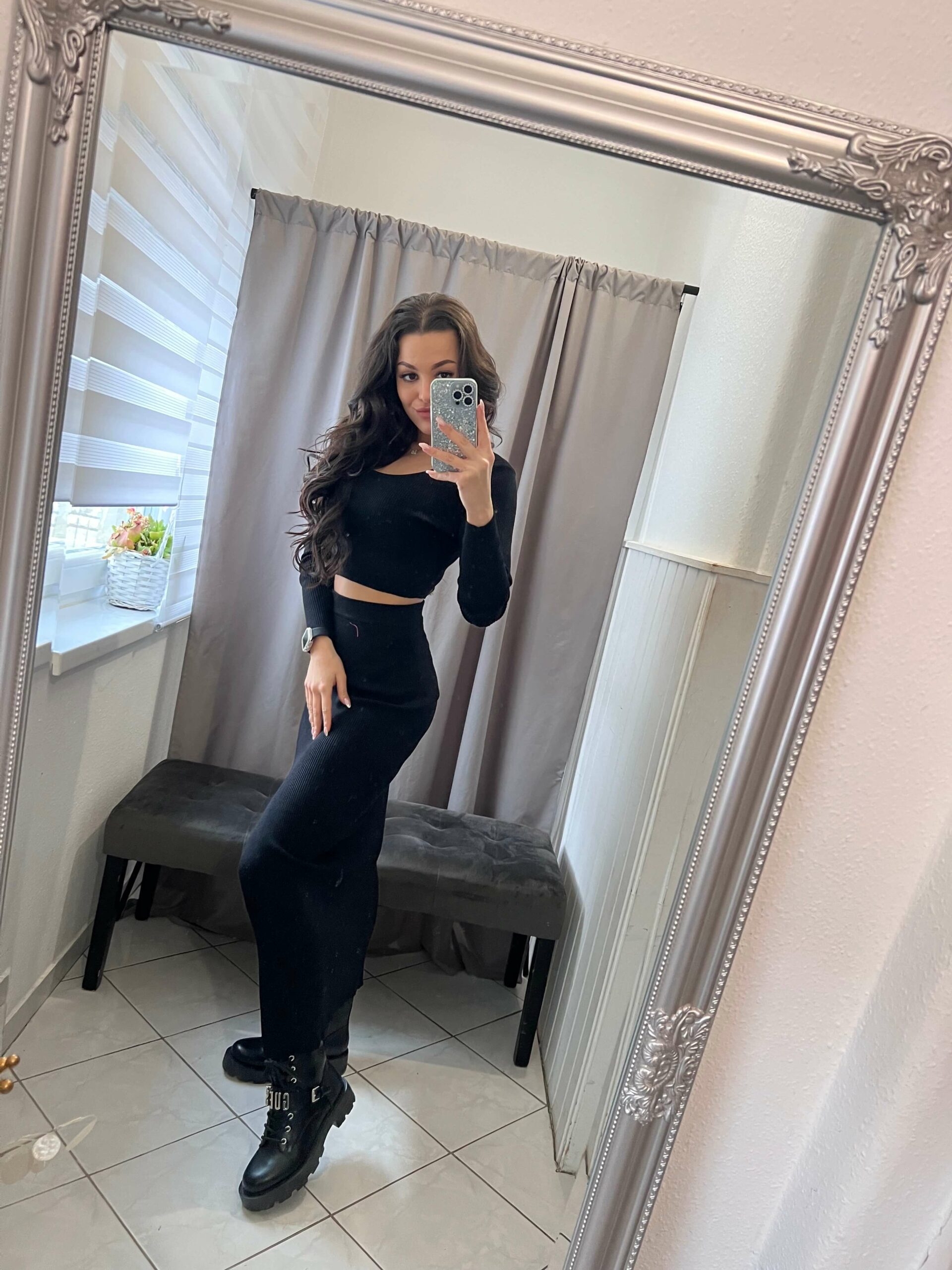 Flam fekete kétrészes szoknya szett.